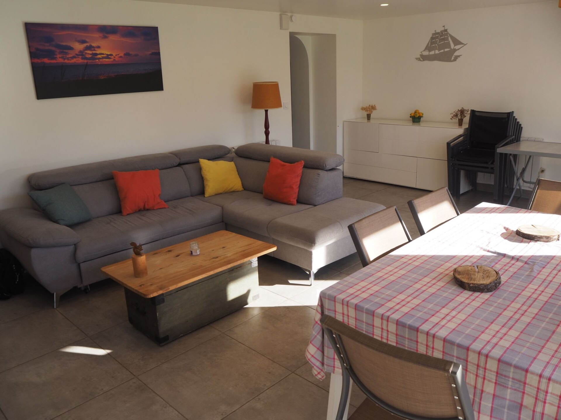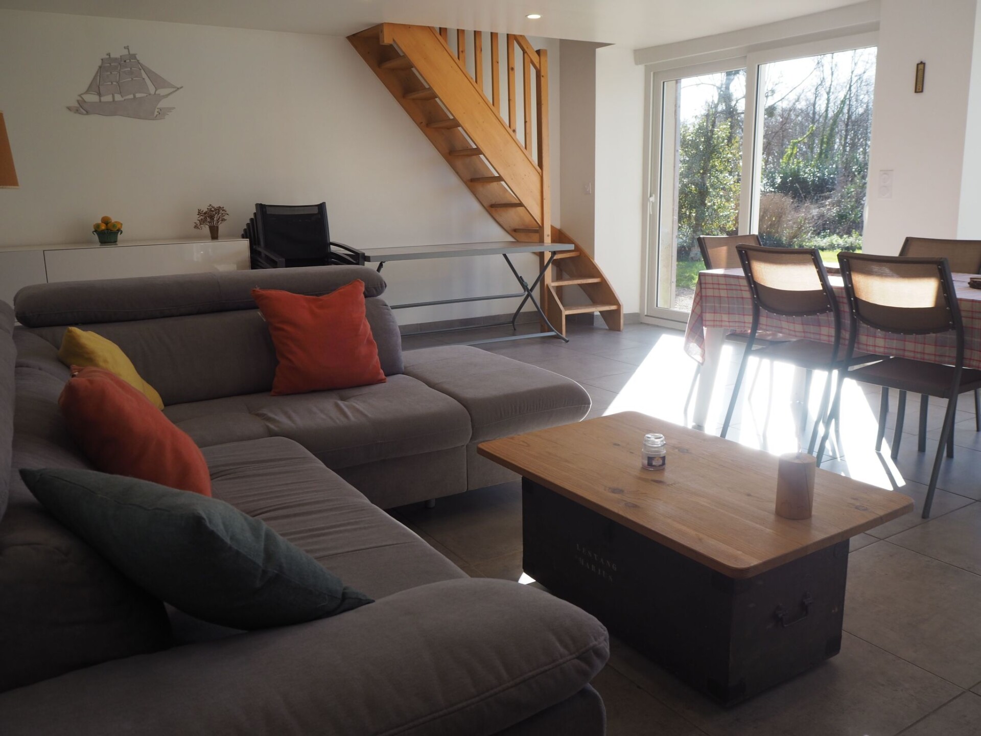 Maximaal 2 huisdieren/honden toegestaan. This bright, detached gîte also has a south-facing terrace where you can sunbathe or enjoy an aperitif outside on the first sunny days.Independent parking for several cars and charging points nearby (see photo).Ideally located in the countryside, 6 minutes from the centre of Portbail-sur-Mer and 8 minutes from Barneville-Carteret, with its beaches and water sports activities (swimming, walking, sailing, sand yachting) as well as horse riding, golf, hiking and links to the Channel Islands.This holiday home includes: a fully-equipped kitchen, a living room with wood-burning stove, a bathroom with walk-in shower, three bedrooms, a large garden, parking and all baby equipment.A modern, well-equipped kitchen, a spacious, well-appointed bathroom with walk-in shower, a large, bright and friendly living room with bench seating and a wood-burning stove. Bright bedrooms that can be oculated, a south-facing garden, away from prying eyes, so you can enjoy your holiday or weekend in peace and quiet.You'll be on your own in a pleasant wooded setting, part of which has been deliberately kept semi-wild to make room for biodiversity. This is a delight for crickets, butterflies, dragonflies and other birds, but it doesn't detract from its charm - quite the contrary.You can also pick up some excellent exotic takeaway dishes at rhaja, 150 metres away.Located at the southern gateway to Contentin. Jobourg, Goury, port racine, cité de la mer, gatteville lighthouse, Cherbourg, Saint-Vaast-la-Houge are no more than 35 km away. To the east, Mont Saint Michel is 1 hour 30 minutes away.This part of the coast enjoys a sunny climate, making it one of the driest regions in France, and the gîte, located on the coastal strip, benefits from plenty of sunshine. The environment changes with the seasons, with walnut, apple, maple, lime and Chinese palm trees announcing the colours, all in a semi-wild setting. Further down is a hectare of woodland in a former quarry. Occasionally a squirrel peeks out, especially at nut time, or a roe deer in search of a few apples.A lawn area with a forest table for an aperitif, a coffee break, a picnic-style meal or more, as well as garden furniture to set up on the south-facing terrace, where in February it is sometimes possible to enjoy a meal in the sun, all in a relaxing setting.To ensure you have a real holiday, we have decided not to install wifi. This will make your family get-togethers even more enjoyable.The interior is convivial, sober and modern, designed for 5 to 6 people maximum, the kitchen is inviting for breakfast or around the chef of the day if one of you feels the culinary fibre, everything is there and in its place, even if you live outside in the summer, an evening by the fire in autumn or winter has its charm. An Italian shower in the spacious, well-appointed bathroom will be appreciated both in the morning and when you return from a swim or a hike. You will need to go upstairs to access : A bedroom with a 140x190 bed overlooking the garden, a chest of drawers and a low storage unit, a large bedroom with three 90x190 beds and a chest of drawers, and a large dressing room en suite, a small bedroom with a 90x190 bed, all very bright and which can be blacked out for those who like to sleep in the dark, you will also find a cot available.Our tenants keep coming back year after year, and for us that's the best proof of satisfaction.See you soon. 911748267