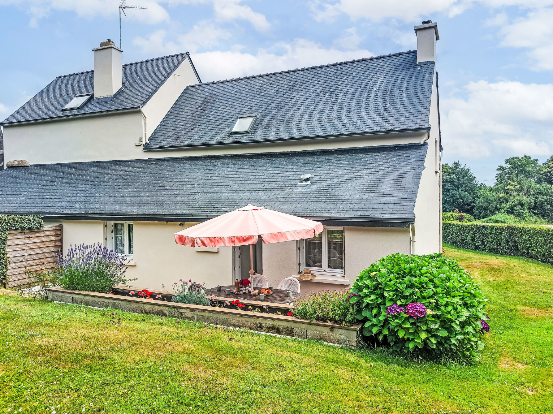 Eengezinswoning "Le Brieux". 5 km van het centrum van Quimper, 18 km van zee, 18 km van het strand. Voor alleengebruik: terrein 200 m2, tuin met gazon en planten, parkeerplaats (voor 2 auto's) op het terrein. Levensmiddelenwinkel 3 km, supermarkt 4 km, restaurant 3 km, bushalte 3 km, treinstation "Gare de Quimper" 6 km, zandstrand "Plage de Kervel" 18 km. Golfterrein (18 holes) 9 km, zeilschool 23 km. Attracties in de buurt: Quimper, ville 5 km, Locronan 13 km, Douarnenez 23 km, Pont l'Abbé 26 km, Concarneau 30 km, pointe du Raz 58 km. Wandelgebied GR 34, Cap Sizun, Presqu'Ile de Crozon. Auto noodzakelijk.