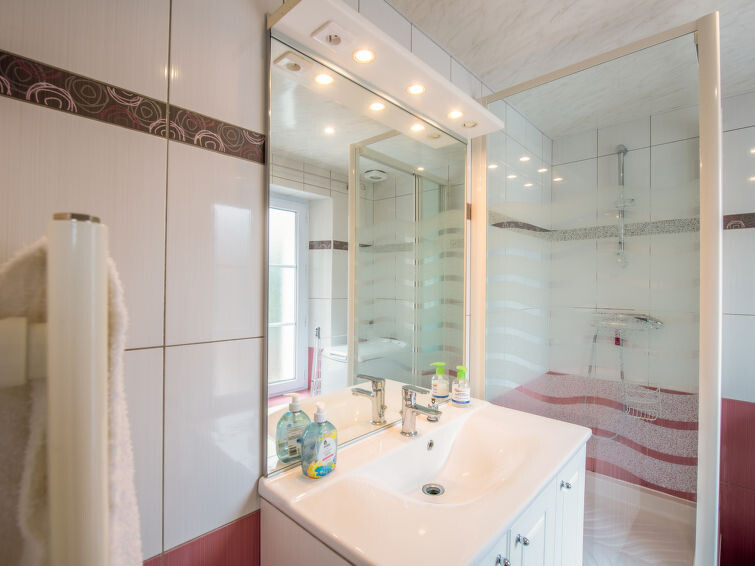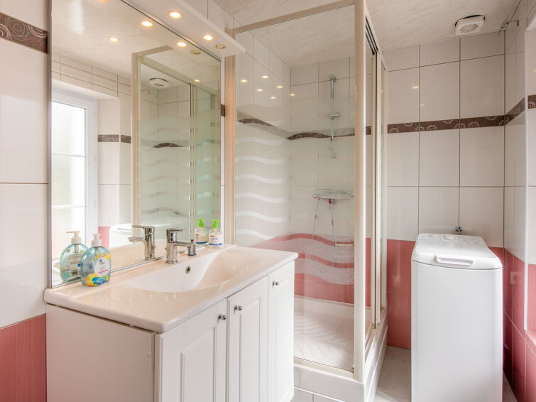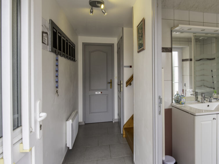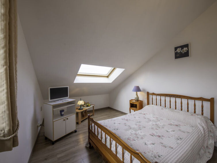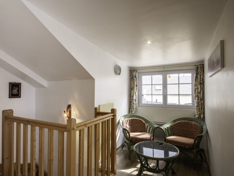 "Le Champ des Mouettes", huis 3-kamers 75 m2 op 2 verdiepingen. Gezellig ingericht: woonkeuken (oven, afwasmachine, 4 inductiekookplaten, broodrooster, waterkoker, magnetron, diepvriezer, elektrische koffiemachine) met eettafel en Sat-TV. Douche, aparte WC. Bovenverdieping: 1 kamer met afgeschuinde daken met 1 2-pers bed. 1 kamer met afgeschuinde daken met 2 bedden. Elektrische verwarming. Parketvloeren. Terrasmeubelen. Ter beschikking: wasmachine. Rookvrij huis.