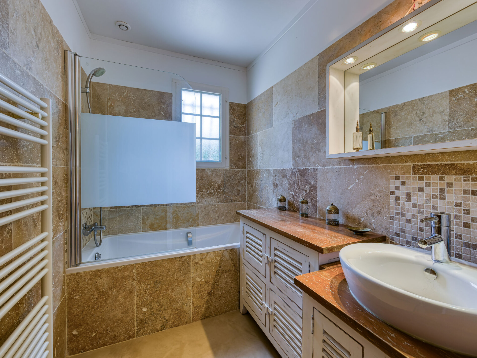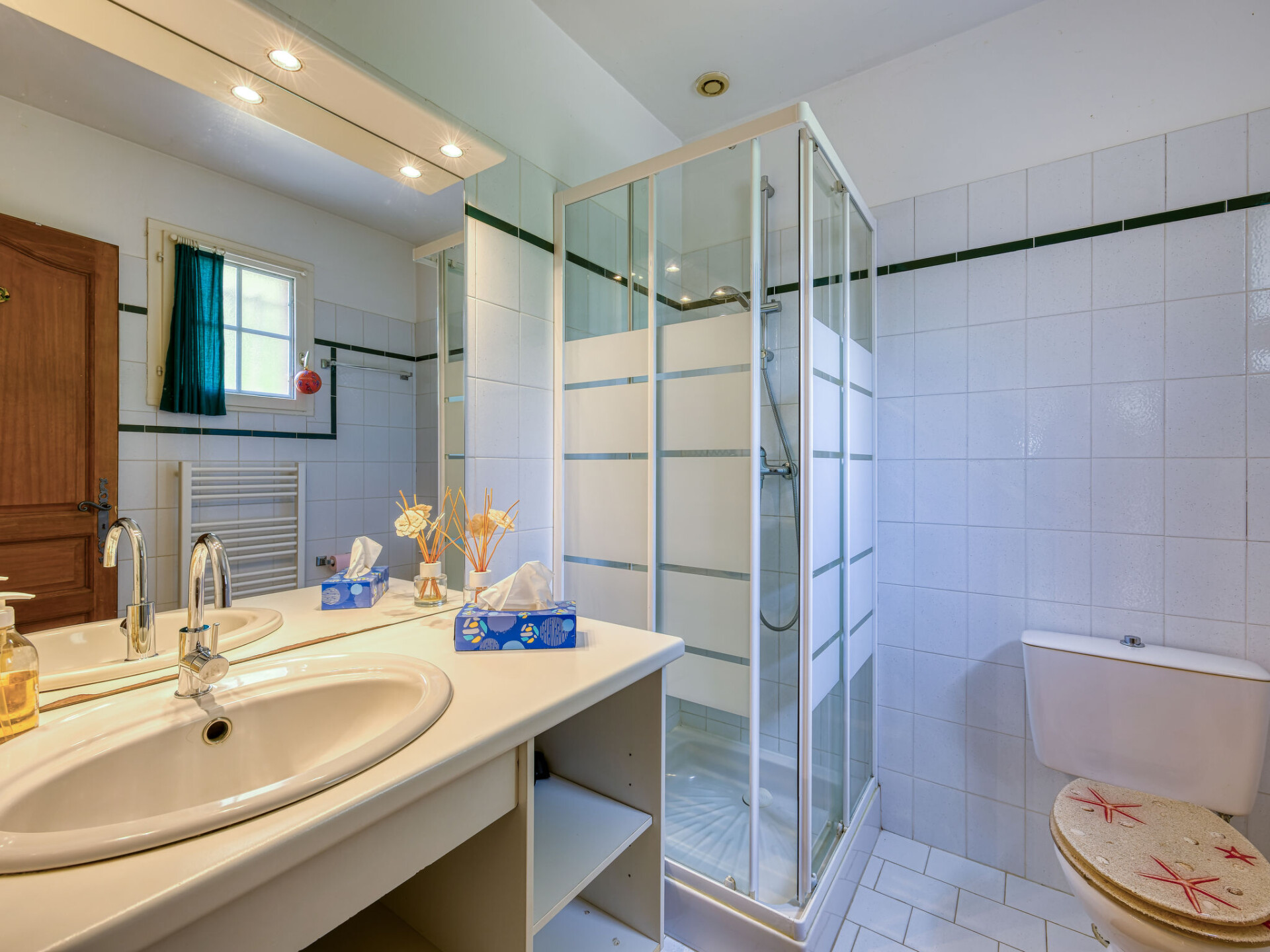 "Le Chêne", huis 4-kamers 105 m2. Comfortabel ingericht: groot woon-/eetkamer met eettafel, TV, DVD en air-conditioning. Uitgang naar het terras. 1 kamer met 1 2-pers bed (160 cm), bad en air-conditioning. 1 kamer met 1 bed. 1 kamer met 1 2-pers bed. Open keuken (oven, afwasmachine, 3 keramische glas kookplaten, broodrooster, waterkoker, magnetron, diepvriezer, elektrische koffiemachine). Douche/WC. Elektrische verwarming. 2 terrassen. Terrasmeubelen, barbecue (verrijdbaar), ligstoelen (4), bergruimte. Ter beschikking: wasmachine, strijkijzer, kinderstoel, kinderbed. Internet (Internet (WiFi), gratis). Rookvrij huis.