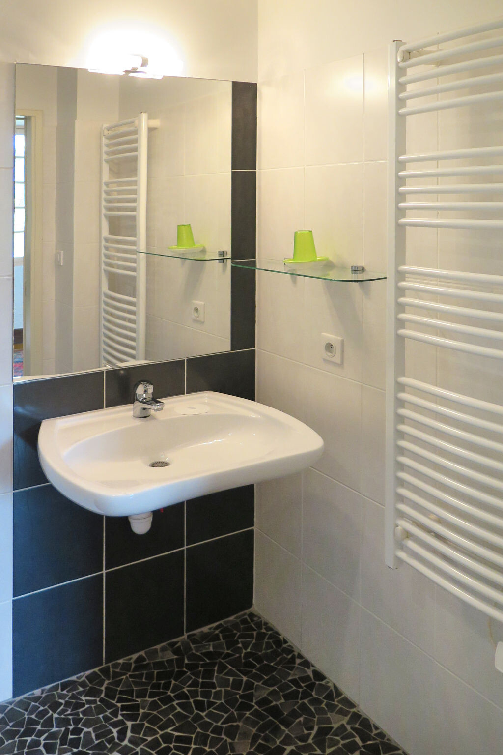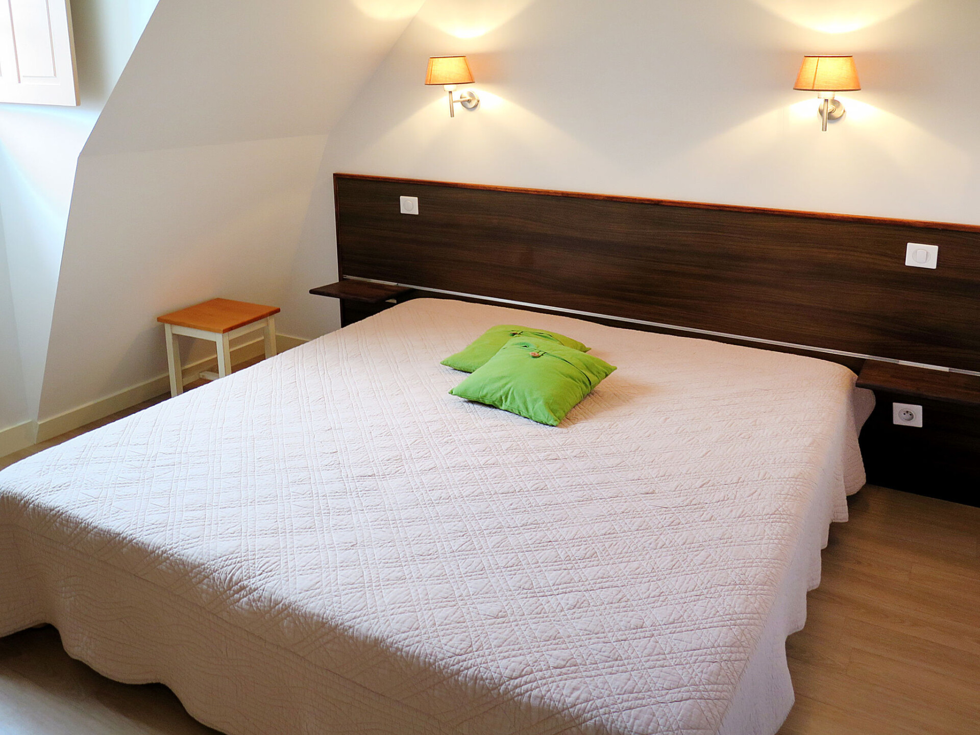 "Le Clos des Rives", appartement 4-kamers 96 m2 op 2 verdiepingen, op de begane grond. Het objekt is geschikt voor 4 volwassenen + 2 kinderen. Mooi en gezellig ingericht: woon-/slaapkamer met 1 2-pers divanbed (160 cm, lengte 200 cm), open haard (alleen decoratie), eettafel en Sat-TV (Flatscreen TV), stereo-installatie en DVD. Uitgang naar het terras. 1 kamer met 1 2-pers bed (2 x 90 cm, lengte 190 cm), douche. Open keuken (oven, afwasmachine, 4 keramische glas kookplaten, broodrooster, waterkoker, magnetron, diepvriezer, elektrische koffiemachine, pads voor de koffiemachine (Tassimo) extra). Aparte WC. Bovenverdieping: 1 kamer met 1 2-pers bed (2 x 90 cm, lengte 190 cm). 1 kamer met 2 bedden (90 cm, lengte 190 cm). Badkamer, aparte WC. Elektrische verwarming. 2 terrassen. Terrasmeubelen, bergruimte. Ter beschikking: wasmachine, kluis, strijkijzer, kinderstoel, kinderbed (extra). Internet (WiFi, gratis). Niet rokers woning. Maximaal 2 huisdieren/honden toegestaan. Rookmelders.