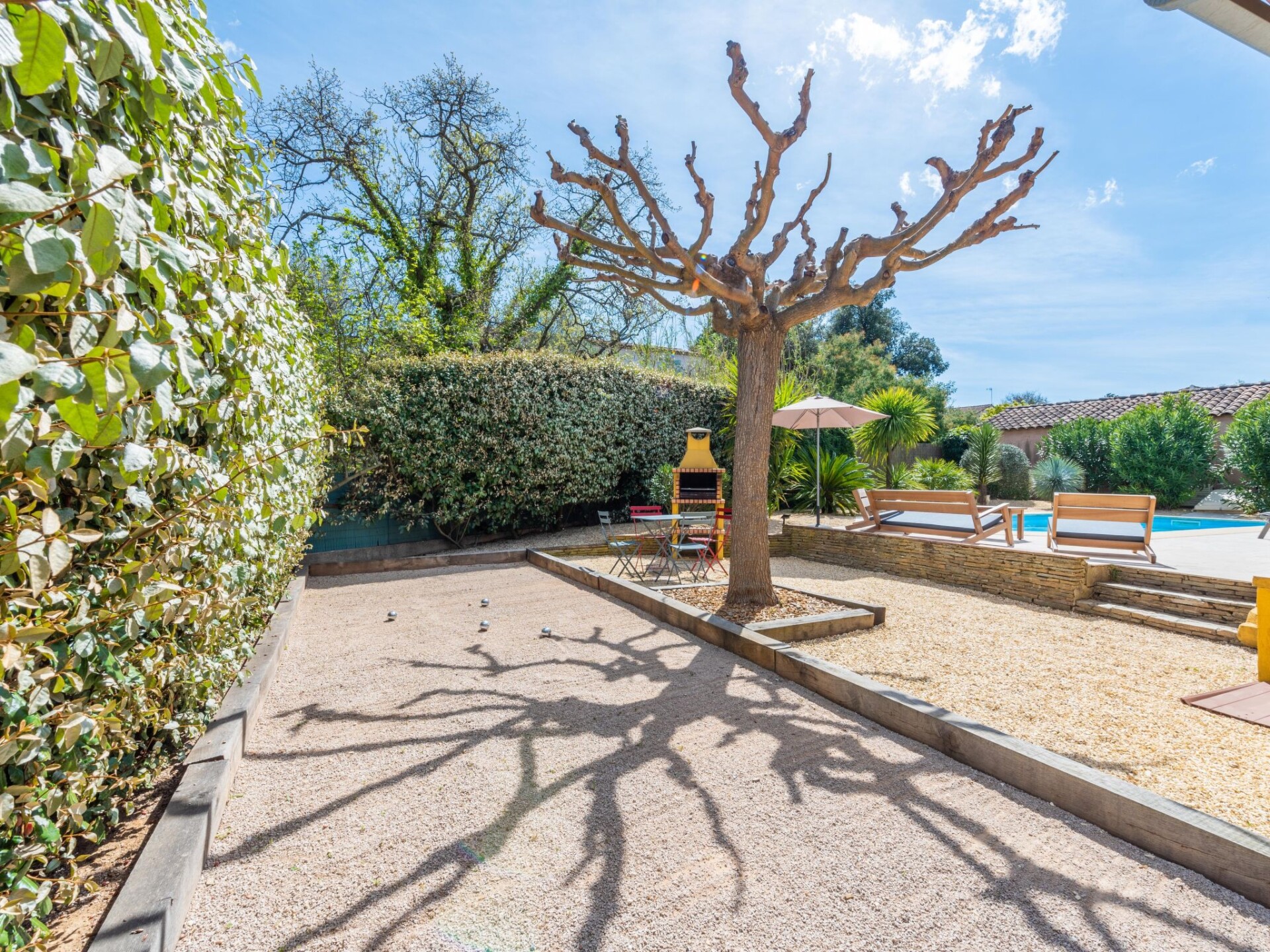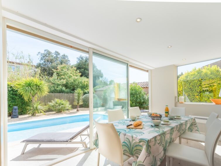 Eengezinswoning "Le Clos du Mûrier". In de plaats, 1 km van het centrum van Cogolin, 7 km van zee, 7 km van het strand. Voor alleengebruik: verzorgde tuin (omheind), openluchtzwembad (4 x 8 m, 80 - 140 cm diepte, seizoensgebonden beschikbaarheid: 01.Apr. - 30.Okt.) met alarminstallatie. Jeu de boules, openbare parkeerplaatsen 20 m in de straat. Winkel 900 m, levensmiddelenwinkel 1 km, supermarkt 1.2 km, restaurant 1 km, bakkerij 900 m, bushalte "Rond point de Kock" 1.1 km, zandstrand "Les Marines de Gassin" 7 km. Jachthaven 7 km, golfterrein (18 holes) 11 km, zeilschool 7 km, tennis 4 km, midgetgolf 7 km, manege 4 km. Attracties in de buurt: Port Grimaud 6 km, Parc d'attractions Azur Park 7 km, Saint Tropez 13 km, Pampelonne 18 km, Cannes 84 km, Nice 110 km. Bekende meren kunnen gemakkelijk worden bereikt: Lac de Sainte Croix 92 km. Wandelgebied Massif de l'Esterel 50 km. Auto noodzakelijk. De sleuteloverdracht vindt plaats bij het agentschap Interhome in Gassin, 7 km.