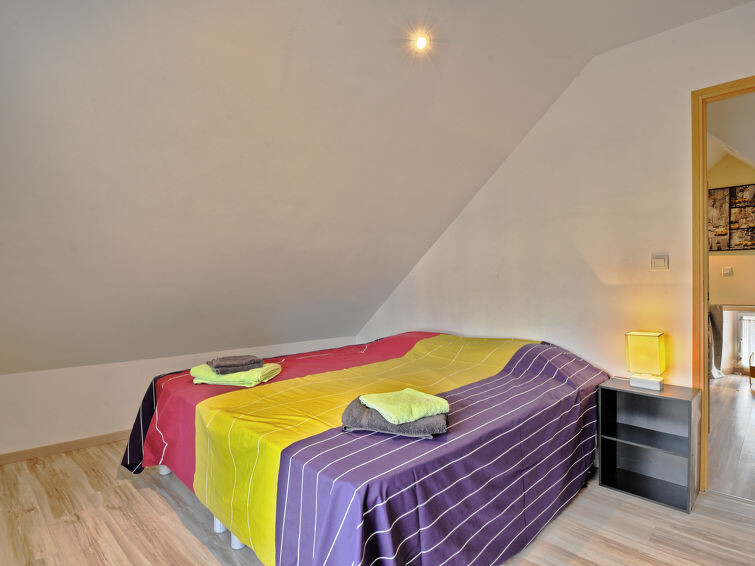 "Le Graffi'Ty", huis 3-kamers 70 m2 op 2 verdiepingen. Comfortabel en mooi ingericht: woon-/eetkamer met eettafel, TV, stereo-installatie en DVD. Uitgang naar het terras. Open keuken (4-pits kookplaat, oven, afwasmachine, 4 kookpitten (vlammen), broodrooster, waterkoker, magnetron, diepvriezer, elektrische koffiemachine). Aparte WC. Bovenverdieping: open galerij met afgeschuinde daken met 1 divanbed (130 cm, lengte 190 cm). 1 kamer met afgeschuinde daken met 1 2-pers bed (160 cm, lengte 200 cm). 1 kamer met afgeschuinde daken met 2 bedden (90 cm, lengte 200 cm). Badkamer, aparte WC. Elektrische verwarming. Terras, op het zuiden gelegen. Terrasmeubelen, barbecue (verrijdbaar). Ter beschikking: wasmachine, droger, strijkijzer, kinderstoel, kinderbed. Internet (WiFi, gratis). Rookvrij huis. Maximaal 1 huisdier/hond toegestaan. Rookmelders. In plaats van een afgesloten slaapkamer bevinden sommige slaapgedeeltes zich in een open ruimte (galerij, nis, etc.).