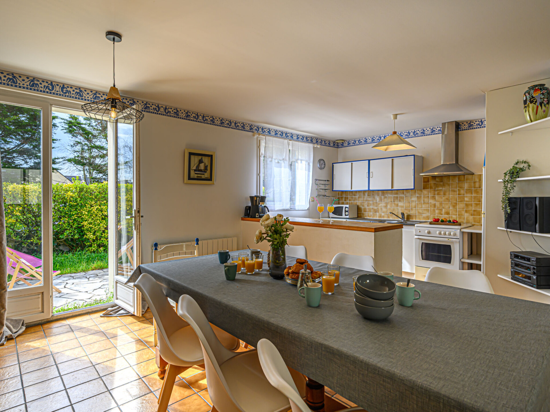 Eengezinswoning "Le Large". Aan de rand van de plaats, van zee, 800 m van het strand. Voor alleengebruik: tuin 300 m2 (omheind), parkeerplaats. Supermarkt 2 km, restaurant 2 km, bar 2 km, bakkerij 2 km, zandstrand "Men Er Bellec" 800 m. Jachthaven 5 km, golfterrein (18 holes) 15 km, surfschool 7 km, zeilschool 2 km. Attracties in de buurt: La Trinité sur Mer 5 km, Les Alignements de Carnac 12 km, Presqu'île de Quiberon 20 km, Vannes 25 km, Lorient 50 km. Wandelgebied Golf du Morbihan 20 km.