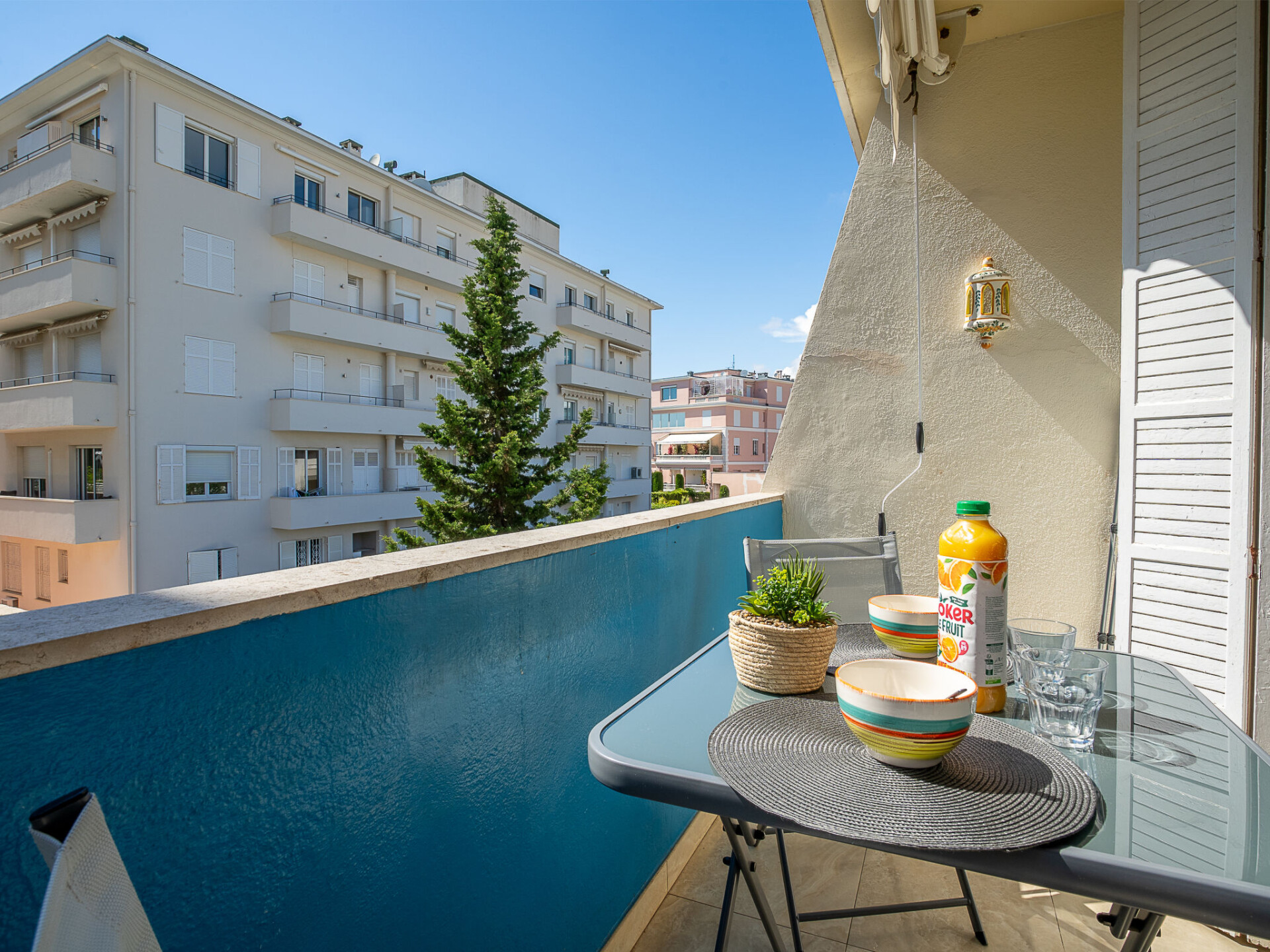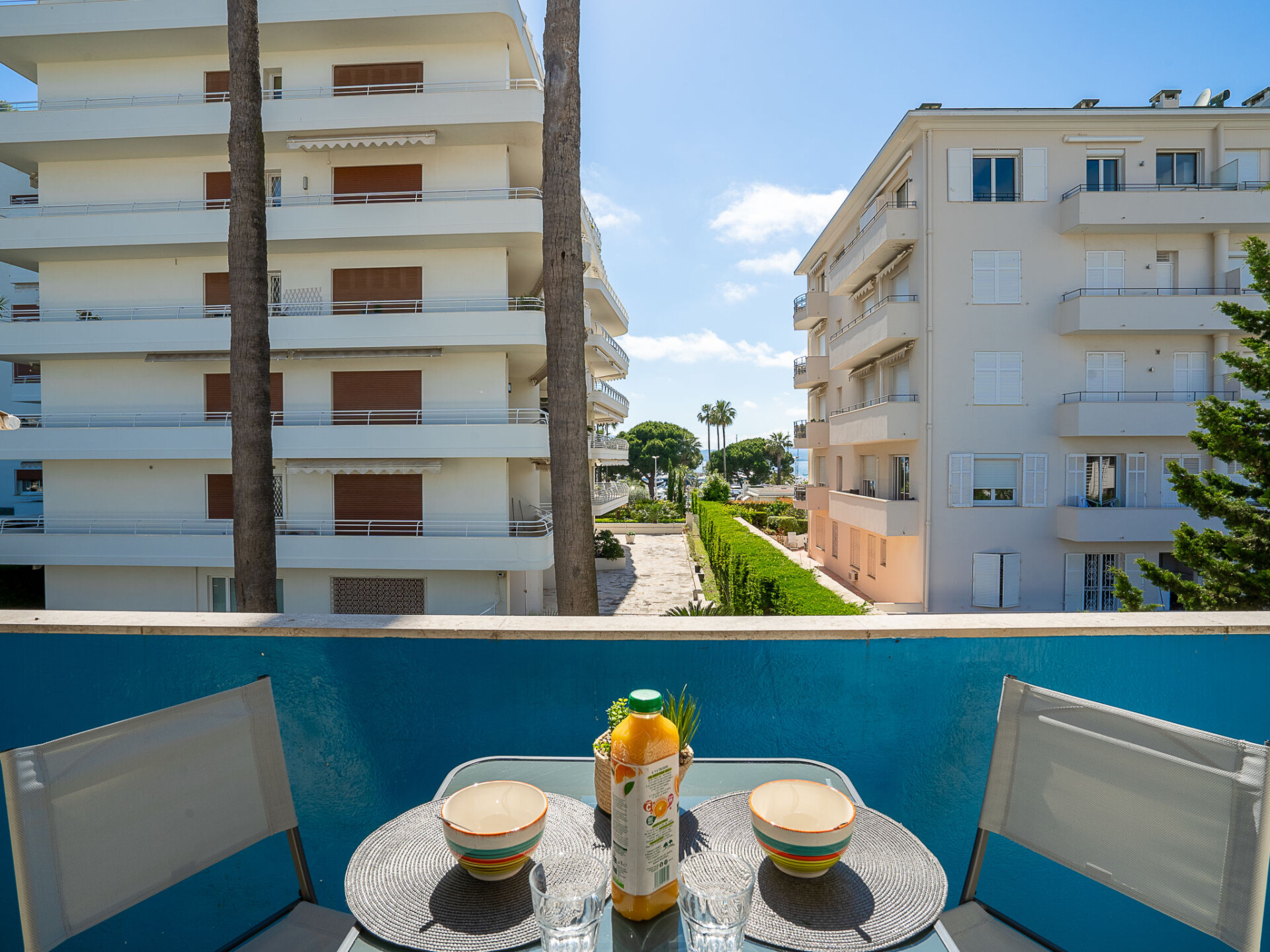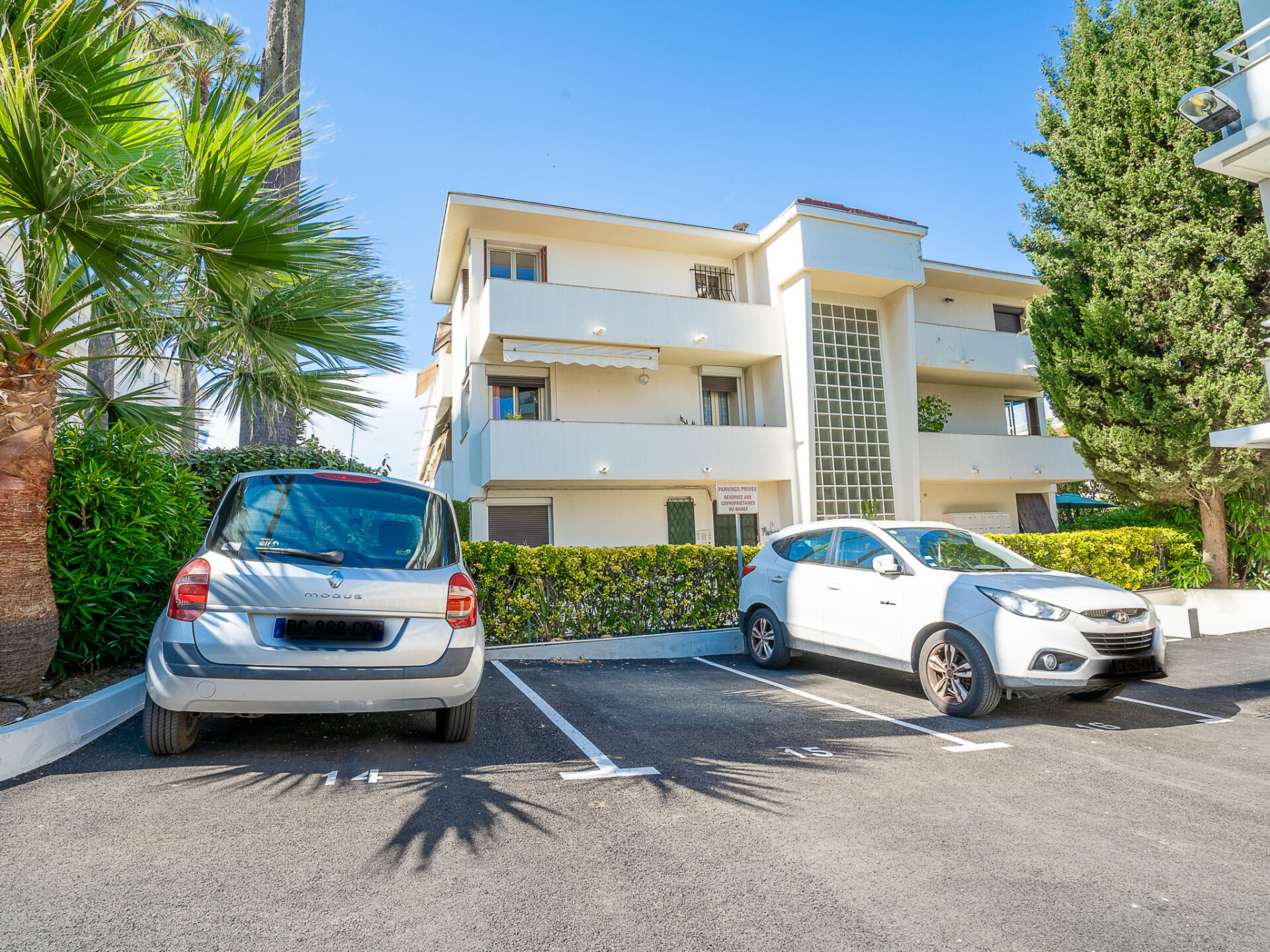 Flatgebouw "Le Marlyne 1", van 2 verdiepingen. In de wijk Palm Beach, 100 m van zee, 100 m van het strand, aan een doodlopende weg. Levensmiddelenwinkel, restaurant, bakkerij, bushalte 100 m. Attracties in de buurt: Croisette 50 m, Palais des Festivals 2 km. Geen lift.