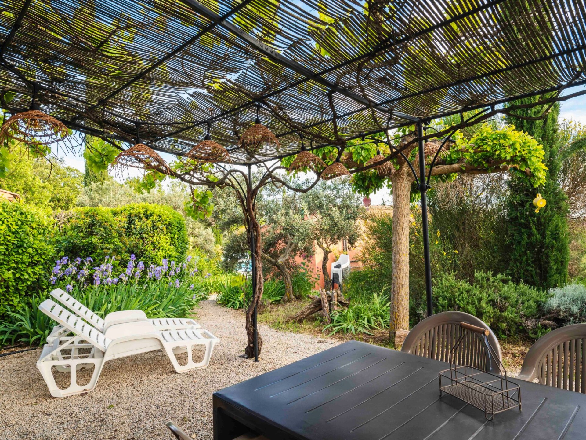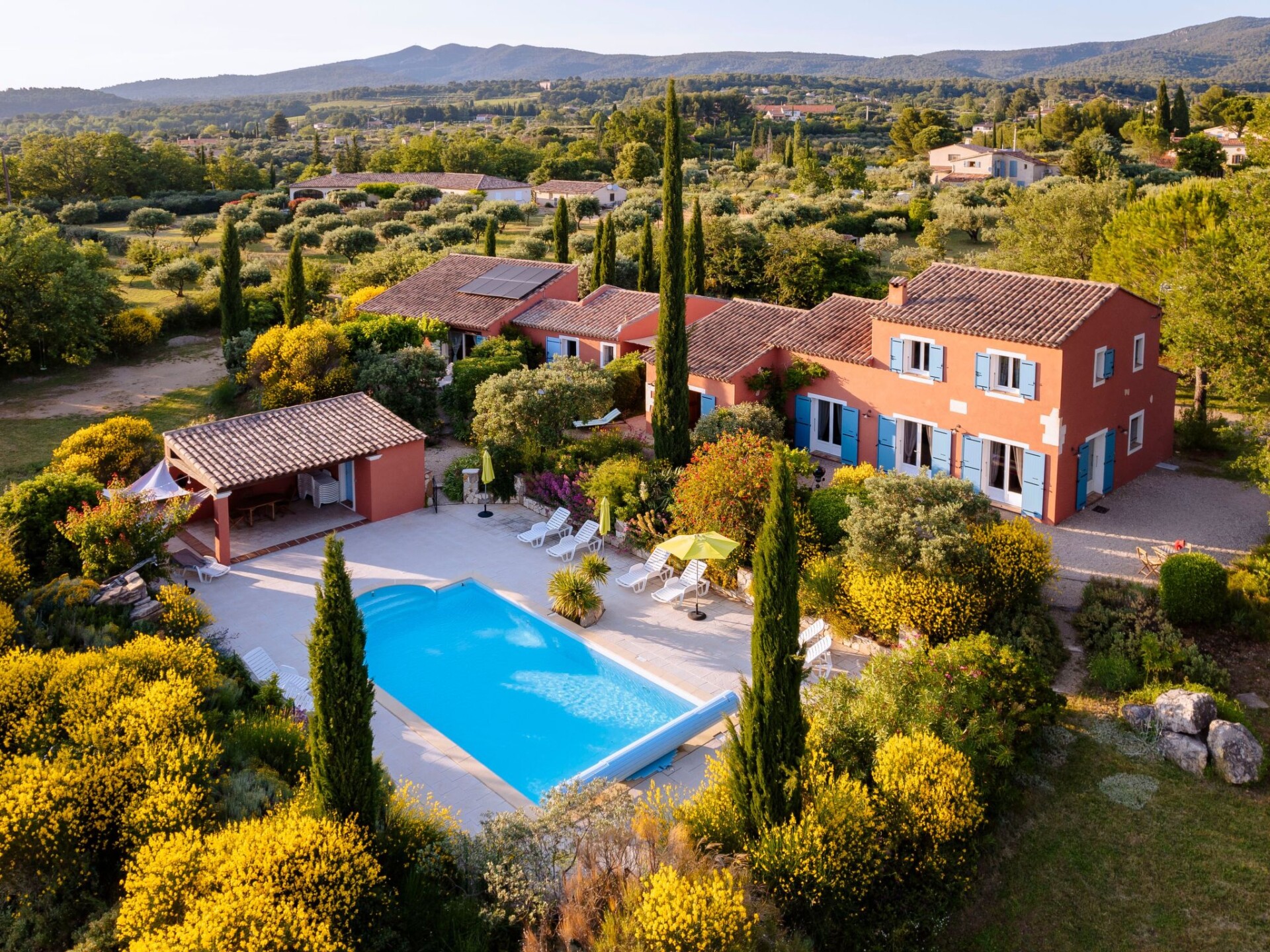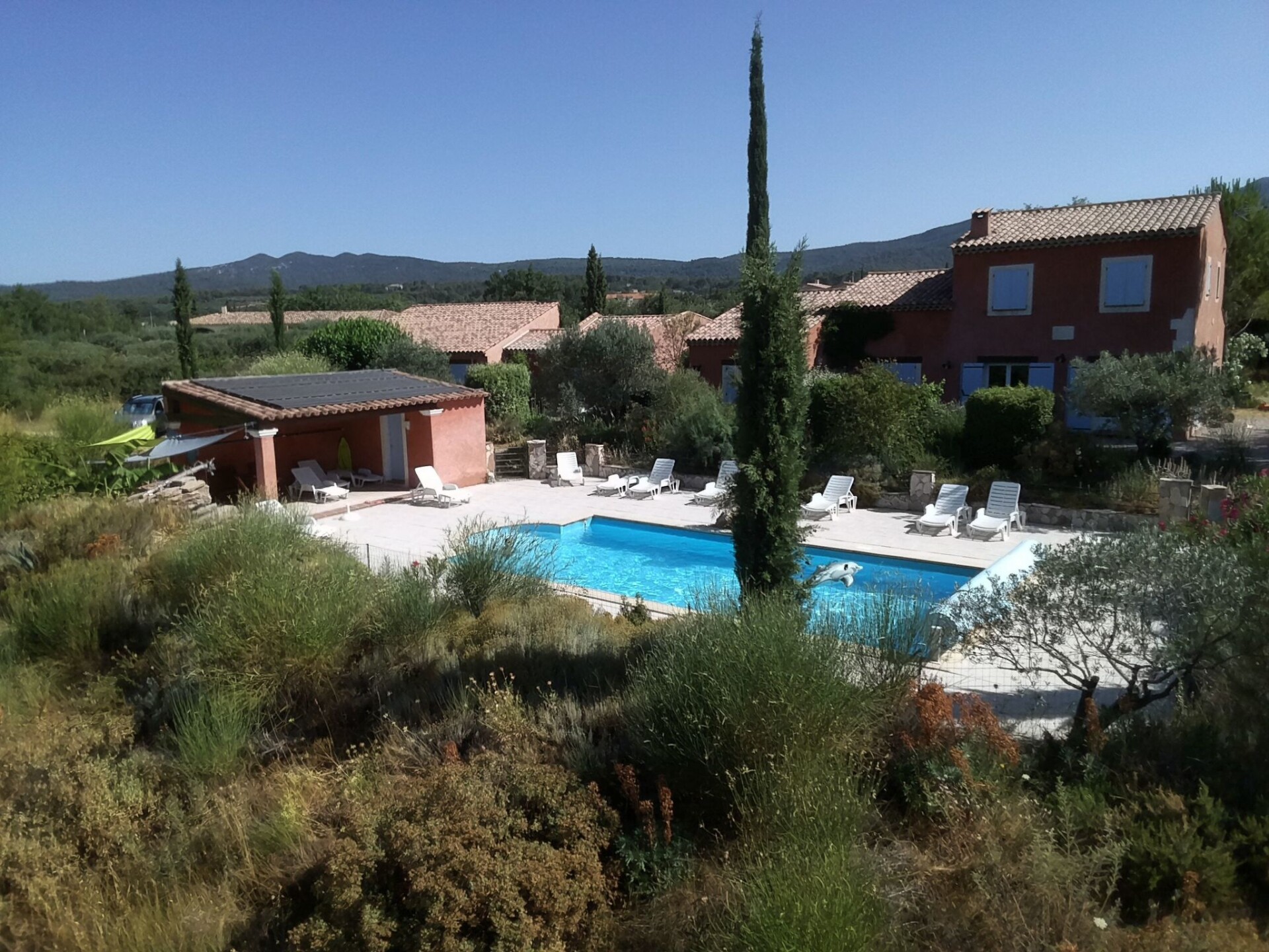 Le Mas de l'Aven, comprising 4 gîtes, is set in very peaceful surroundings in a large garden of over 7000m2 planted with trees. The charming village of Aups is within walking distance of the gîte. Aups has a wide range of shops and restaurants open all year round. The gîte is located 15 km from the Lac de Ste Croix, 30 km from the Gorges du Verdon and close to a number of pretty southern villages with waterfalls, troglodyte houses, tufa cliffs and the most beautiful villages in France. The 60m2 gîte le mûrier offers a large terrace shaded by a pergola, independent of the other gîtes. The living room opens onto a fully equipped open-plan kitchen with plenty of storage space. On the same level is a bedroom with a double bed. A second bedroom has two single beds. A bathroom with walk-in shower. There is also a separate toilet on the ground floor. A large swimming pool (10m x 5m) shared around a large decking area with pool house and plenty of sun loungers and parasols. A volleyball court, ping pong table, playground with swings, slide and pétanque boules will ensure you have a great time. Get away from mass tourism and discover the real thing. SIREN : 911 410 371
