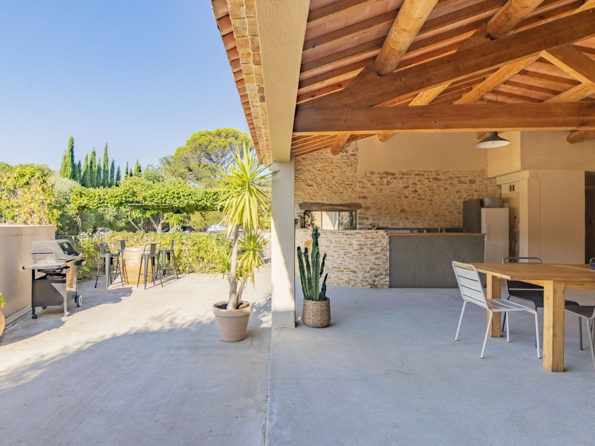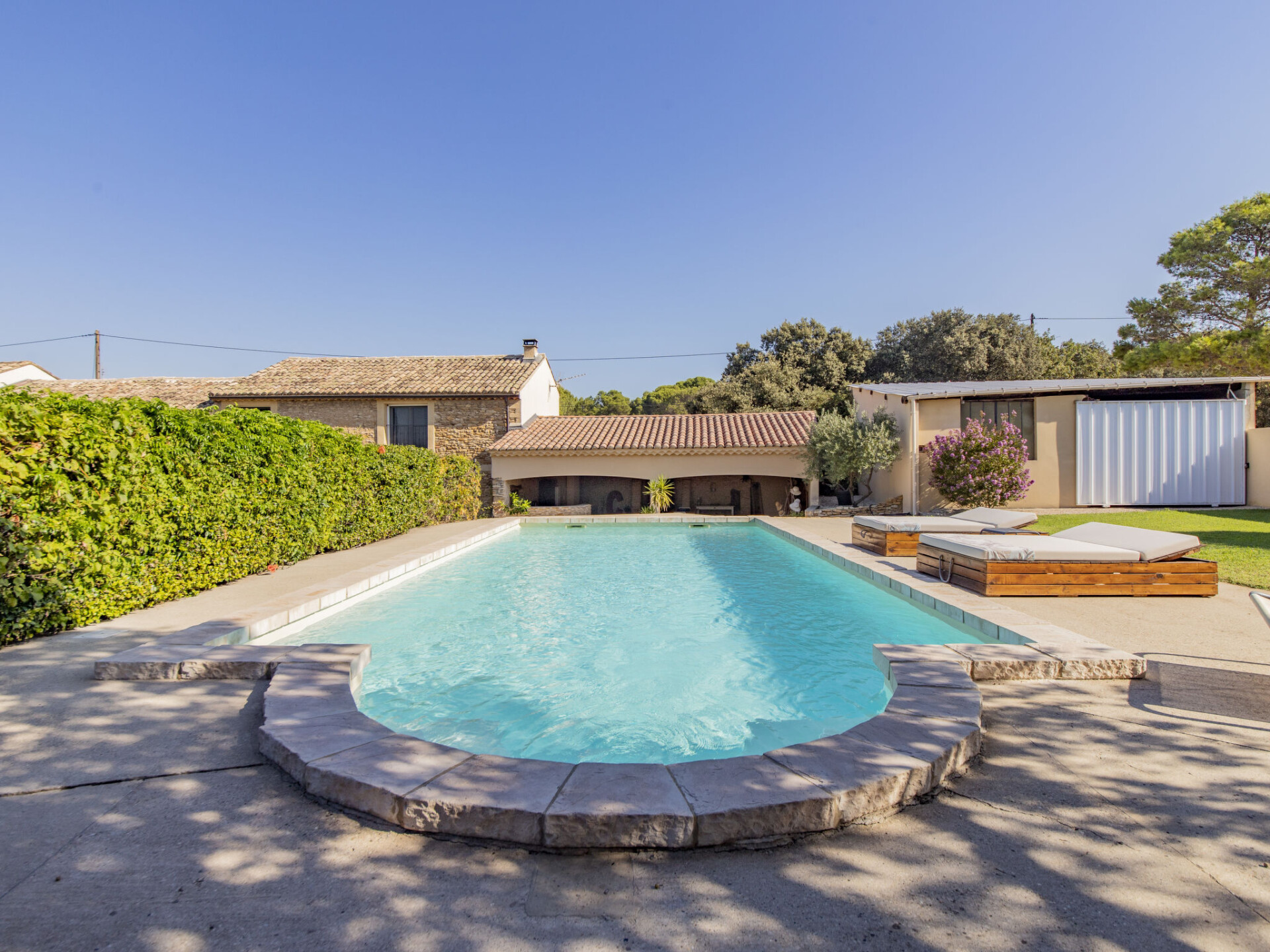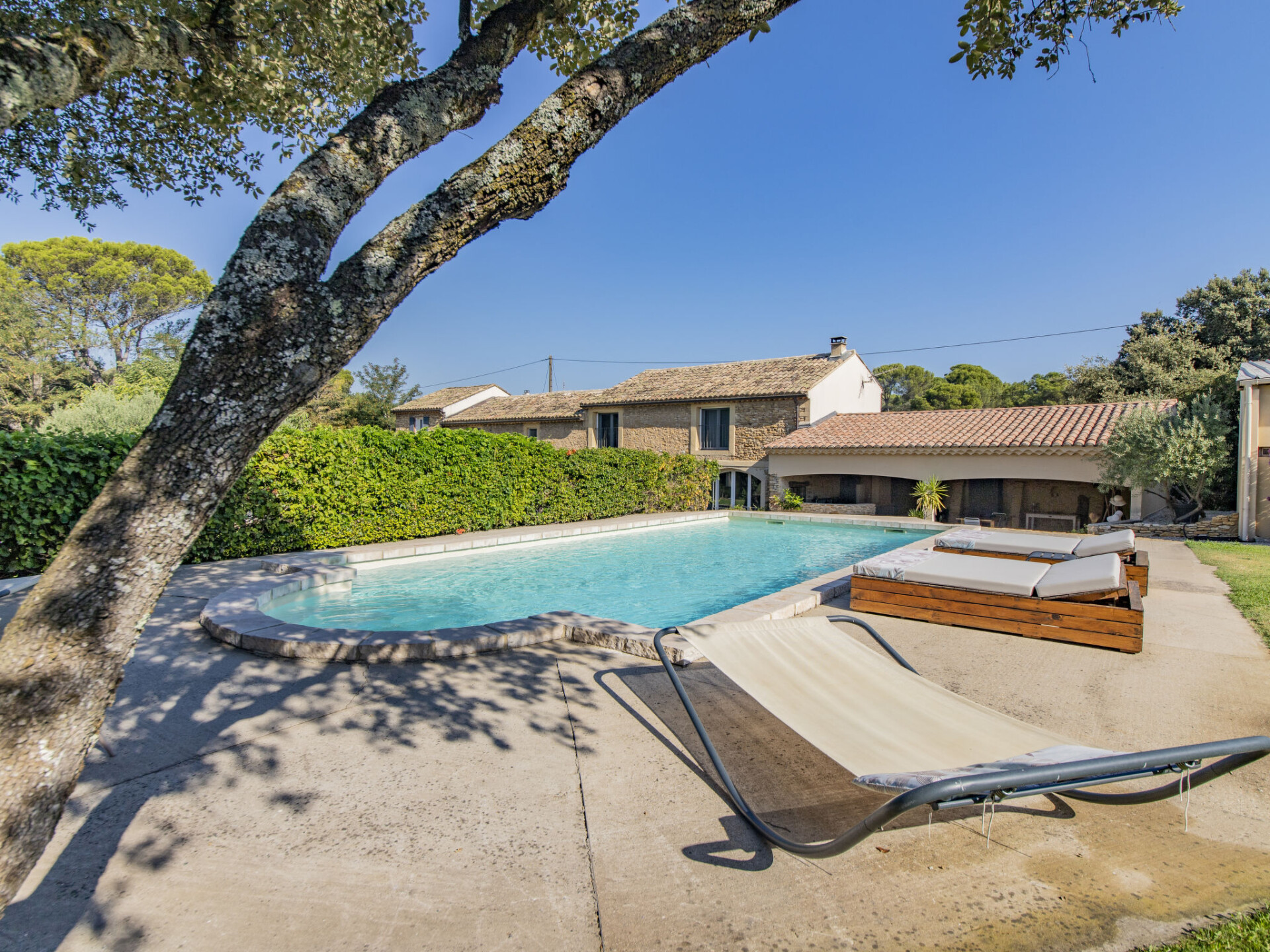 Mas "Le Mas des Buis", gerenoveerd in 2016. In de plaats, 1.5 km van het centrum van Uchaux. Voor alleengebruik: terrein 4.500 m2 (omheind), openluchtzwembad (10 x 5 m, 140 - 140 cm diepte, seizoensgebonden beschikbaarheid: 01.Jun. - 30.Sep.). Wissel van linnengoed 1 maal per week. Wissel van handdoeken 1 maal per week. 1 maal per week schoonmaak (incl.). Parkeerplaats op het terrein. Winkel 1.5 km, supermarkt 5 km, restaurant 500 m, bakkerij 150 m, bushalte "Centre Serignan du Comtat" 4.3 km. Attracties in de buurt: Orange 8 km, Vaison la Romaine 32 km, Avignon 41 km, Mont Ventoux 62 km. Auto noodzakelijk. Geschikt voor families.