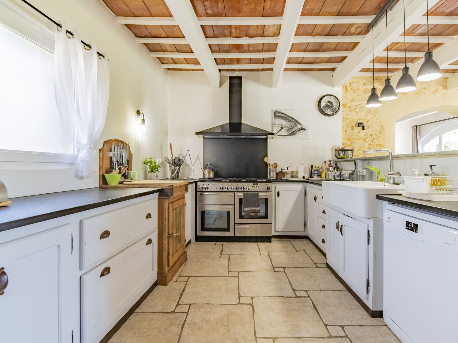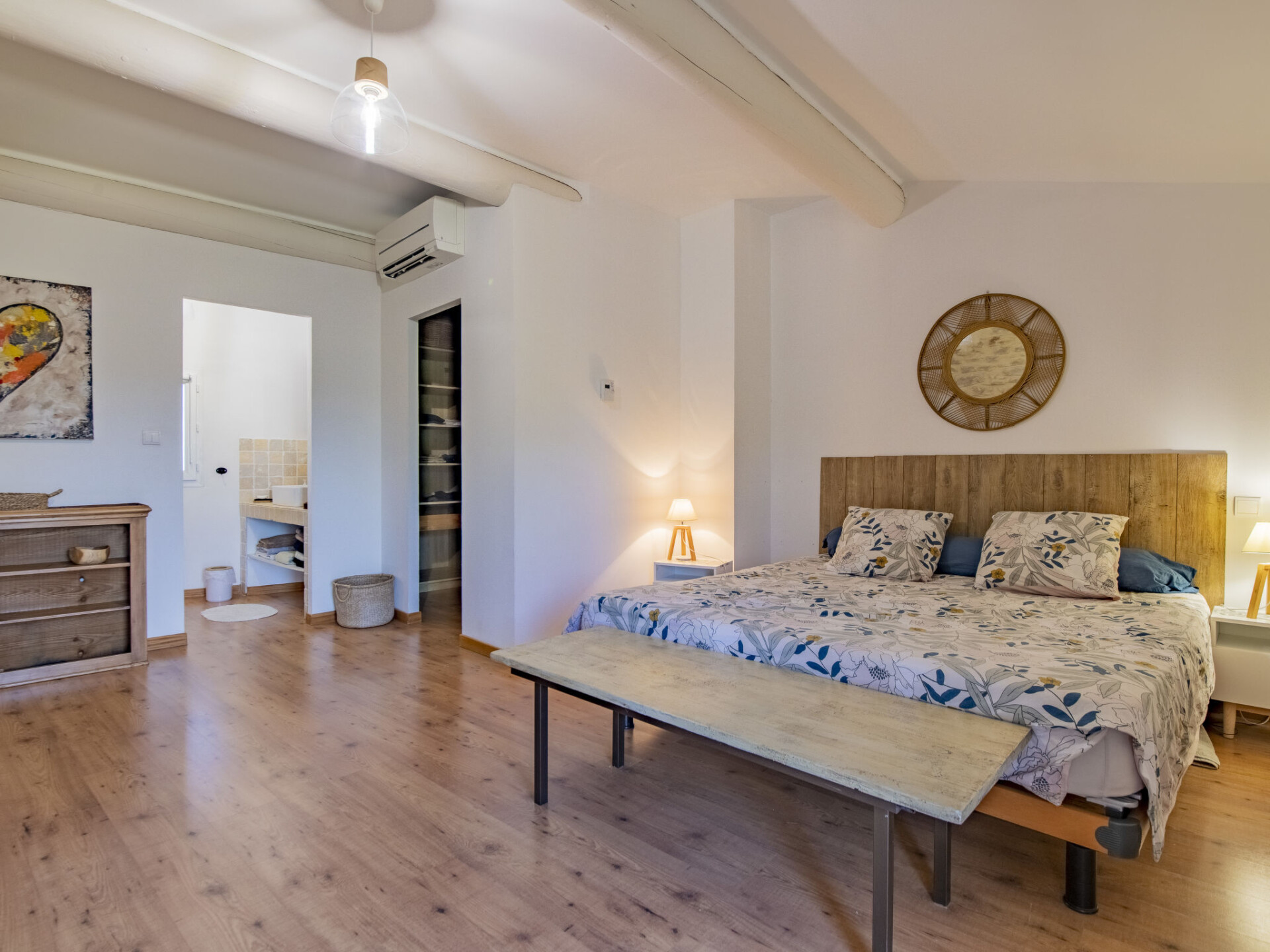 Huis 7-kamers 250 m2. Woon-/eetkamer met TV (Flatscreen TV), air-conditioning. Uitgang naar het terras. Biljardkamer. Open keuken (4-pits kookplaat, oven, afwasmachine, magnetron, diepvriezer, elektrische koffiemachine, pads voor de koffiemachine (Nespresso) extra). Aparte WC. Verwarming. Bovenverdieping: 1 kamer met 1 2-pers bed (140 cm, lengte 190 cm), air-conditioning. 2 kamers, elke kamer heeft 1 2-pers bed (140 cm, lengte 190 cm). 1 kamer met Kleedkamer met 1 2-pers bed (180 cm), douche/WC en TV (Flatscreen TV), air-conditioning. Douche, aparte WC, dubbele wastafels. Terras 200 m2 gedeeltelijk overdekt. Terrasmeubelen, barbecue, ligstoelen. Ter beschikking: wasmachine, strijkijzer. Internet (Internet (WiFi), gratis). Parkeerplaats (4 Auto's). Rookmelders.
