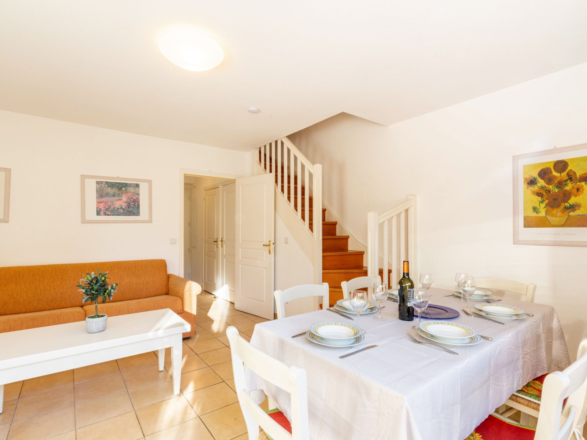 Huis in een rij 3-kamers 73 m2 op 2 verdiepingen, op het zuidwesten gelegen. Ruim, comfortabel en mooi ingericht: hal met aparte WC. Woon-/eetkamer met 1 2-pers divanbed (1 x 140 cm, lengte 190 cm), TV (Flatscreen TV), stereo-installatie. Uitgang naar de tuin, naar het terras. Keuken (oven, afwasmachine, 4 keramische glas kookplaten, broodrooster, waterkoker, magnetron, diepvriezer, elektrische koffiemachine). Bovenverdieping: (wenteltrap), 2 kamers, elke kamer heeft 1 2-pers bed (1 x 160 cm, lengte 190 cm). Bad/WC. Verwarming, air-conditioning. Terras 25 m2, zithoek in de tuin 20 m2. Terrasmeubelen. Ter beschikking: wasmachine, strijkijzer. Internet (WiFi, gratis). Parkeerplaats. Rookvrij huis. Maximaal 1 huisdier/hond toegestaan. Rookmelders. Aanbod door een particulier volgens art. 155, IV van CGI. 831070007815S