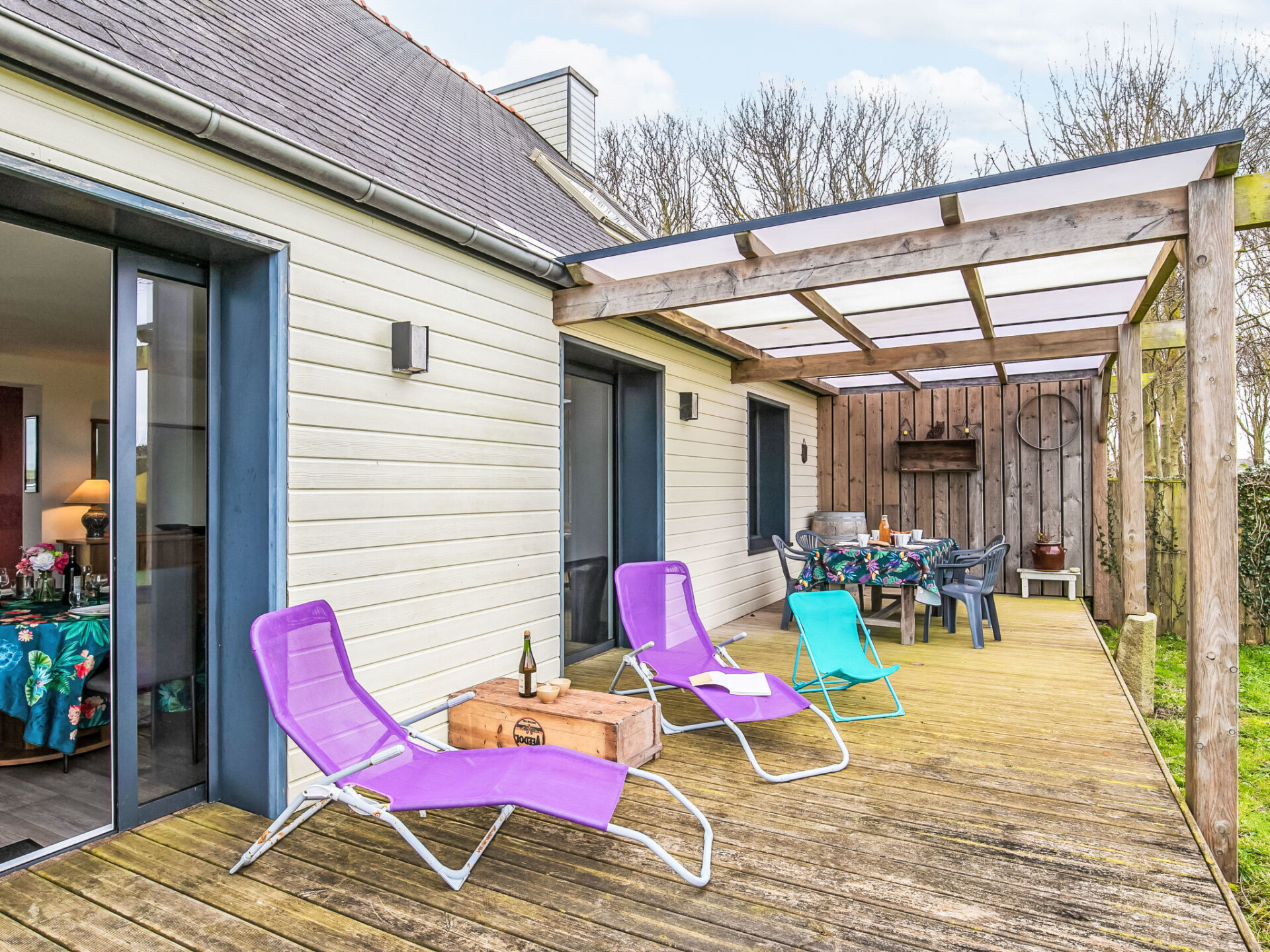 "Le Nid Marin", huis 3-kamers 80 m2. Licht, mooi en gezellig ingericht: groot, open woon-/eetkamer 30 m2 met TV (Flatscreen TV), houtkachel. Uitgang naar de tuin, naar het terras. 1 kamer 12 m2 met 1 2-pers bed (140 cm, lengte 190 cm). 1 kamer 12 m2 met 2 bedden (90 cm, lengte 190 cm). Open keuken (mini-oven, oven, 3 inductiekookplaten, broodrooster, waterkoker, magnetron, diepvriezer, elektrische koffiemachine, pads voor de koffiemachine (Senseo) extra). Douche/WC. Elektrische verwarming, houtverwarming. Groot terras 40 m2, op het zuidwesten gelegen. Terrasmeubelen, barbecue (verrijdbaar), ligstoelen (2). Ter beschikking: wasmachine, strijkijzer, kinderbed tot 2 jaar, haardroger. Internet (WiFi, gratis). Rookvrij huis. Maximaal 1 huisdier/hond toegestaan. Rookmelders. Aanbod door een particulier volgens art. 155, IV van CGI.