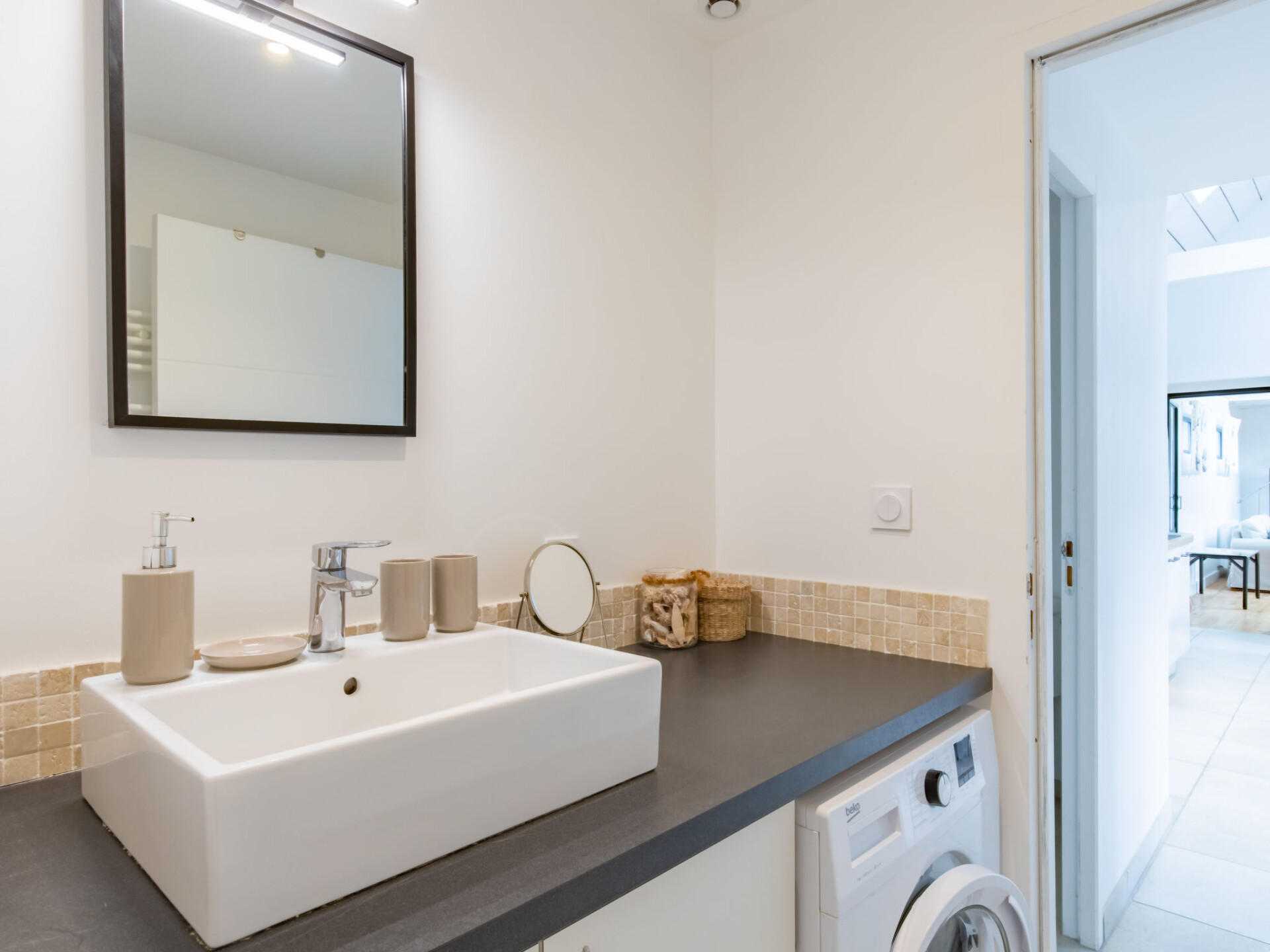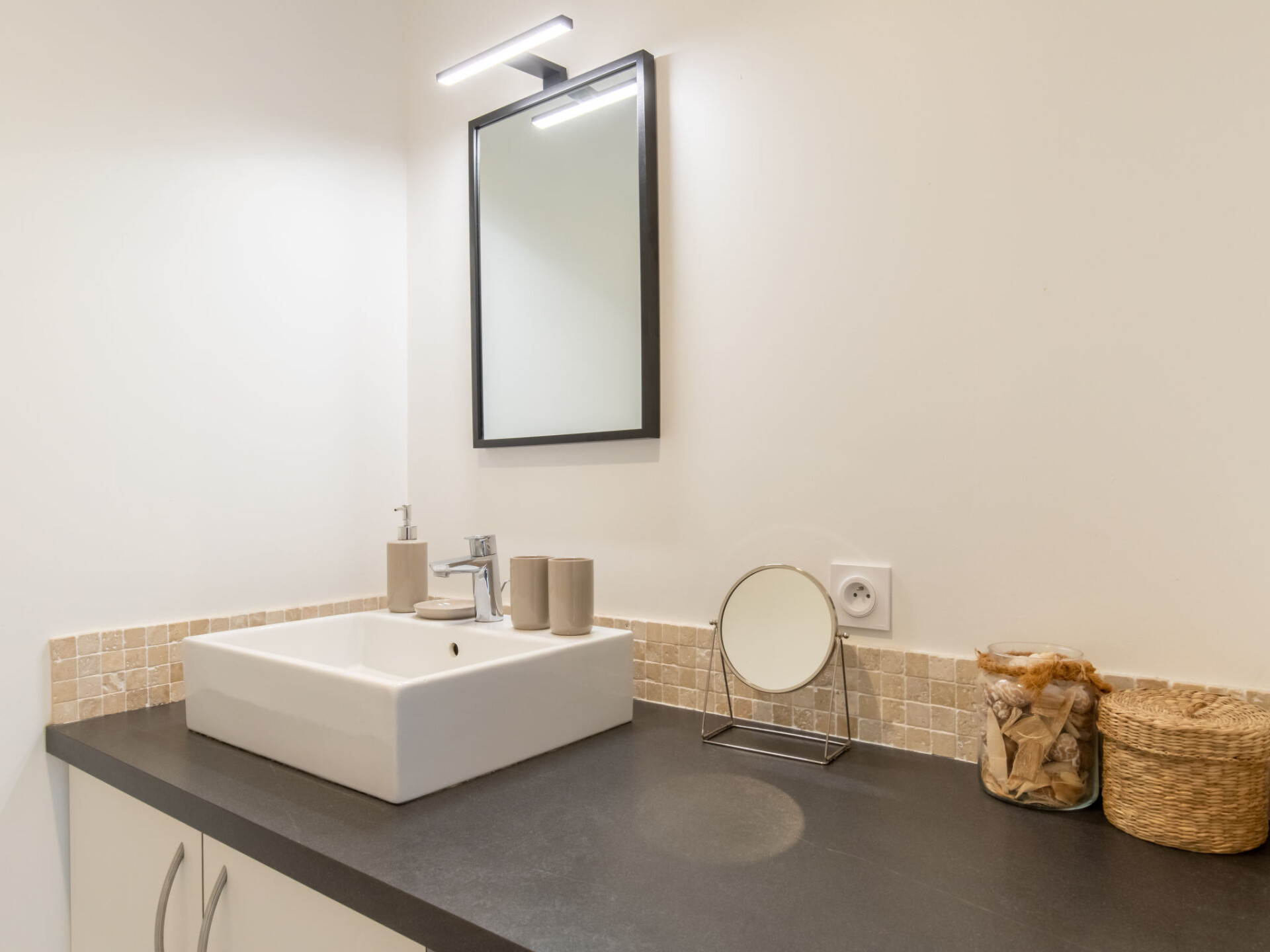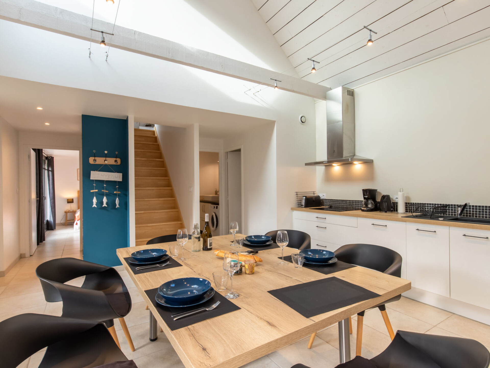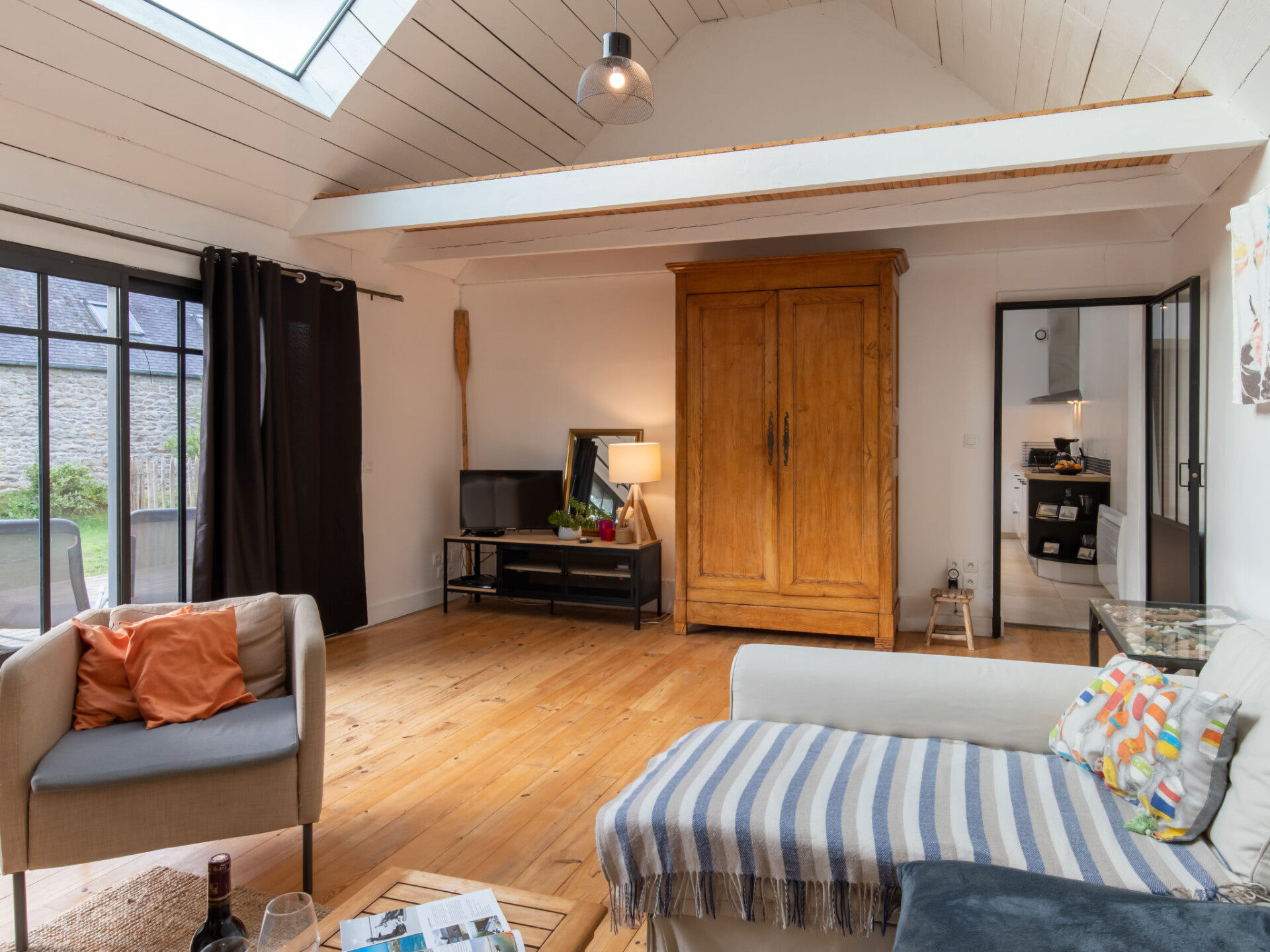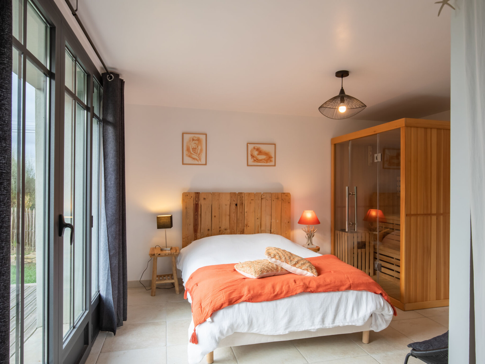 "Le Petit Bonheur", huis 3-kamers 90 m2. Modern en smaakvol ingericht: woonkamer met zwedenkachel, Sat-TV en DVD. Uitgang naar het terras. 1 kamer met 1 2-pers bed (140 cm, lengte 190 cm). Uitgang naar het terras. Open keuken (oven, afwasmachine, 3 inductiekookplaten, broodrooster, waterkoker, magnetron, diepvriezer, elektrische koffiemachine) met eettafel. Douche, aparte WC. Bovenverdieping: (steile trap) doorgangskamer met afgeschuinde daken met dakraam met 1 2-pers bed (140 cm, lengte 190 cm). 1 open kleine kamer met afgeschuinde daken met dakraam met 1 bed (90 cm, lengte 190 cm). Elektrische verwarming. Houten vloeren. Terras. Terrasmeubelen, barbecue (verrijdbaar), ligstoelen (5). Ter beschikking: wasmachine, sauna, kinderstoel, kinderbed. Internet (Internet (WiFi), gratis). Rookvrij huis. Rookmelders. De sauna is in een slaapkamer op begane grond.