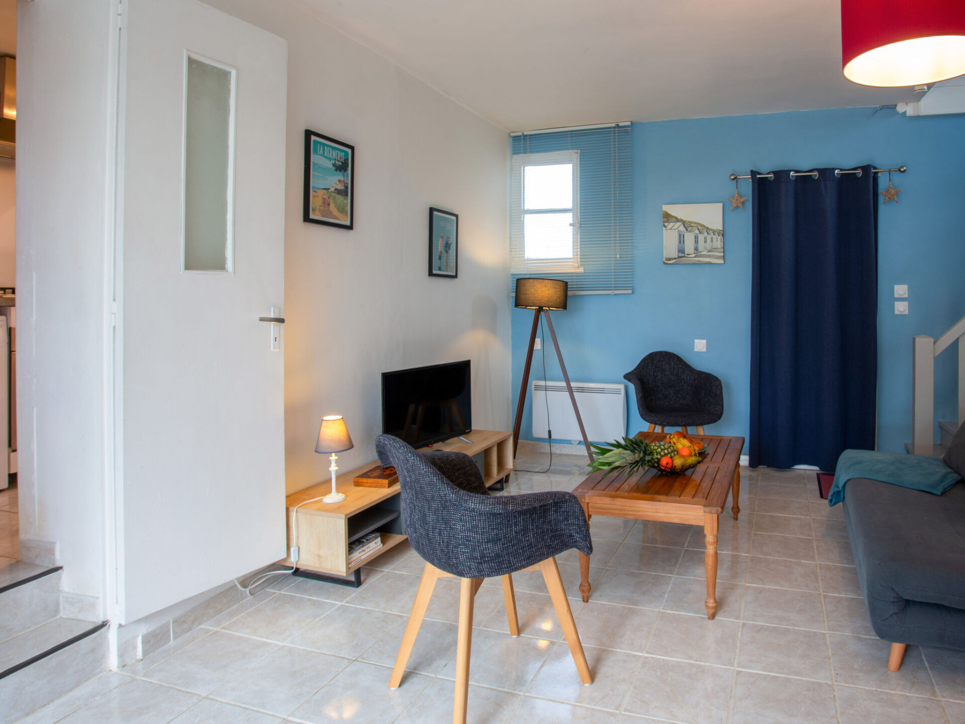 "Le Plan d'Eau - Maison 1", huis in een rij 3-kamers 65 m2 op 2 verdiepingen. Ruim, doelmatig en gezellig ingericht: woon-/eetkamer met TV (Flatscreen TV). Keuken (oven, afwasmachine, 4 kookpitten (vlammen), broodrooster, waterkoker, magnetron, diepvriezer, elektrische koffiemachine, pads voor de koffiemachine (Dolce Gusto) extra). Bovenverdieping: 1 kamer met 1 2-pers bed (1 x 140 cm, lengte 190 cm). 1 kamer met 2 bedden (90 cm, lengte 190 cm). Uitgang naar het balkon, op het zuiden. Bad/WC. Elektrische verwarming. Balkon 8 m2, op het zuiden gelegen, groot terras, op het zuiden gelegen. Terrasmeubelen, barbecue. Mooi uitzicht op zee. Ter beschikking: wasmachine, strijkijzer, haardroger. Internet (Internet (WiFi), extra). Parkeerplaats (omheind, 1 Auto). Rookvrij huis. Rookmelders. Aanbod door een particulier volgens art. 155, IV van CGI. 44012000025YA