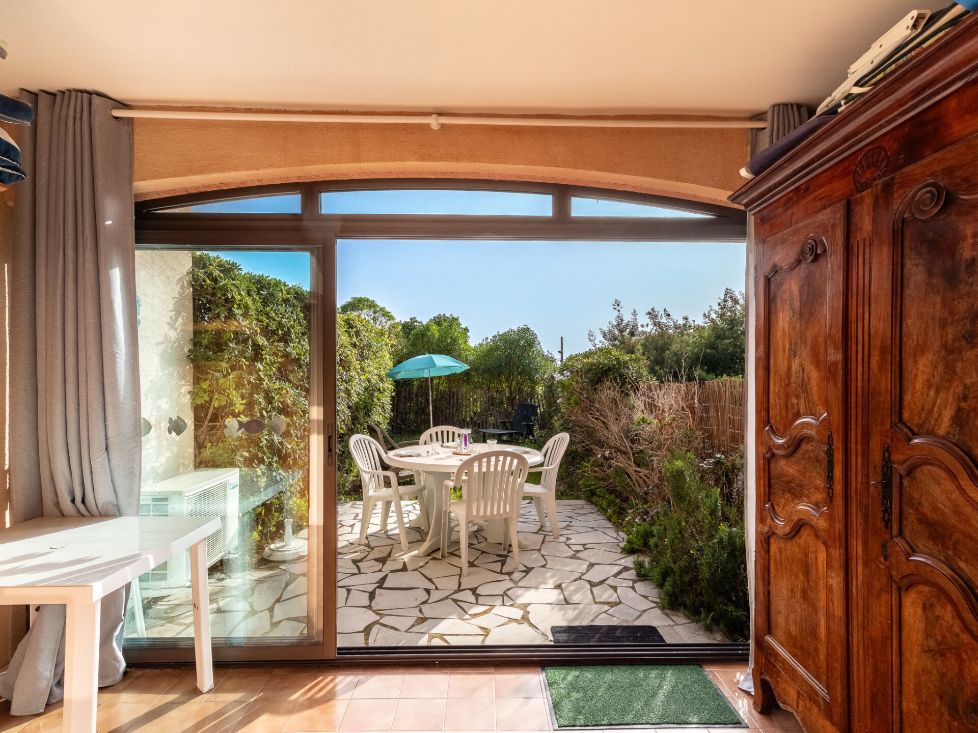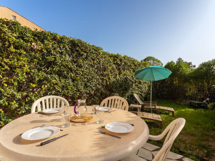 Appartement 2-kamers 28 m2, op de begane grond, op het zuiden gelegen. Comfortabel ingericht: woon-/eetkamer met 1 divanbed (140 cm, lengte 190 cm), TV (Flatscreen TV), air-conditioning. Met veranda. 1 kamer met 1 2-pers bed (160 cm, lengte 200 cm). Kookhoek (3-pits kookplaat, oven, afwasmachine, broodrooster, waterkoker, magnetron, diepvriezer, elektrische koffiemachine). Bad/WC. Elektrische verwarming. Terras 12 m2, op het zuiden gelegen, zithoek in de tuin 12 m2, op het zuiden gelegen. Terrasmeubelen. Ter beschikking: wasmachine, strijkijzer, haardroger. Internet(WiFi), extra). Parkeerplaats nr. 4. Woning aan de straatzijde. Niet rokers woning. 1 klein huisdier/hond toegestaan. TV alleen FR. Rookmelders. Aanbod door een particulier volgens art. 155, IV van CGI. 831520605225