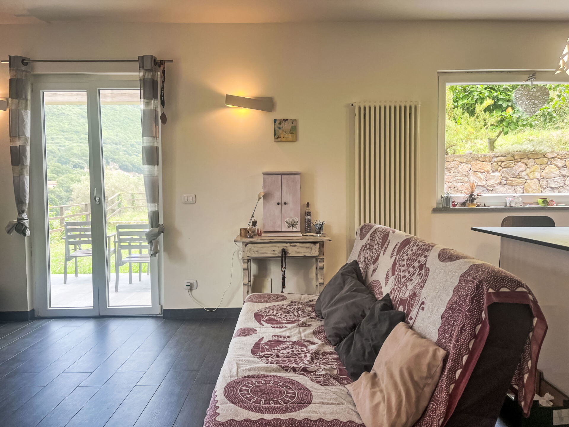 Appartement 2-kamers 50 m2, op de begane grond. Licht, volledig gerenoveerd, modern en gezellig ingericht: woon-/slaapkamer met 1 bed en 1 2-pers divanbed (1 x 160 cm, lengte 200 cm), Sat-TV. Uitgang naar de tuin. 1 kamer met 1 2-pers bed (1 x 160 cm, lengte 200 cm). Kookhoek (oven, afwasmachine, 4 kookpitten (vlammen), broodrooster, waterkoker, magnetron, diepvriezer, elektrische koffiemachine, kookeiland) met eettafel. Uitgang naar de tuin. Douche/bidet/WC. Houtverwarming. Verwarming alleen beschikbaar van 01.11. tot 15.04. Groot terras. Terrasmeubelen, barbecue, ligstoelen. Mooi uitzicht op de bergen. Ter beschikking: wasmachine, strijkijzer, klamboe, kinderstoel, kinderbed, haardroger. Internet (WiFi, gratis). Maximaal 1 huisdier/hond toegestaan. IT009016C255KQNS24