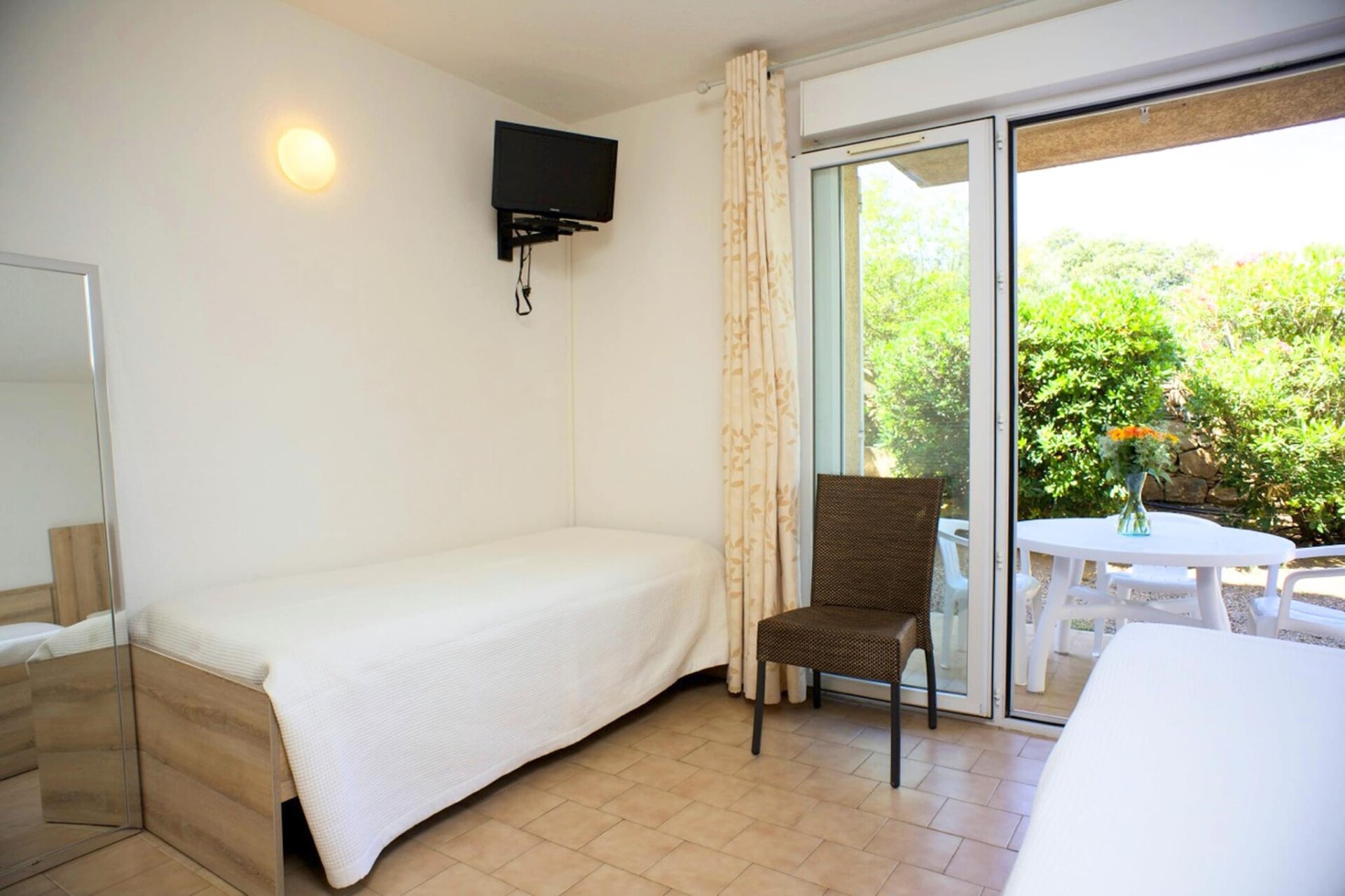 Dit knusse, vrijstaande appartement biedt een lichte en functionele plek, perfect voor maximaal 3 gasten. Ontworpen om ruimte en comfort te maximaliseren, maakt de unit deel uit van een aangenaam resort dat een sociale sfeer combineert met de privacy van een vrijstaande woning. De woonkamer is doordacht ingericht en dient zowel als ontspanningsruimte als slaapgelegenheid, met een tweepersoonsbed en een eenpersoonsbed. Moderne voorzieningen zijn overal aanwezig, zoals airconditioning om de ruimte koel te houden tijdens de warme mediterrane middagen, een tv voor uw entertainment en snelle internettoegang om verbonden te blijven tijdens uw verblijf.