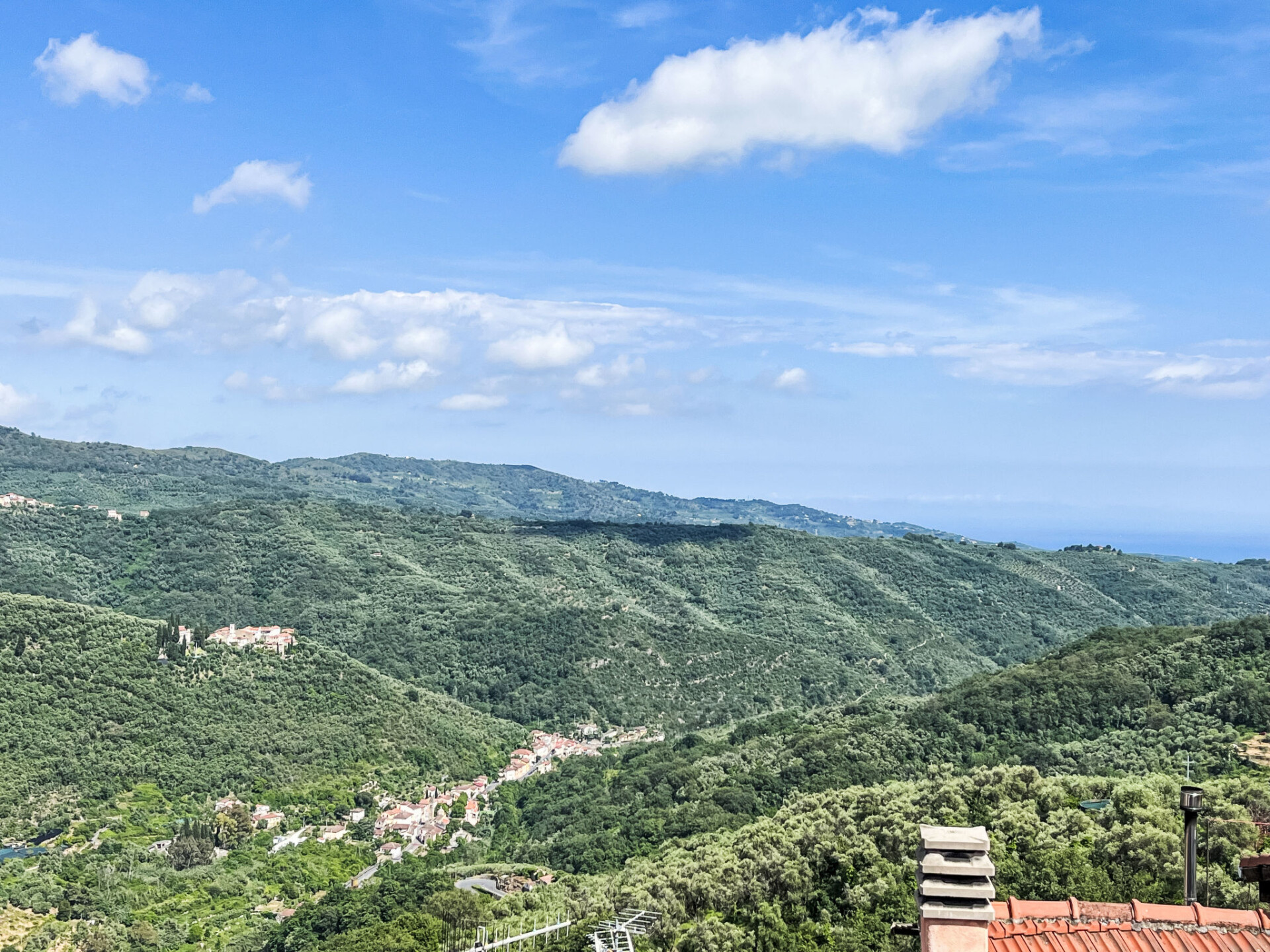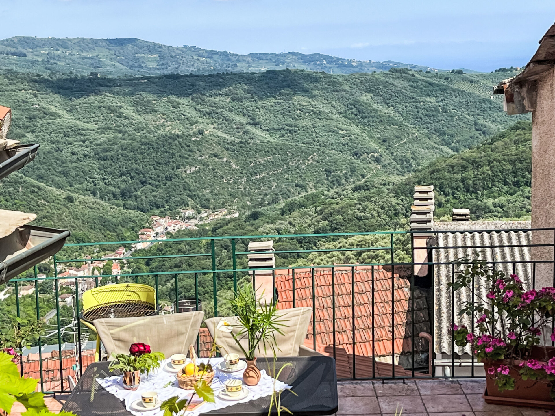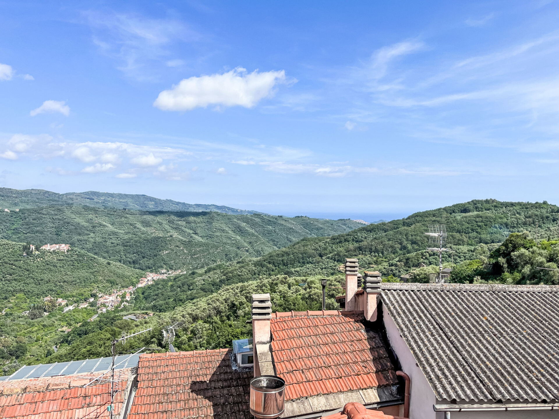 "Le Volte", appartement 3-kamers 80 m2 op 2 verdiepingen, op de begane grond. Ruim en licht, smaakvol en gezellig ingericht: woonkamer met Sat-TV, internationale TV-zenders en Flatscreen TV. 1 kamer met 1 2-pers bed (160 cm). Groot keuken (Gasfornuis, 4 kookpitten (vlammen), broodrooster, diepvriezer, elektrische koffiemachine, pads voor de koffiemachine (Lavazza)) met eettafel. Douche/bidet/WC. Gas-verwarming. Bovenverdieping: 1 kamer met 1 2-pers bed (160 cm). Comfortabele inrichting in landelijke stijl. Terras 16 m2. Terrasmeubelen, barbecue, ligstoelen (2). Zeer mooi uitzicht in de verte op zee en het dal. Ter beschikking: wasmachine, strijkijzer, klamboe, haardroger. Internet (Internet (WiFi), gratis). IT008047B5MRIN37B3