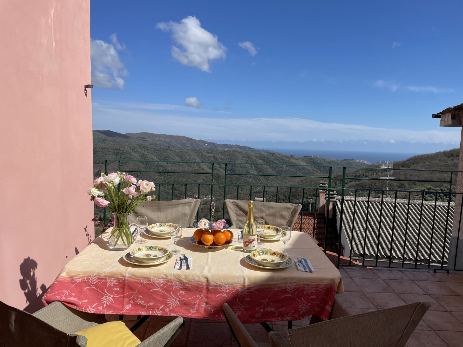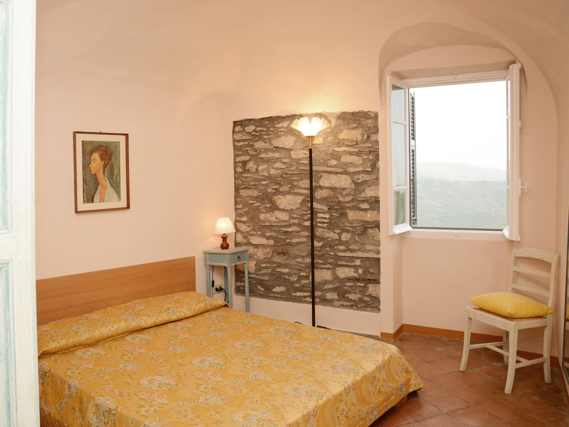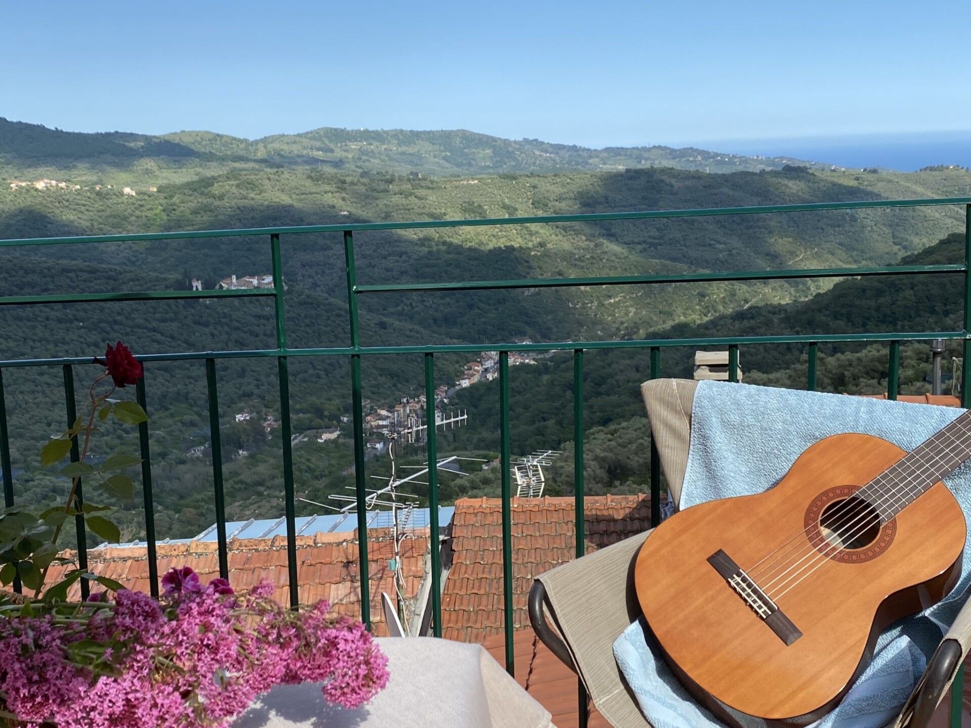 "Le Volte", appartement 3-kamers 80 m2 op 2 verdiepingen, op de begane grond. Ruim en licht, smaakvol en gezellig ingericht: woonkamer met Sat-TV, internationale TV-zenders en Flatscreen TV. 1 kamer met 1 2-pers bed (160 cm). Groot keuken (Gasfornuis, 4 kookpitten (vlammen), broodrooster, diepvriezer, elektrische koffiemachine, pads voor de koffiemachine (Lavazza)) met eettafel. Douche/bidet/WC. Gas-verwarming. Bovenverdieping: 1 kamer met 1 2-pers bed (160 cm). Comfortabele inrichting in landelijke stijl. Terras 16 m2. Terrasmeubelen, barbecue, ligstoelen (2). Zeer mooi uitzicht in de verte op zee en het dal. Ter beschikking: wasmachine, strijkijzer, klamboe, haardroger. Internet (Internet (WiFi), gratis). IT008047B5MRIN37B3