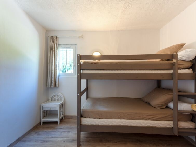 Appartement 3-kamers 40 m2, op de begane grond, op het oosten gelegen. Comfortabel ingericht: woon-/eetkamer met TV (Flatscreen TV). Uitgang naar het terras. 1 kamer met 1 x 2 stapelbedden (90 cm, lengte 190 cm). 1 kamer met 1 2-pers bed (140 cm, lengte 190 cm). Uitgang naar de tuin. Open keuken (2 kookpitten (vlammen), broodrooster, waterkoker, magnetron, diepvriezer, elektrische koffiemachine). Douche/WC. Elektrische verwarming, boiler (100 liter). Terras 15 m2, tuin 40 m2, op het oosten gelegen. Terrasmeubelen, ligstoelen (4). Uitzicht op het dal. Ter beschikking: wasmachine, strijkijzer, haardroger. Internet (Internet (WiFi), extra). Parkeerplaats (omheind, 2 Auto's). Privé ingang, rookmelders.