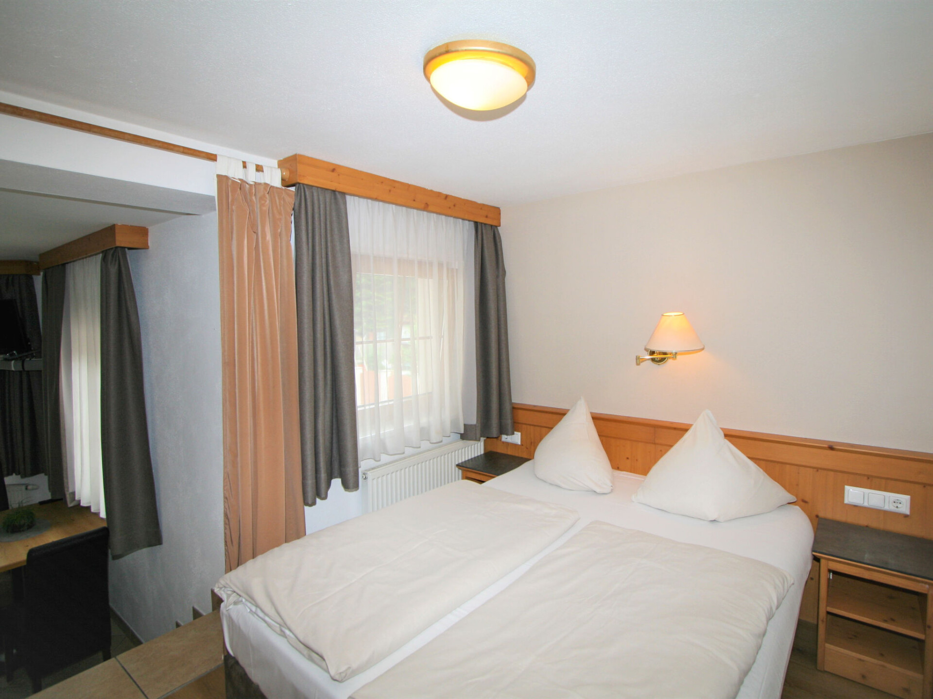 "Lechners Wohnwelt", appartement 2-kamers 30 m2, op verhoogde begane grond. Het objekt is geschikt voor 2 volwassenen + 2 kinderen. Comfortabel en smaakvol ingericht: woon-/slaapkamer met 1 x 2 stapelbedden, eettafel en Sat-TV (Flatscreen TV). Uitgang naar het balkon. 1 open kamer met gordijn met 1 2-pers bed (140 cm). Kleine, open keuken (2-pits kookplaat, broodrooster, waterkoker, magnetron, elektrische koffiemachine). Douche/WC, dubbele wastafels. Verwarming. Vloerbedekking. Balkon. Balkonmeubilair, elektrische barbecue. Mooi panoramazicht. Ter beschikking: Internet (WiFi, gratis). Niet rokers woning. Maximaal 1 huisdier/hond toegestaan. Rookmelders.