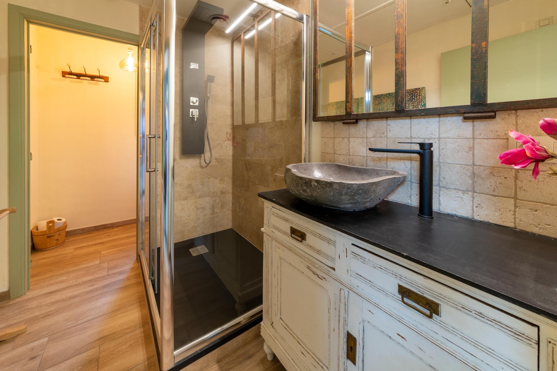 Buiten kunt u genieten van de prachtig aangelegde tuin op het zuiden met terrassen en een Ofyr plancha/barbecue – perfect voor warme zomeravonden. Airconditioning zorgt het hele jaar door voor comfort.