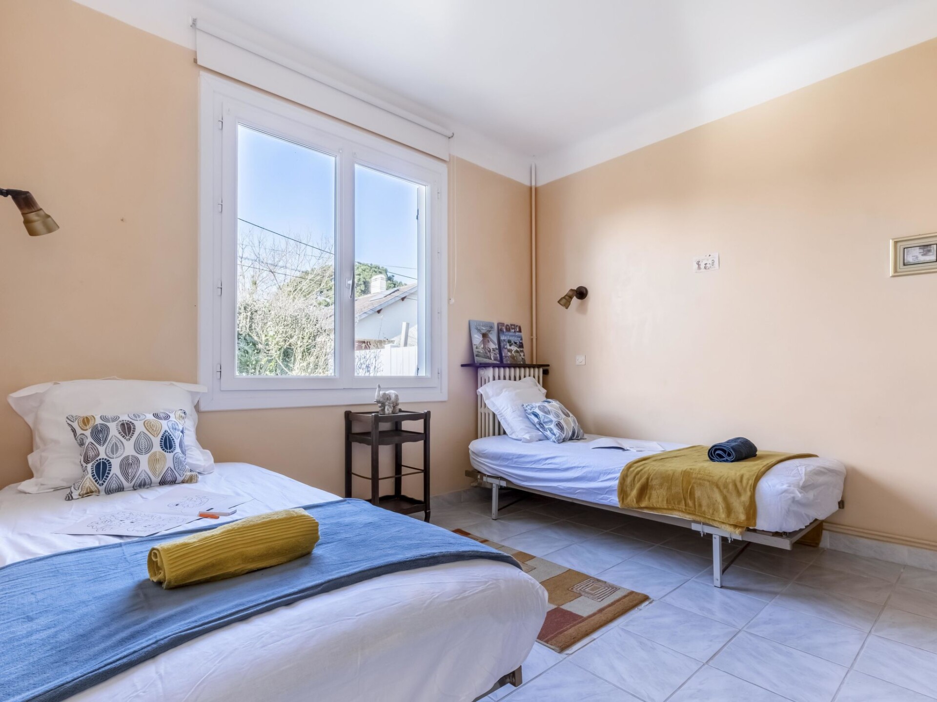 Huis in een rij 4-kamers 70 m2. Woon-/eetkamer met TV (Flatscreen TV). 1 kamer met 1 2-pers bed (1 x 140 cm, lengte 200 cm). 1 kamer met 2 bedden (90 cm, lengte 190 cm). 1 kleine kamer met 1 2-pers bed (1 x 140 cm, lengte 200 cm). Keuken (oven, afwasmachine, 4 kookpitten (vlammen), broodrooster, waterkoker, elektrische koffiemachine) met kleine eettafel. Badkamer, bidet, aparte WC. Gas-verwarming. Terrasmeubelen, barbecue, ligstoelen. Ter beschikking: wasmachine, droger. Internet (Internet (WiFi), gratis). Rookvrij huis. Rookmelders. Aanbod door een particulier volgens art. 155, IV van CGI. 44131000230NL