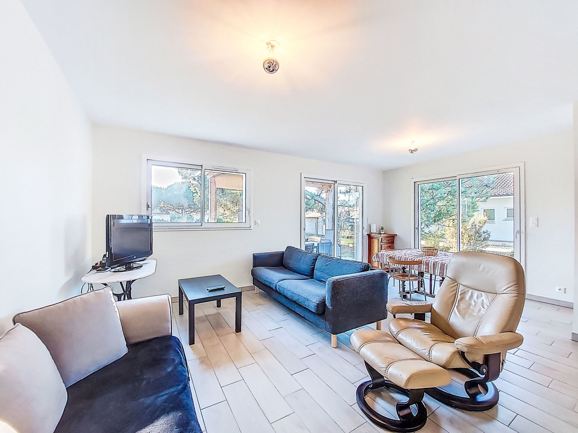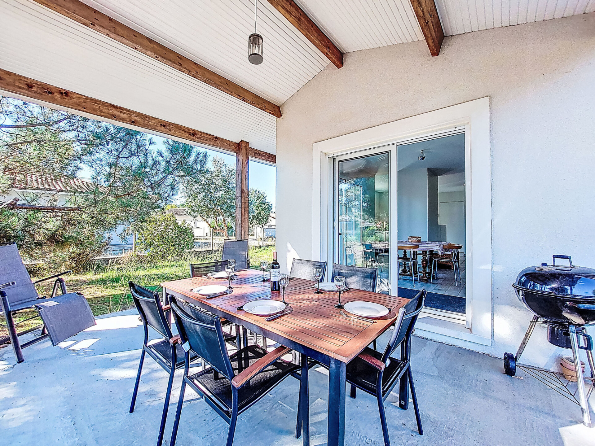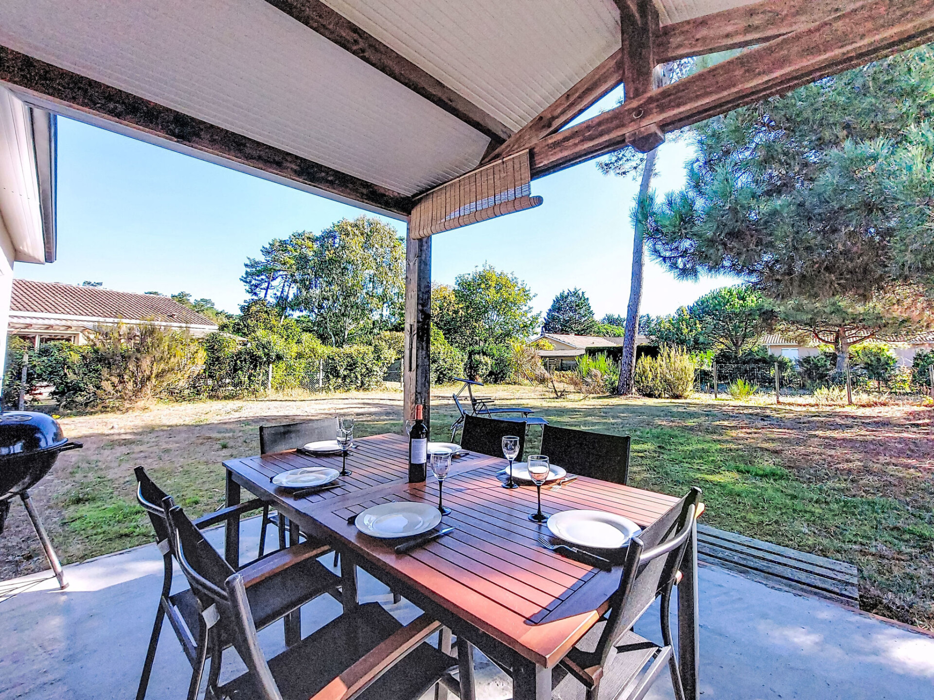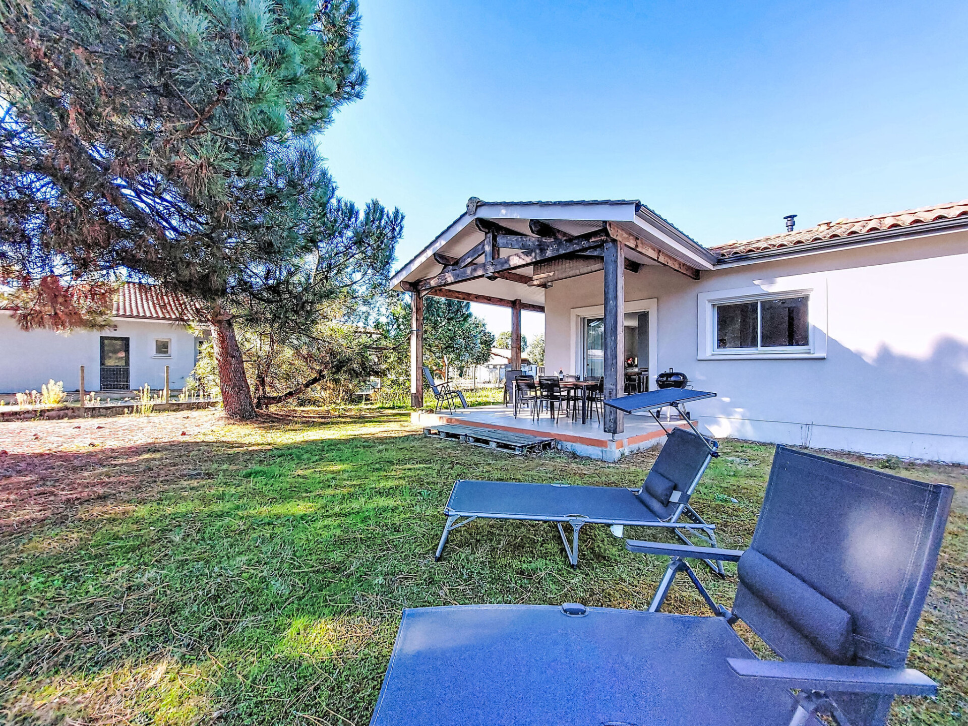 Eengezinswoning. In de wijk Le Hameau des Pins, 1 km van het centrum van Montalivet, 7.5 km van het centrum van Vendays, 19 km van het centrum van Soulac-sur-Mer, in een woonwijk, 1.4 km van zee, 1.4 km van het strand, aan een doodlopende weg. Voor alleengebruik: wild terrein 800 m2 (omheind), parkeerplaats bij het huis op het terrein. Winkel 1 km, supermarkt 1.2 km, bushalte "Av. De l'Europe/Montalivet" 650 m, zandstrand "Montalivet" 1.4 km, meer (zwemmen) "Hourtin" 30 km. Attracties in de buurt: Lacanau 50 km, Bordeaux 80 km.