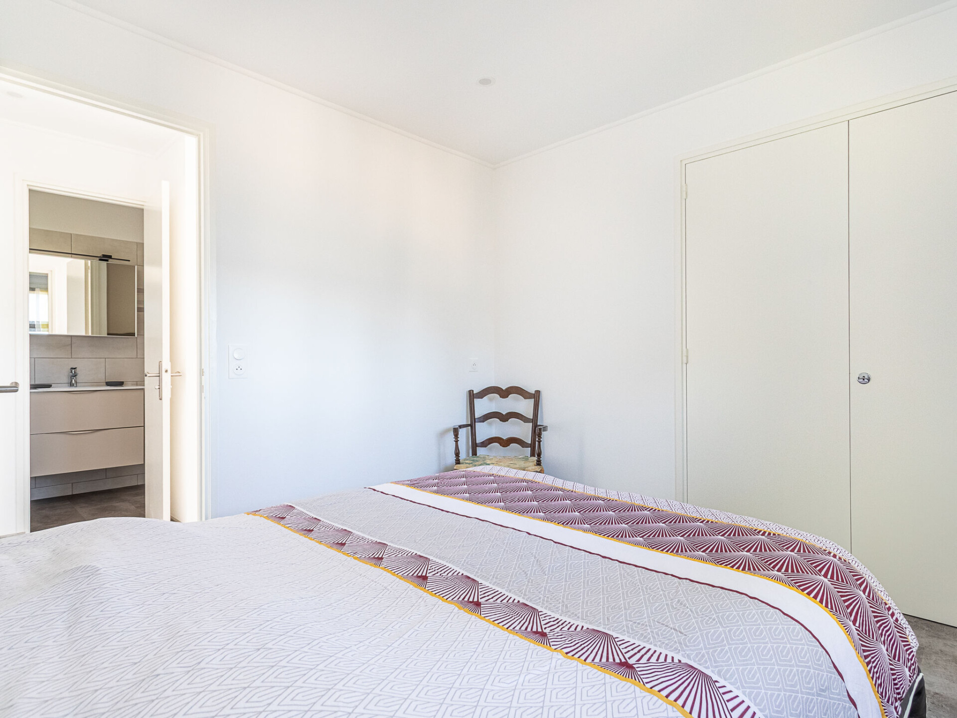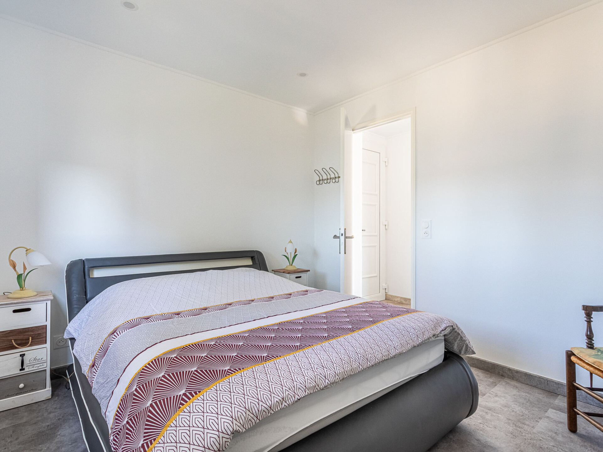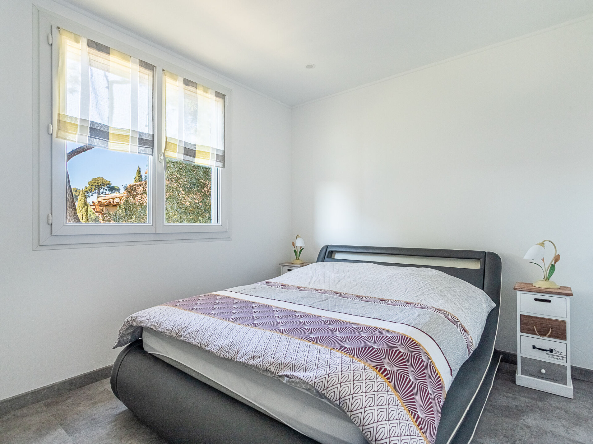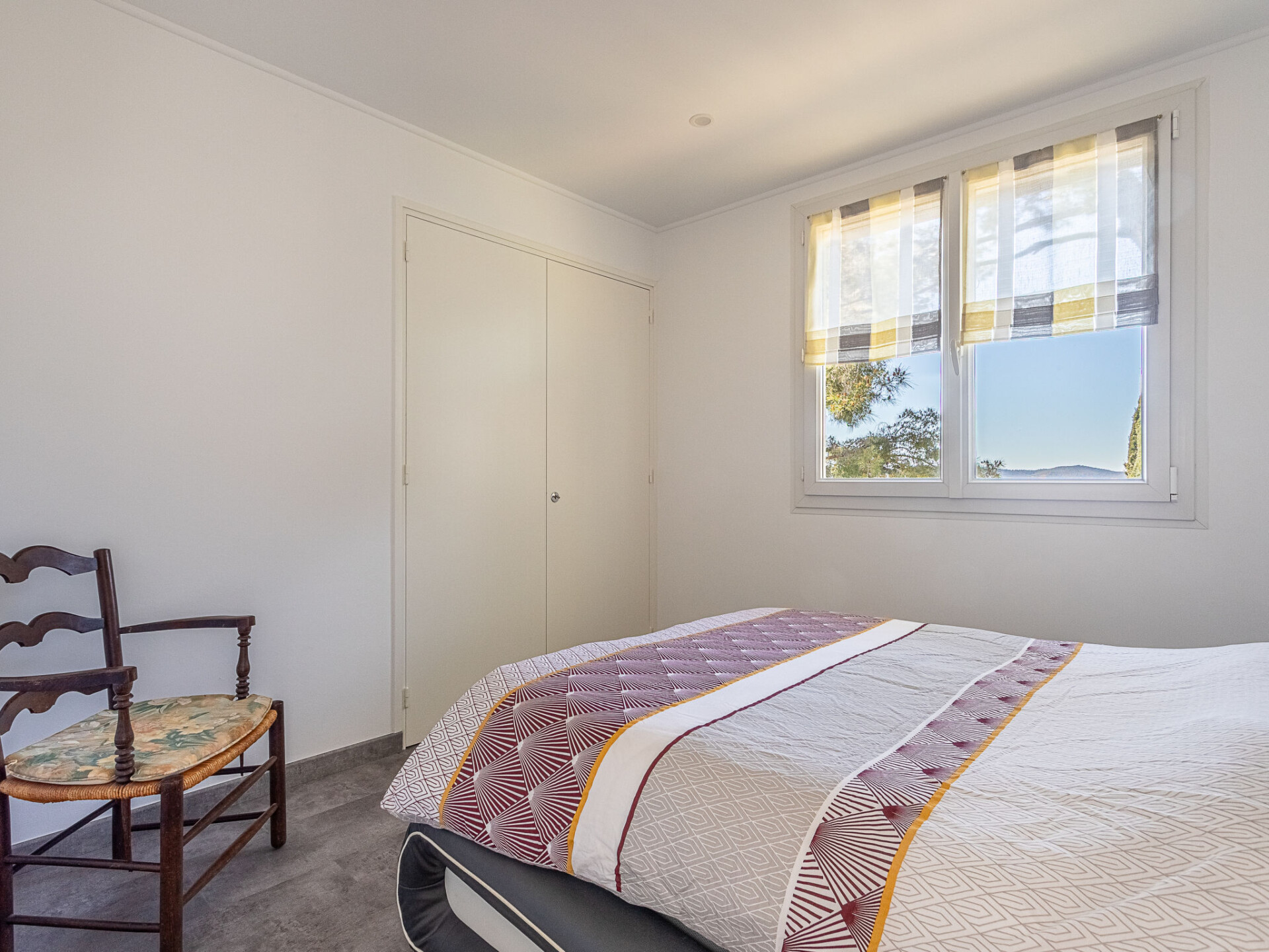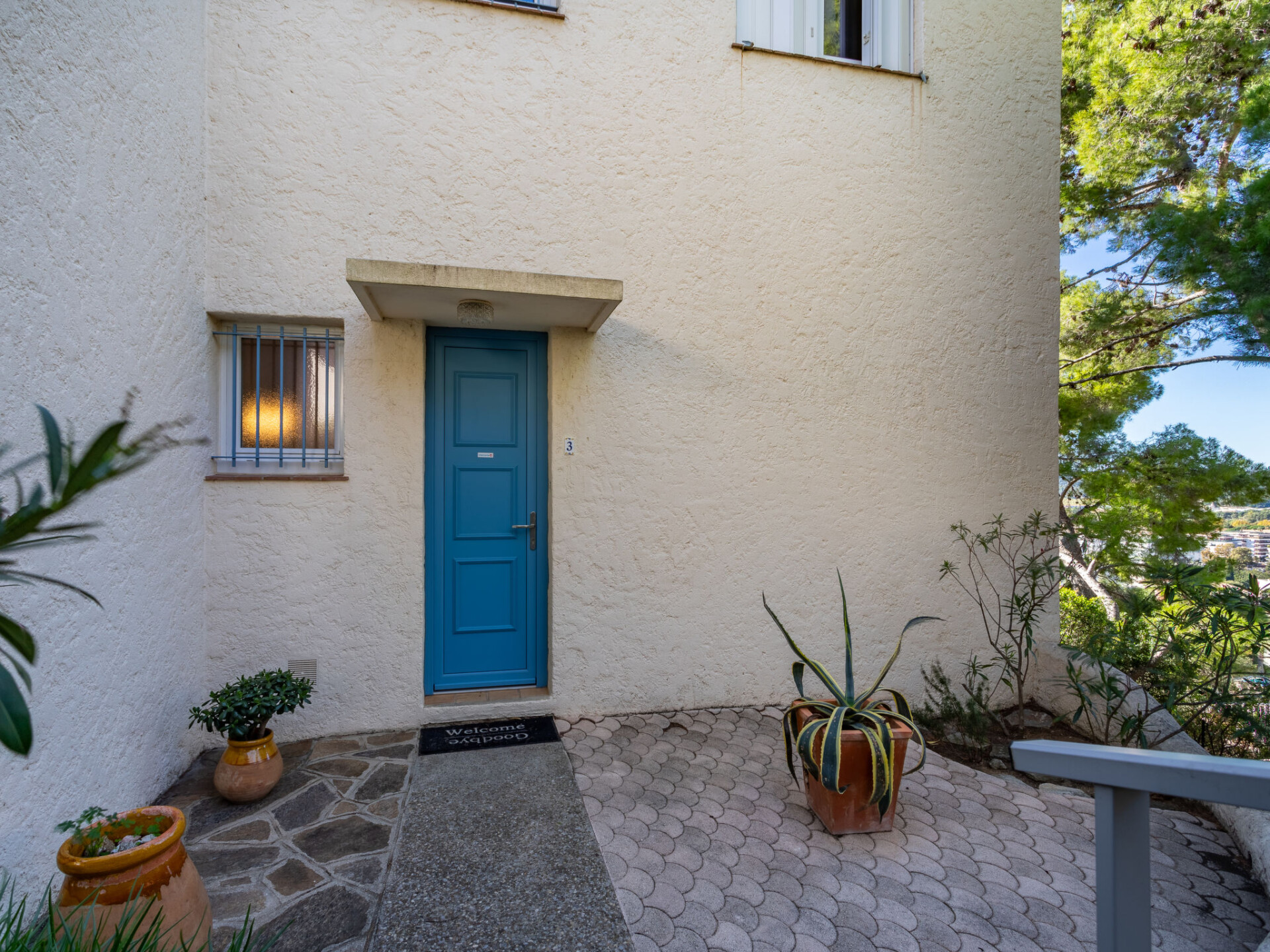 Appartement 2-kamers 37 m2, op verhoogde begane grond. Mooi ingericht: woon-/eetkamer met eettafel en TV (Flatscreen TV), air-conditioning. 1 kamer met 1 2-pers bed (140 cm, lengte 190 cm). Open keuken (oven, 4 keramische glas kookplaten, broodrooster, waterkoker, magnetron, elektrische koffiemachine). Douche/WC. Elektrische verwarming. Terras 15 m2. Terrasmeubelen. Mooi uitzicht op zee. Ter beschikking: wasmachine, strijkijzer. Internet (WiFi, extra). Parkeerplaats nr. 3. Niet rokers woning. TV alleen FR. Rookmelders, geen lift. 83070000225 UK