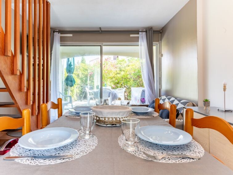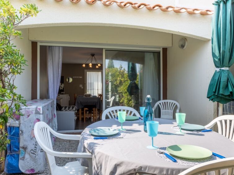 Flatgebouw "Les brigantines". In het centrum van Barcares, 150 m van zee. Parkeerplaats. Winkel, restaurant, bar 200 m, bushalte "Le Port" 210 m, treinstation "La Franqui" 20 km. Jachthaven 700 m. Attracties in de buurt: Aqualand Port Leucate 7 km, Réserve Africaine de Sigean 41 km.