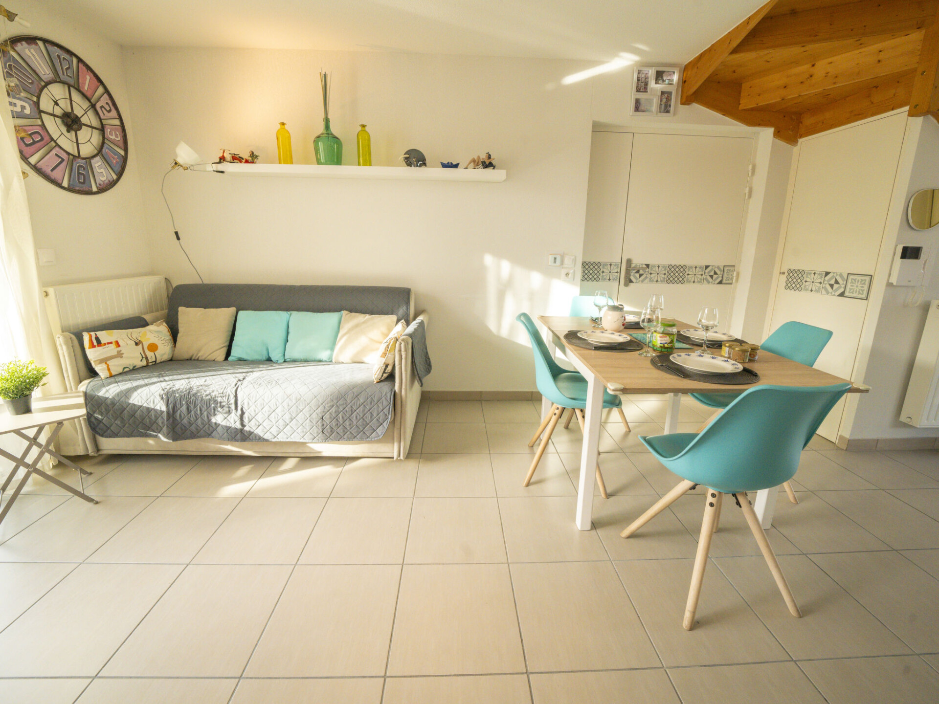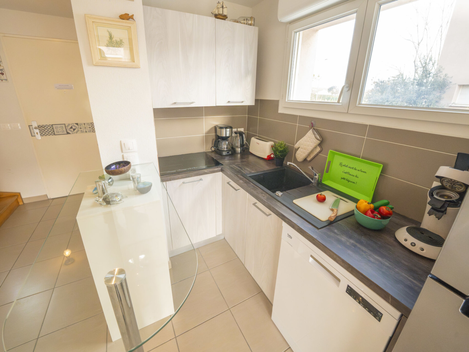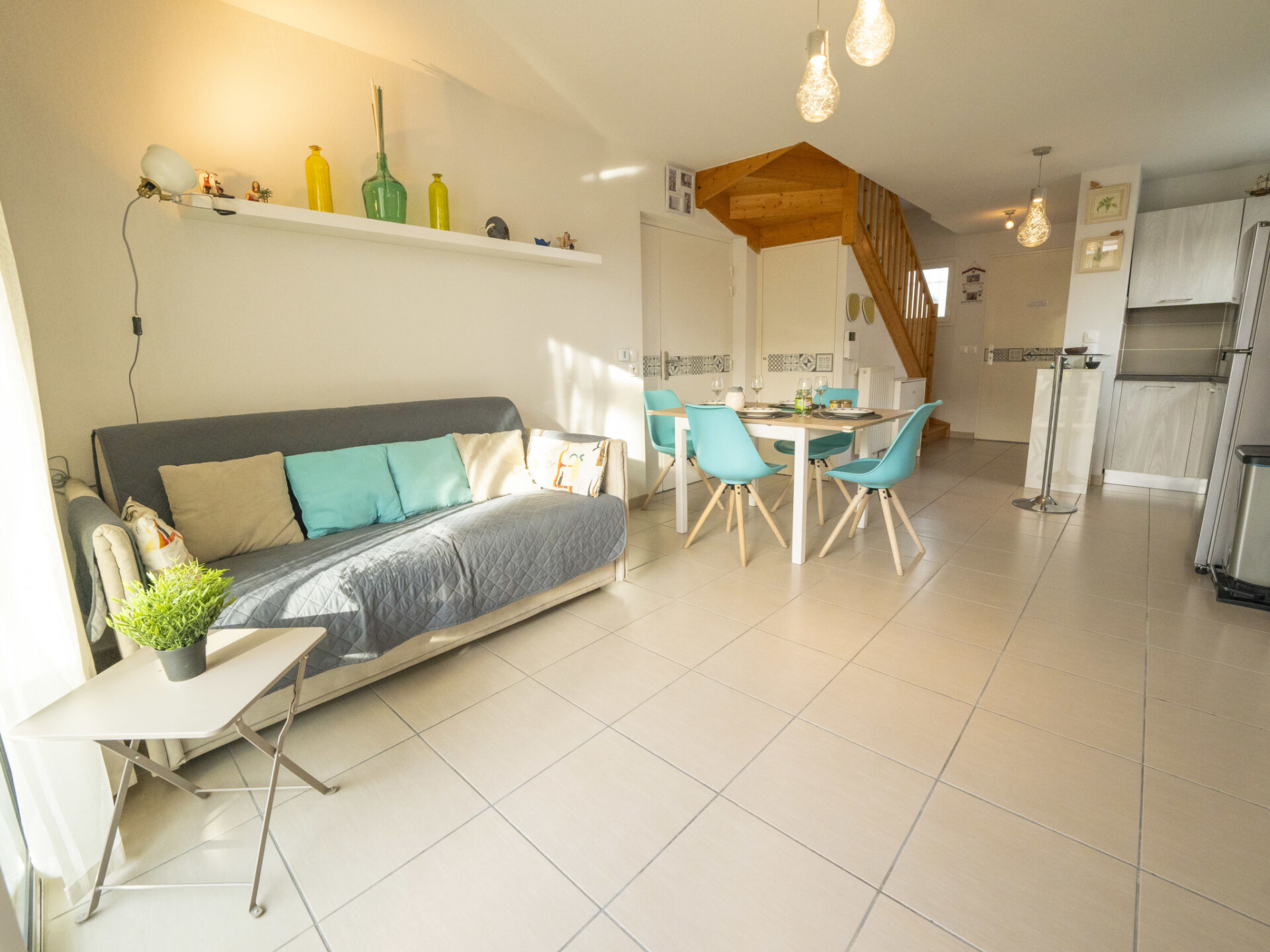"Les Brigantines", huis in een rij 3-kamers 52 m2 op 2 verdiepingen. Ruim en licht, zeer comfortabel en modern ingericht: open woonkamer met eettafel, aparte WC, TV en Flatscreen TV. Uitgang naar de tuin. Open keuken (afwasmachine, 3 inductiekookplaten, broodrooster, waterkoker, magnetron, diepvriezer, elektrische koffiemachine) met gasverwarming. Bovenverdieping: 1 kamer met 1 bed (140 cm, lengte 190 cm), air-conditioning. 1 kinderkamer met 2 bedden (90 cm, lengte 200 cm), air-conditioning. Douche/WC. Terras 12 m2, groot terras 15 m2, op het westen gelegen, kleine tuin 20 m2, op het zuiden gelegen. Terrasmeubelen. Ter beschikking: wasmachine. Internet (Internet (WiFi), gratis). Parkeerplaats. Rookvrij huis. Aanbod door een particulier volgens art. 155, IV van CGI. 30133000997YX
