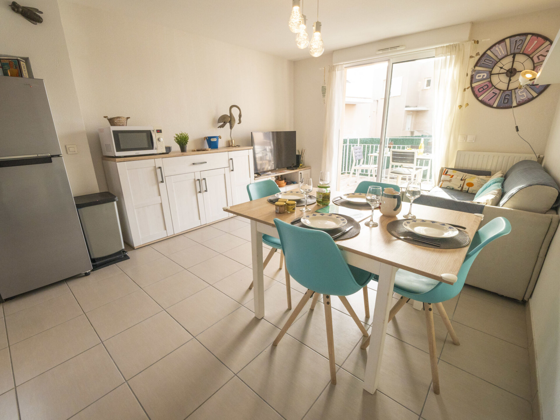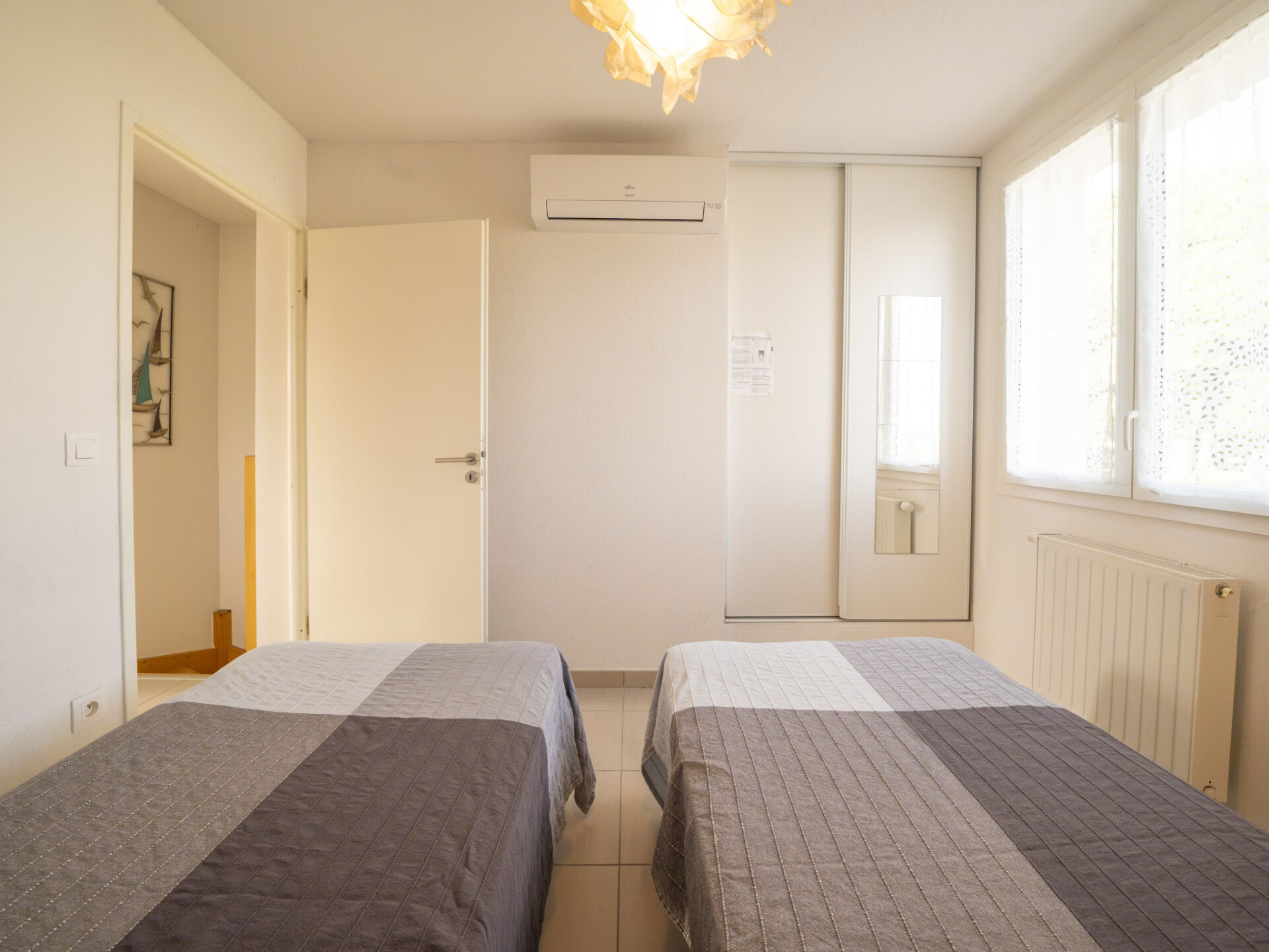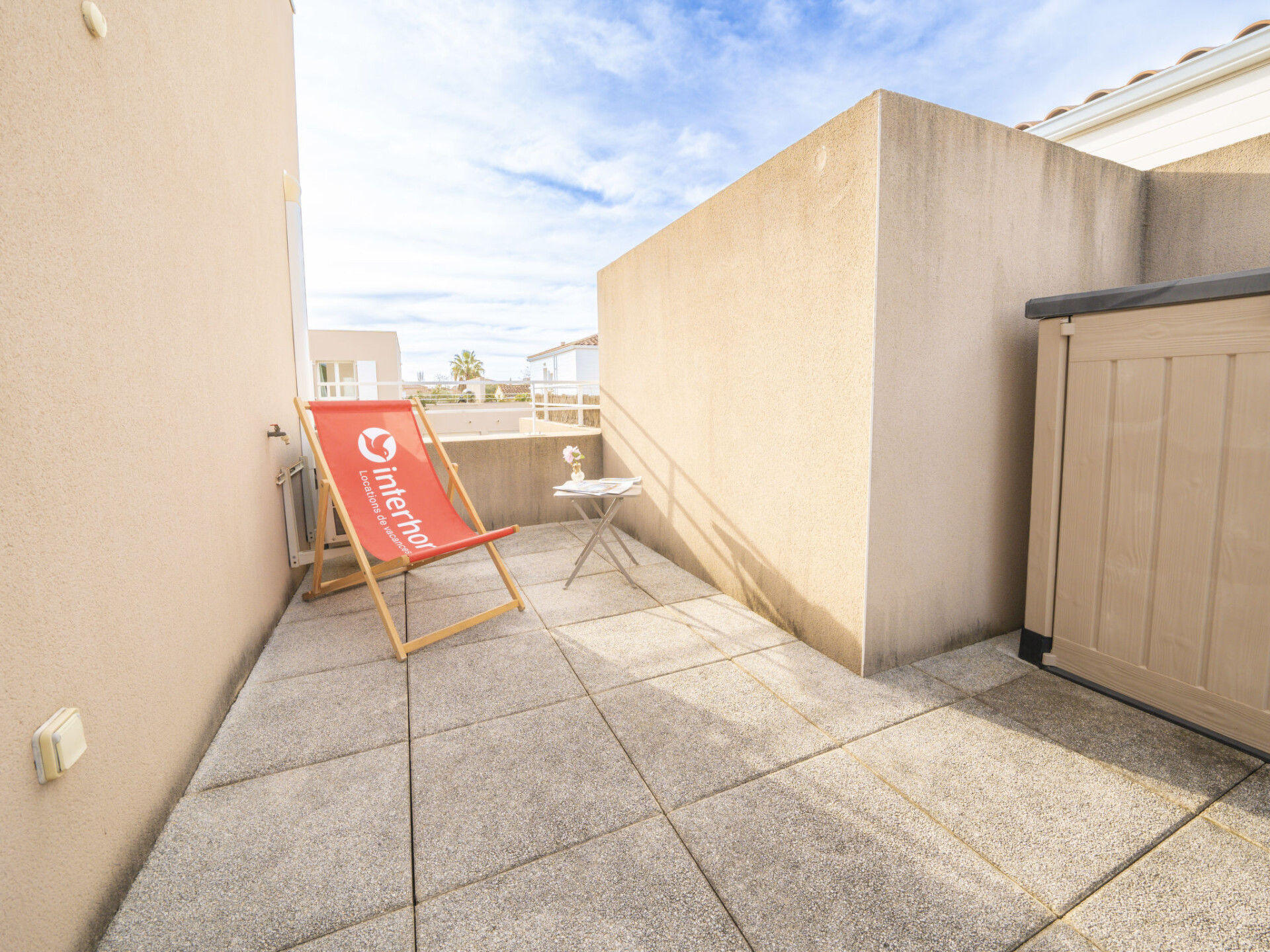 "Les Brigantines", huis in een rij 3-kamers 52 m2 op 2 verdiepingen. Ruim en licht, zeer comfortabel en modern ingericht: open woonkamer met eettafel, aparte WC, TV en Flatscreen TV. Uitgang naar de tuin. Open keuken (afwasmachine, 3 inductiekookplaten, broodrooster, waterkoker, magnetron, diepvriezer, elektrische koffiemachine) met gasverwarming. Bovenverdieping: 1 kamer met 1 bed (140 cm, lengte 190 cm), air-conditioning. 1 kinderkamer met 2 bedden (90 cm, lengte 200 cm), air-conditioning. Douche/WC. Terras 12 m2, groot terras 15 m2, op het westen gelegen, kleine tuin 20 m2, op het zuiden gelegen. Terrasmeubelen. Ter beschikking: wasmachine. Internet (Internet (WiFi), gratis). Parkeerplaats. Rookvrij huis. Aanbod door een particulier volgens art. 155, IV van CGI. 30133000997YX