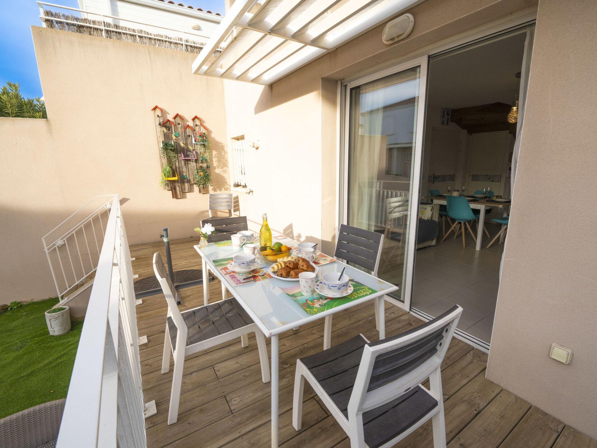 Rijtjeshuis "Les Brigantines". 200 m van zee, 150 m van het strand. Winkel, levensmiddelenwinkel 500 m, restaurant 400 m, bakkerij 500 m, centrum te voet bereikbaar in 15 minuten, bushalte "Route des Marines" 200 m, treinstation "Le Grau du Roi" 2 km, openluchtzwembad 1.5 km, thermaalbad "Les bains de Camargue" 3.1 km. Jachthaven 200 m, golfterrein (42 holes) 7.6 km, tennis 100 m. Attracties in de buurt: Aigues-Mortes 8 km, La Grande Motte 12 km, Les Saintes-Marie-de-la-Mer 37 km, Nîmes 52 km, Seaquarium 500 m, Casino Flamingo 800 m. Wandelgebied Réserve Naturelle de Camargue. Auto noodzakelijk.