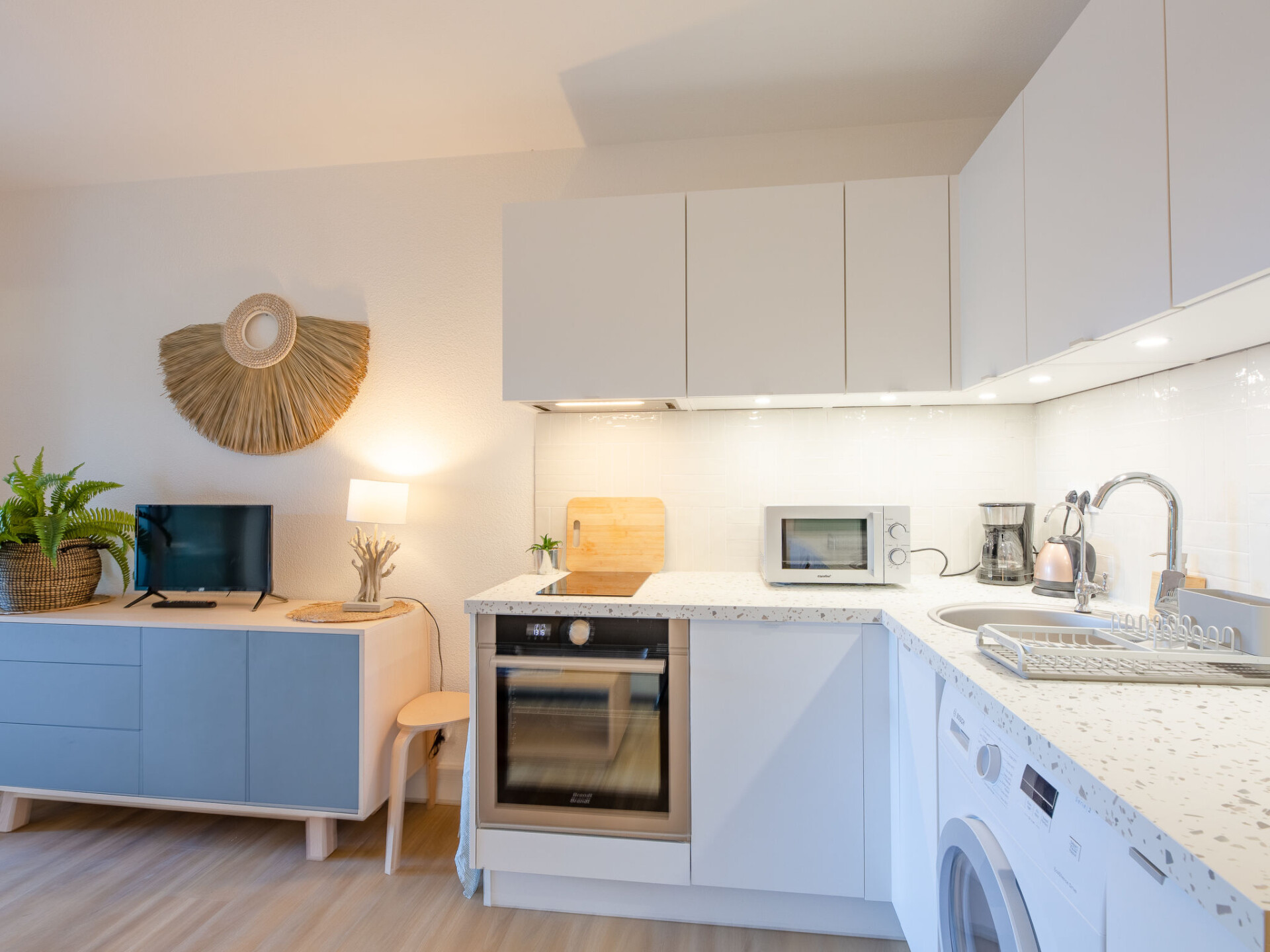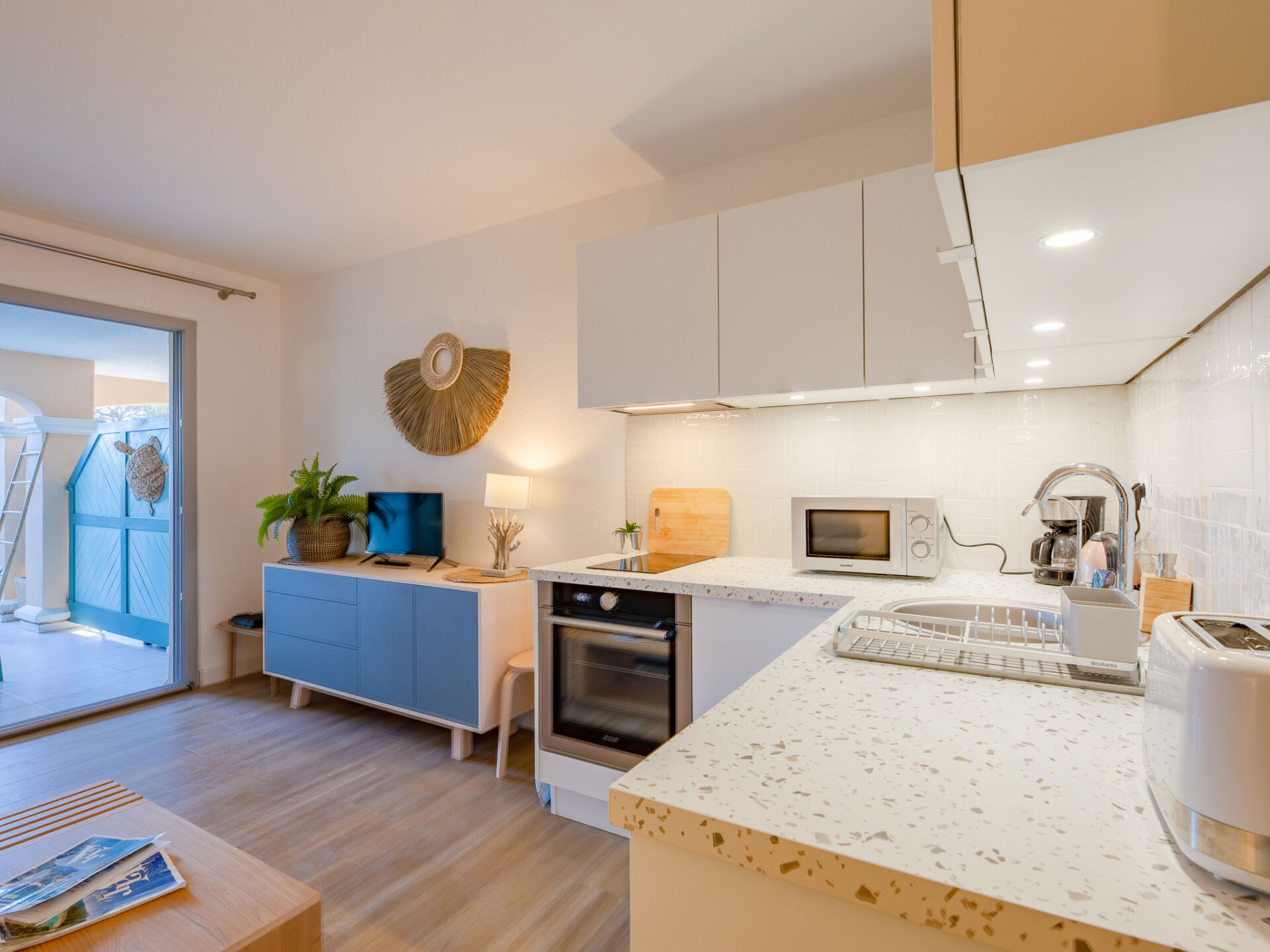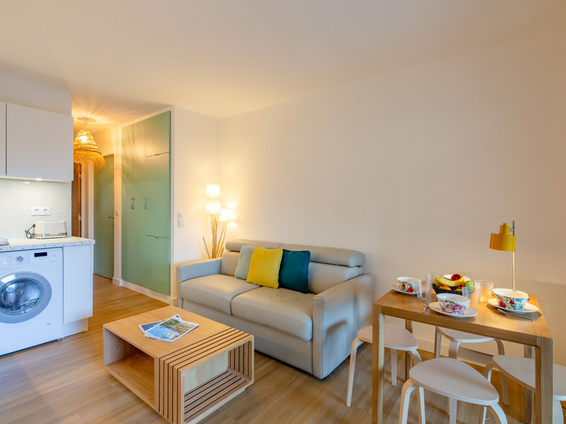 Appartement 2-kamers 31 m2, op de begane grond. Gerenoveerd in 2023: woon-/eetkamer met 1 2-pers divanbed (1 x 140 cm, lengte 190 cm), TV en Flatscreen TV. Uitgang naar het terras. 1 kamer met 1 2-pers bed (1 x 160 cm, lengte 200 cm). Open keuken (oven, afwasmachine, 2 inductiekookplaten, broodrooster, waterkoker, magnetron, diepvriezer, elektrische koffiemachine). Douche/WC. Elektrische verwarming. Terras 15 m2, op het zuiden gelegen en op het oosten gelegen. Terrasmeubelen. Uitzicht op de tuin. Ter beschikking: wasmachine, strijkijzer, haardroger. Internet (Internet (WiFi), gratis). Parkeerplaats nr. Libre service. Niet rokers woning. Rookmelders. Aanbod door een particulier volgens art. 155, IV van CGI.
