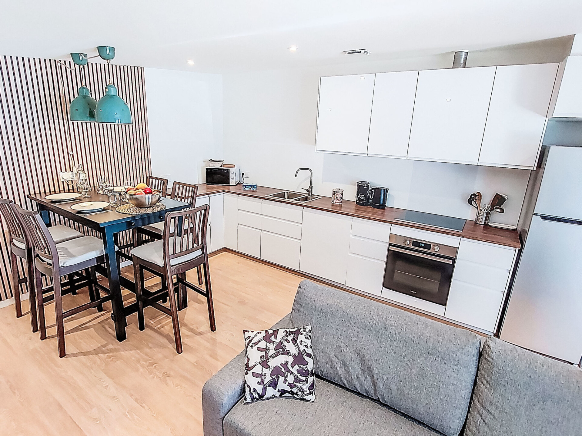 Huis 3-kamers 40 m2. Comfortabel en mooi ingericht: woon-/eetkamer met TV (Flatscreen TV). Uitgang naar het balkon, pergola. 1 kamer met 1 2-pers bed (1 x 140 cm, lengte 190 cm). 1 kamer met 1 2-pers bed (1 x 140 cm, lengte 190 cm). Open keuken (oven, 3 inductiekookplaten, broodrooster, waterkoker, magnetron, elektrische koffiemachine). Badkamer, aparte WC. Elektrische verwarming. Klein terras. Terrasmeubelen, barbecue. Ter beschikking: wasmachine, haardroger. Internet (WiFi, gratis). Parkeerplaats (omheind) bij het huis. Rookvrij huis. Rookmelders. Aanbod door een particulier volgens art. 155, IV van CGI.
