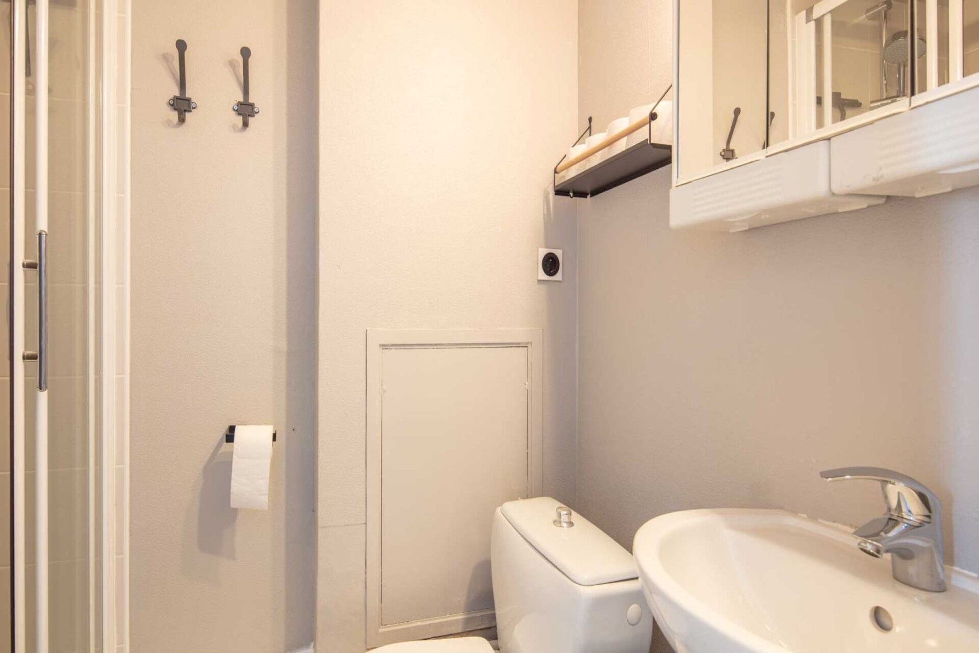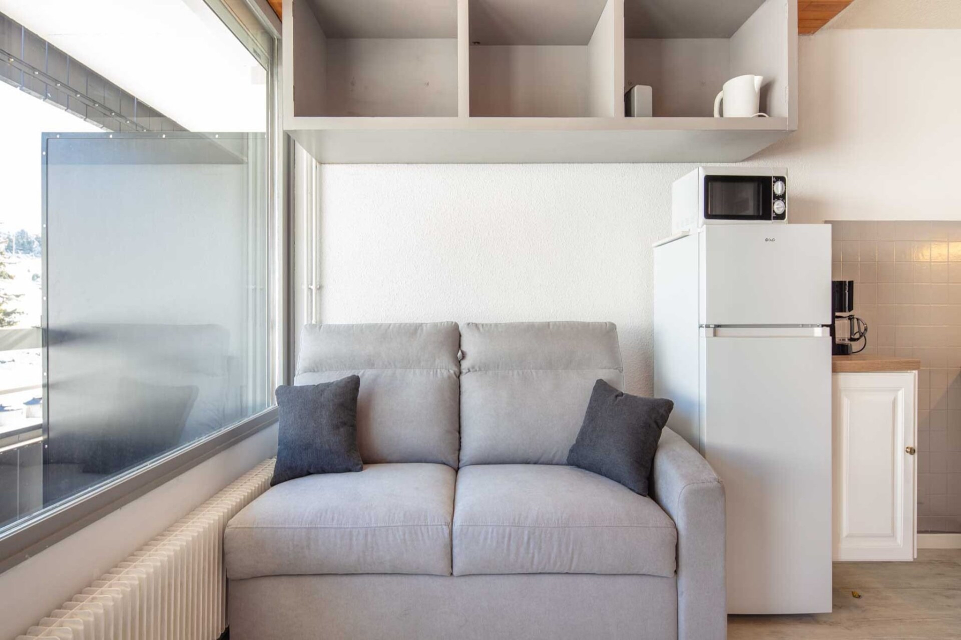 De open elektrische keuken is volledig uitgerust met een koelkast, magnetron, servies, bestek en een koffiezetapparaat, en biedt alles wat u nodig heeft om maaltijden te bereiden tijdens uw verblijf. Of je nu een snel ontbijtje plant voordat je de piste op gaat of een gezellig diner erna, de keuken is er voor je. Met zijn toplocatie, moderne voorzieningen en gezellige sfeer biedt deze studio een fantastische uitvalsbasis voor je bergvakantie.