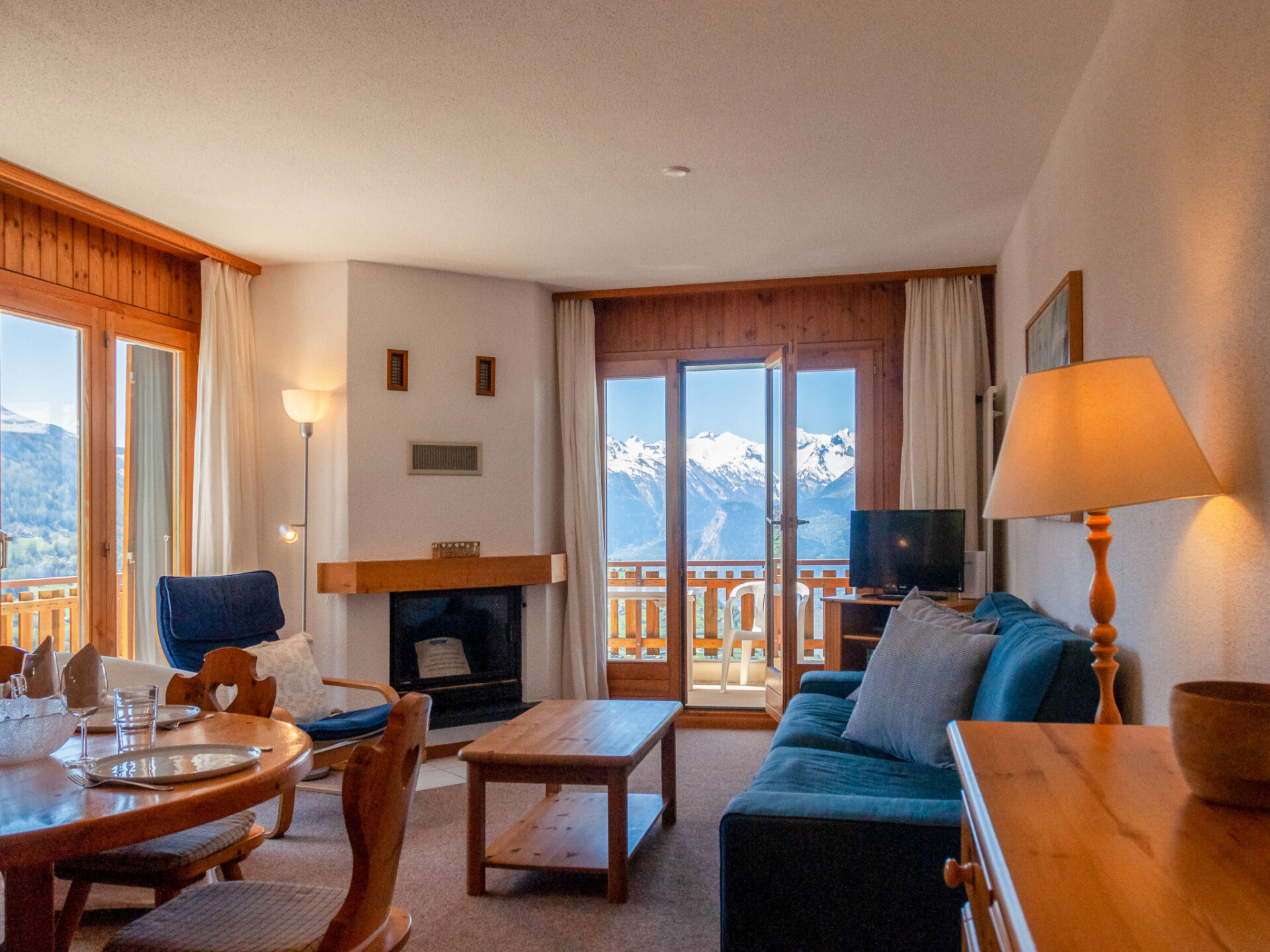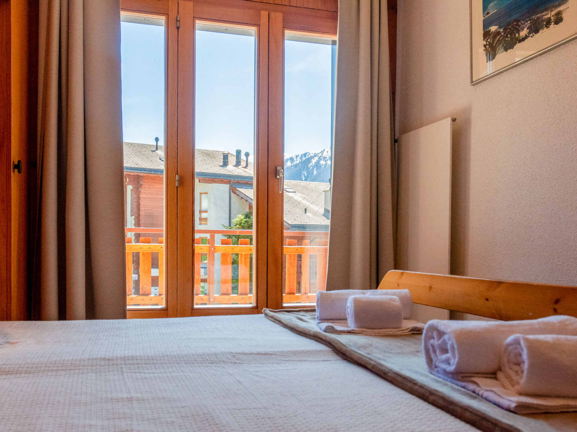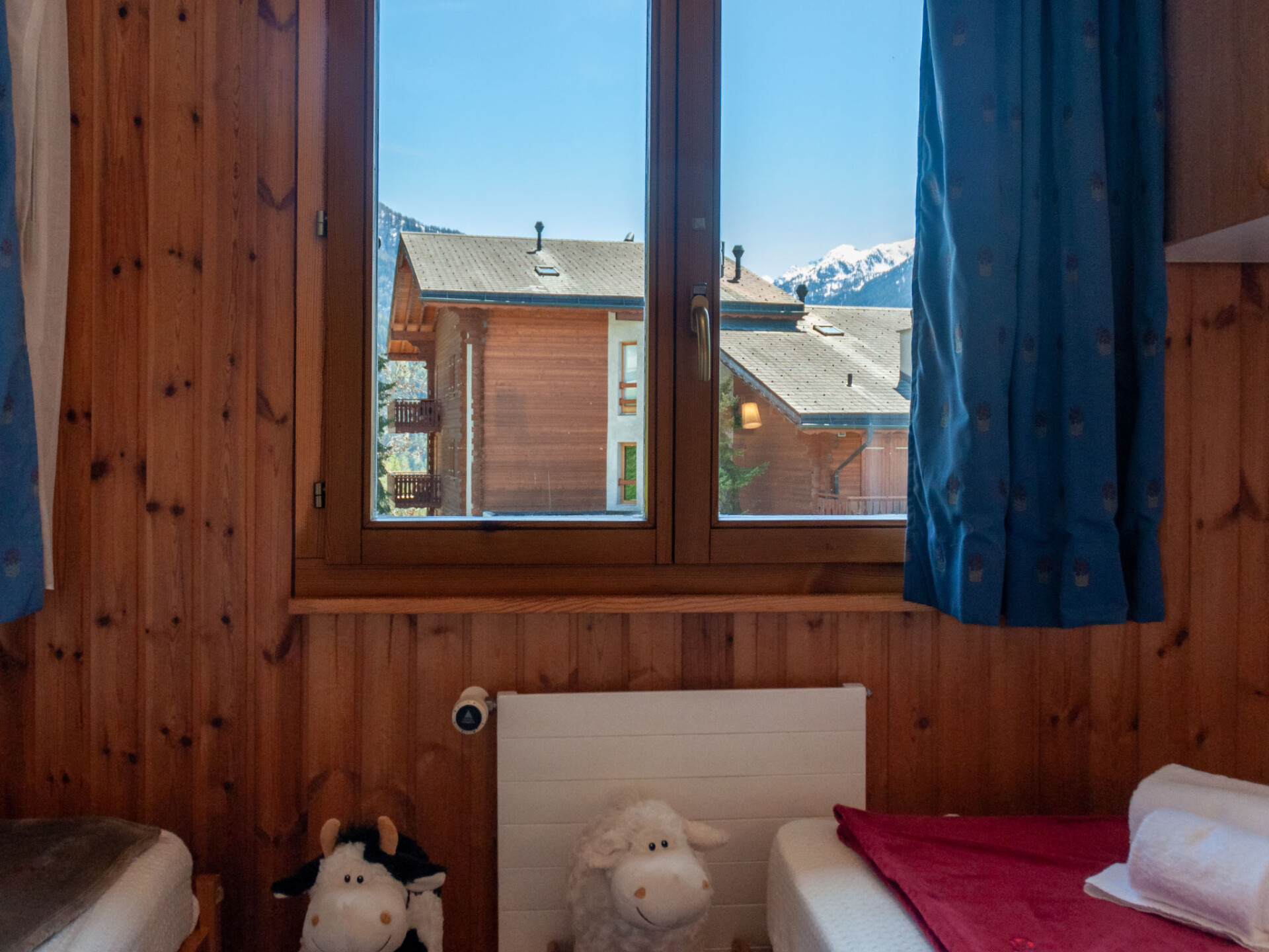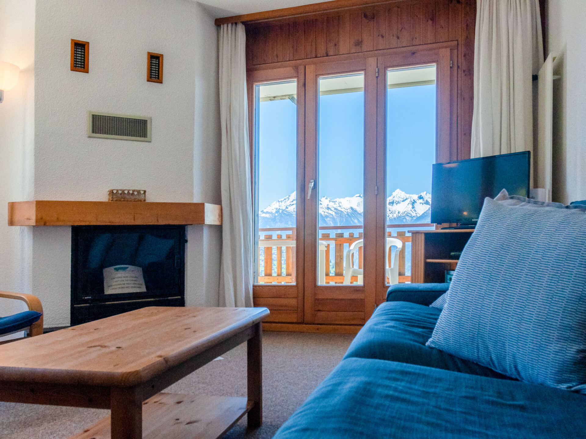 Appartement 4-kamers 80 m2. Comfortabel en mooi ingericht: woon-/eetkamer met open haard (alleen decoratie), Kabel-TV. Uitgang naar het balkon. 2 kamers, elke kamer heeft 1 2-pers bed (2 x 90 cm, lengte 200 cm). 1 kamer met 2 bedden (90 cm, lengte 200 cm), bad/WC. Open keuken (oven, afwasmachine, 4 keramische glas kookplaten, broodrooster, waterkoker, magnetron, elektrische koffiemachine, raclette oven, fondue Set (kaas)). Douche/WC. 2 balkons, op het noordwesten gelegen en op het zuiden gelegen. Mooi panoramazicht op de bergen en het dal. Ter beschikking: Internet (Internet (WiFi), gratis). Niet rokers woning, geen parkeerplaats.