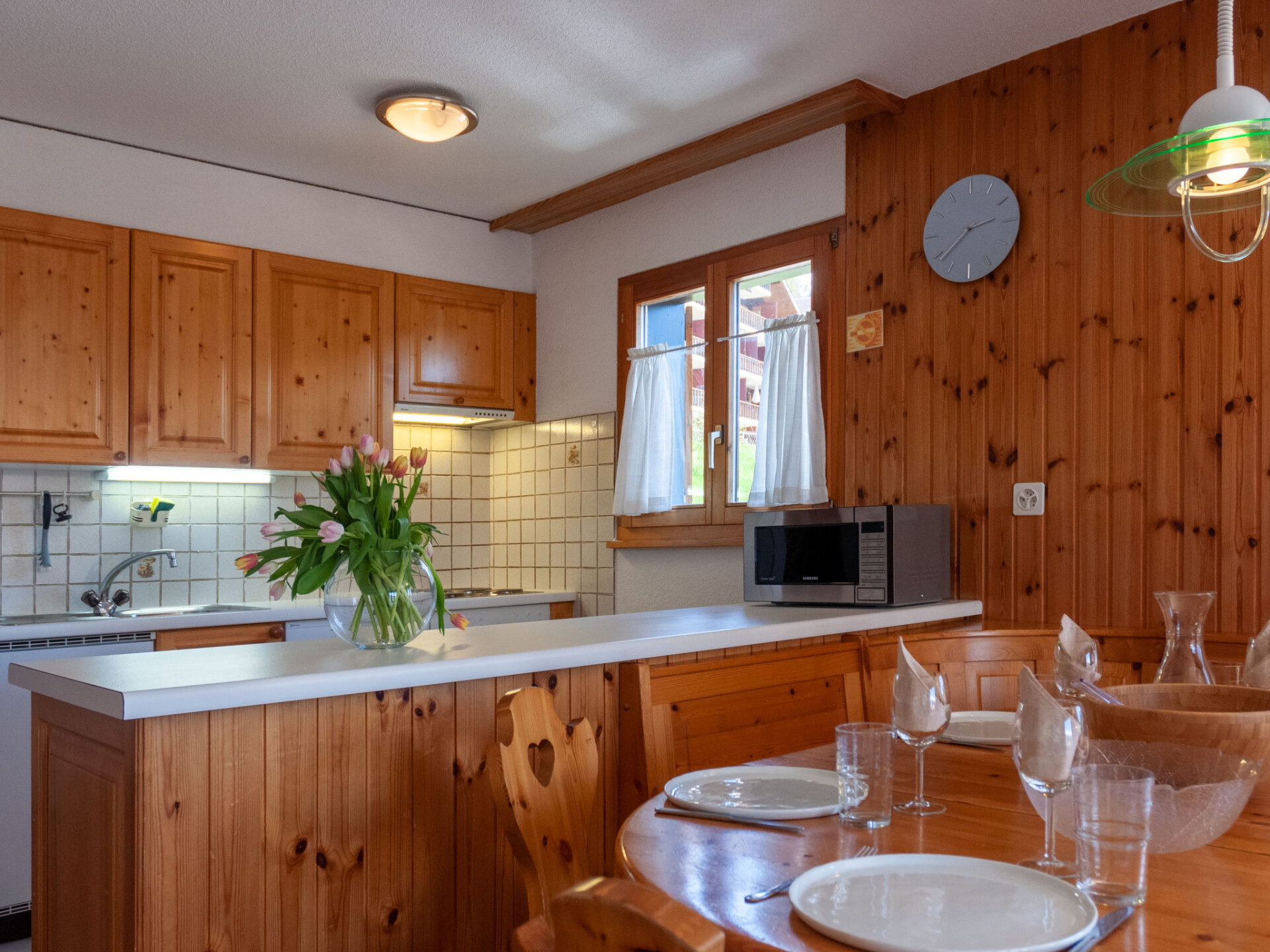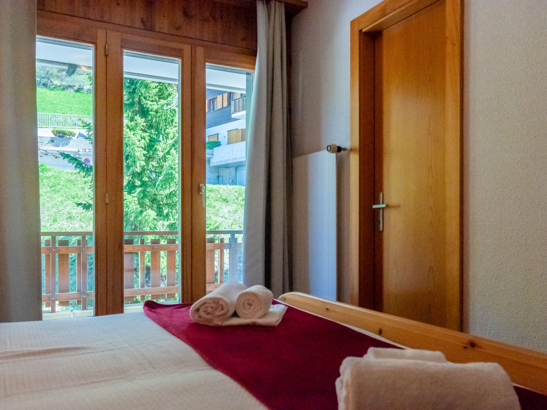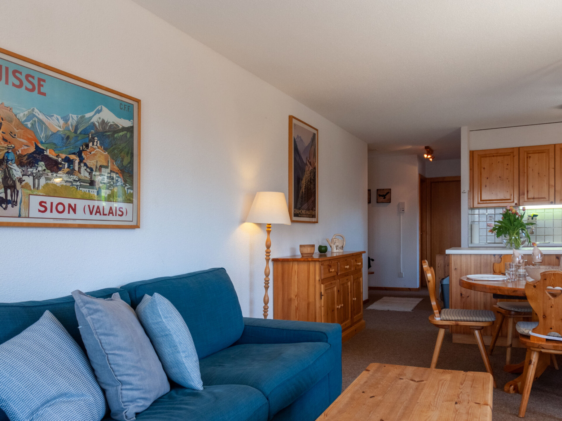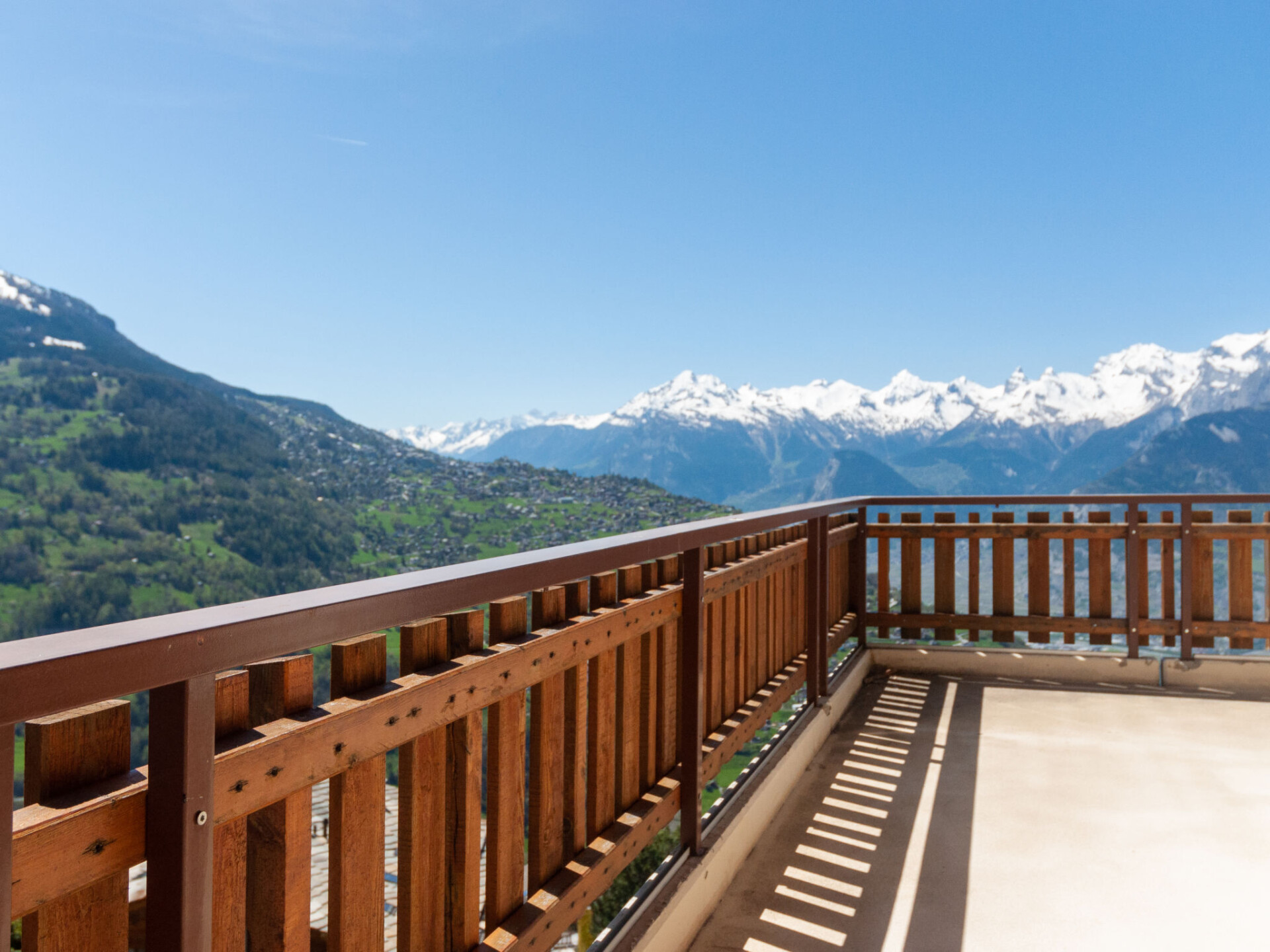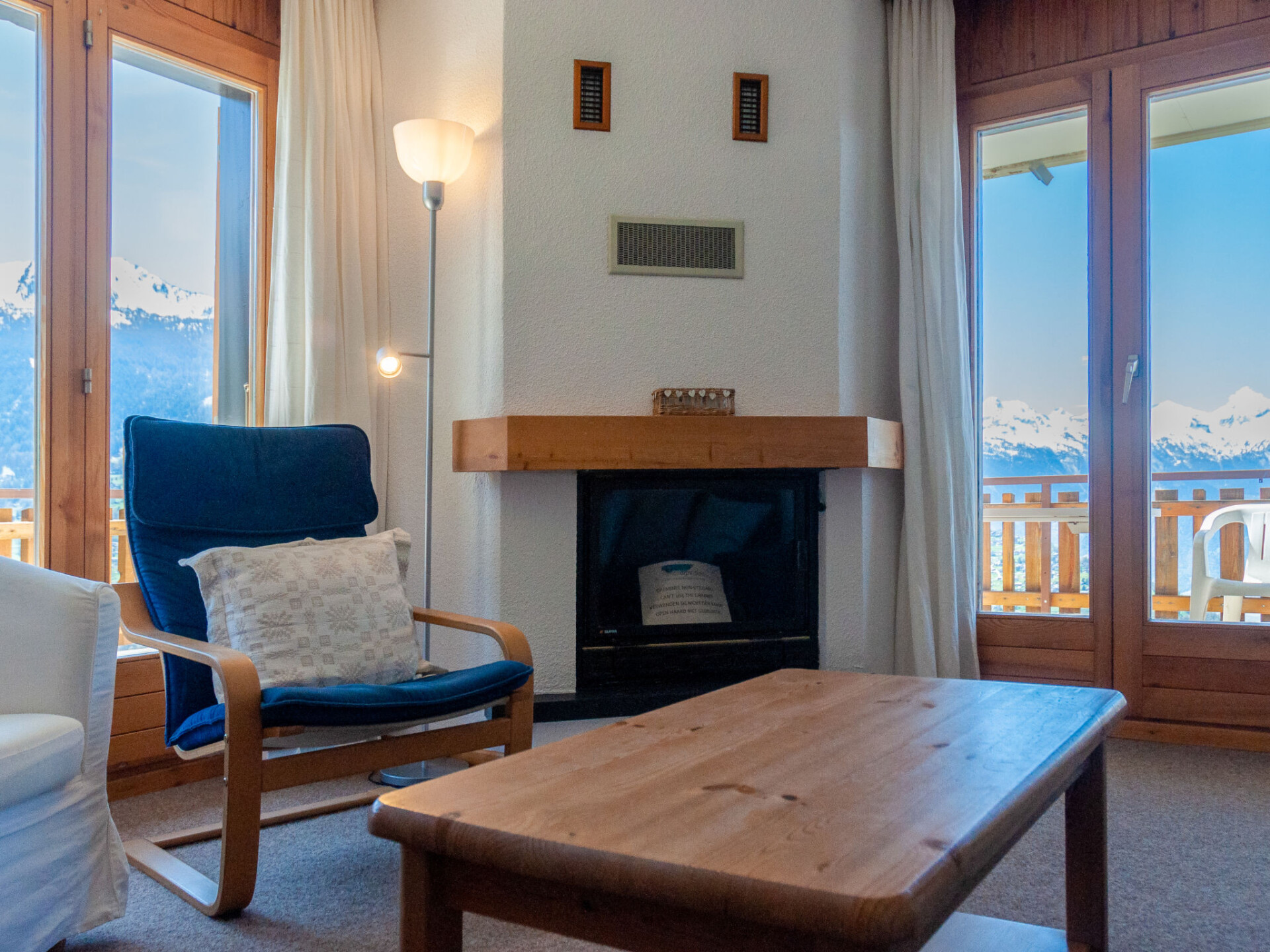 Appartement 4-kamers 80 m2. Comfortabel en mooi ingericht: woon-/eetkamer met open haard (alleen decoratie), Kabel-TV. Uitgang naar het balkon. 2 kamers, elke kamer heeft 1 2-pers bed (2 x 90 cm, lengte 200 cm). 1 kamer met 2 bedden (90 cm, lengte 200 cm), bad/WC. Open keuken (oven, afwasmachine, 4 keramische glas kookplaten, broodrooster, waterkoker, magnetron, elektrische koffiemachine, raclette oven, fondue Set (kaas)). Douche/WC. 2 balkons, op het noordwesten gelegen en op het zuiden gelegen. Mooi panoramazicht op de bergen en het dal. Ter beschikking: Internet (Internet (WiFi), gratis). Niet rokers woning, geen parkeerplaats.