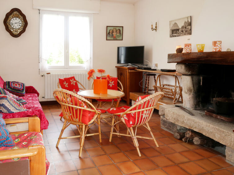 "Les Genêts", huis 6-kamers 145 m2 op 2 verdiepingen. Zeer eenvoudig en rustiek ingericht: woon-/eetkamer met open haard, eettafel en Sat-TV. Uitgang naar het terras. 1 kamer met 2 bedden (90 cm, lengte 190 cm). Keuken (oven, afwasmachine, 4 kookpitten (vlammen), broodrooster, waterkoker, magnetron, elektrische koffiemachine) met kleine eettafel. Douche, aparte WC. Bovenverdieping: 1 kamer met afgeschuinde daken met 1 bed (110 cm, lengte 190 cm). 2 kamers met afgeschuinde daken, elke kamer heeft 2 bedden (90 cm, lengte 190 cm). 1 kamer met afgeschuinde daken met 1 2-pers bed (140 cm, lengte 190 cm). Badkamer, aparte WC. Olie-verwarming. Terras. Terrasmeubelen, barbecue (verrijdbaar), ligstoelen (2), bergruimte. Ter beschikking: wasmachine. Internet (Internet (WiFi), gratis). Rookvrij huis. 1 klein huisdier/hond toegestaan. Rookmelders. Als er minder dan het maximale aantal gasten in de accommodatie verblijft, zijn niet alle slaapkamers beschikbaar voor gebruik. Bedindeling is flexibel. Er zijn meer slaapmogelijkheden beschikbaar dan het maximaal toegestane aantal personen dat echter niet mag worden overschreden.