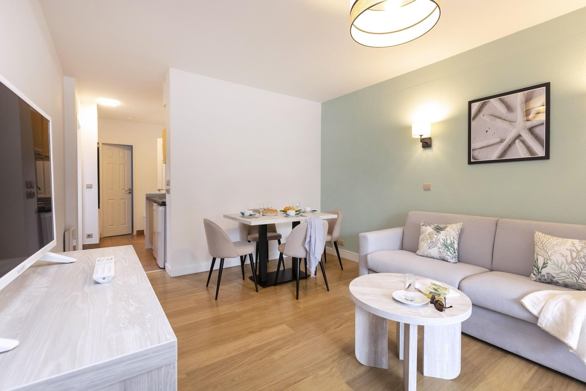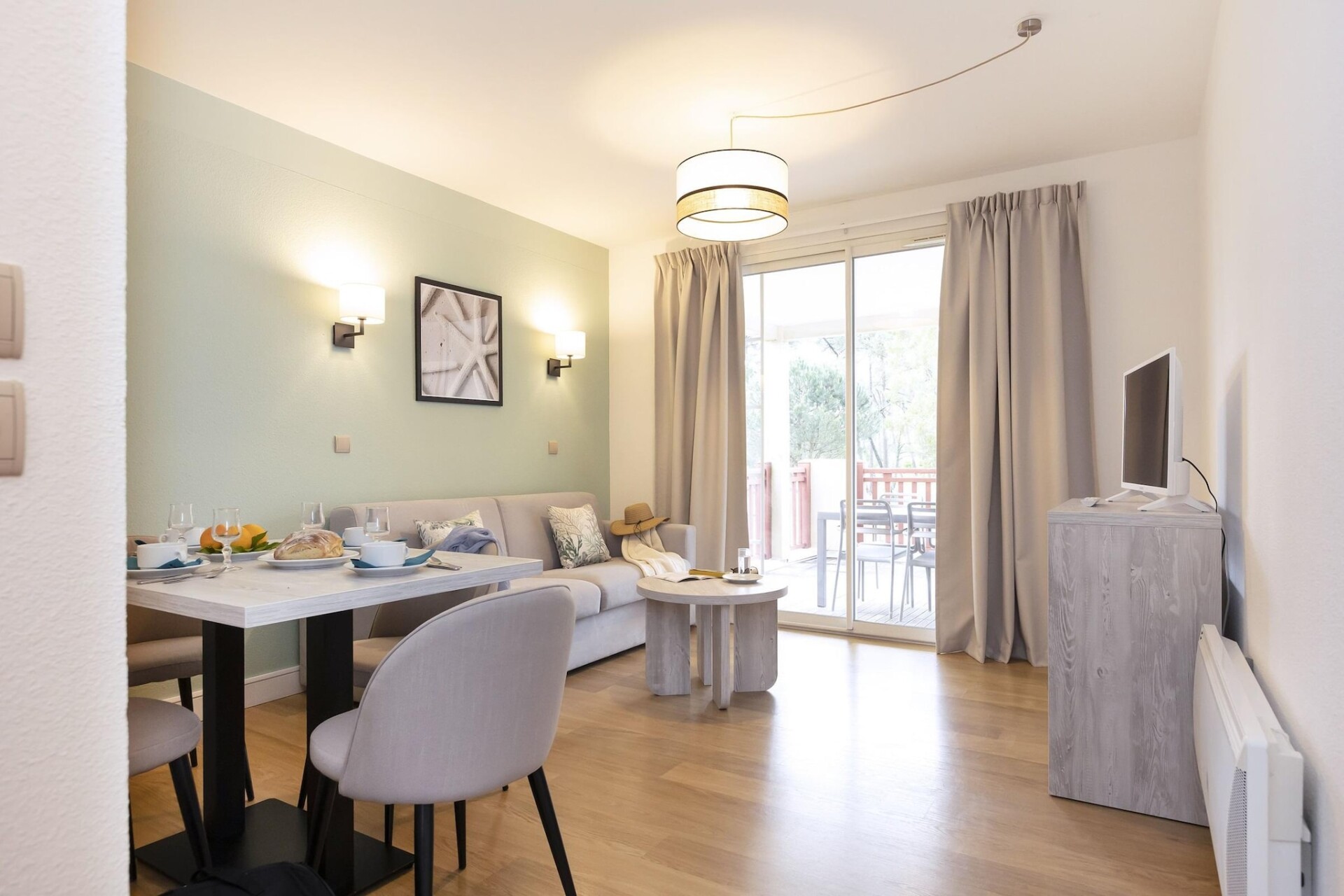 Welkom in uw stijlvolle appartement in Les Villas des Greens du Bassin, ontworpen in de traditionele Landaise-architectuur met moderne gemakken. Dit uitnodigende vakantiehuis biedt plaats aan maximaal zes gasten, met een tweepersoonsbed in de hoofdslaapkamer, een charmant stapelbed in de tweede slaapkamer en een tweepersoonsslaapbank in de zonnige woonkamer. Geniet van maaltijden op uw eigen terras of balkon, bereid verse visgerechten in de goed uitgeruste kitchenette en kom tot rust in de gezellige lounge na een dag in de zon. Een gedeeld zwembad (geopend van april tot september) en een tuin maken uw serene ontsnapping compleet.