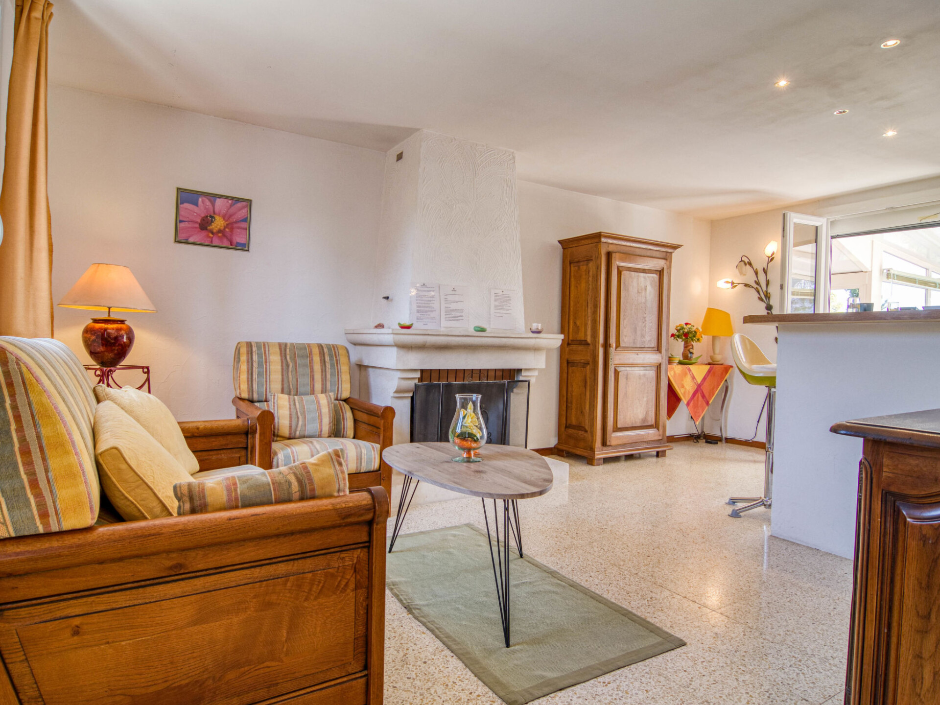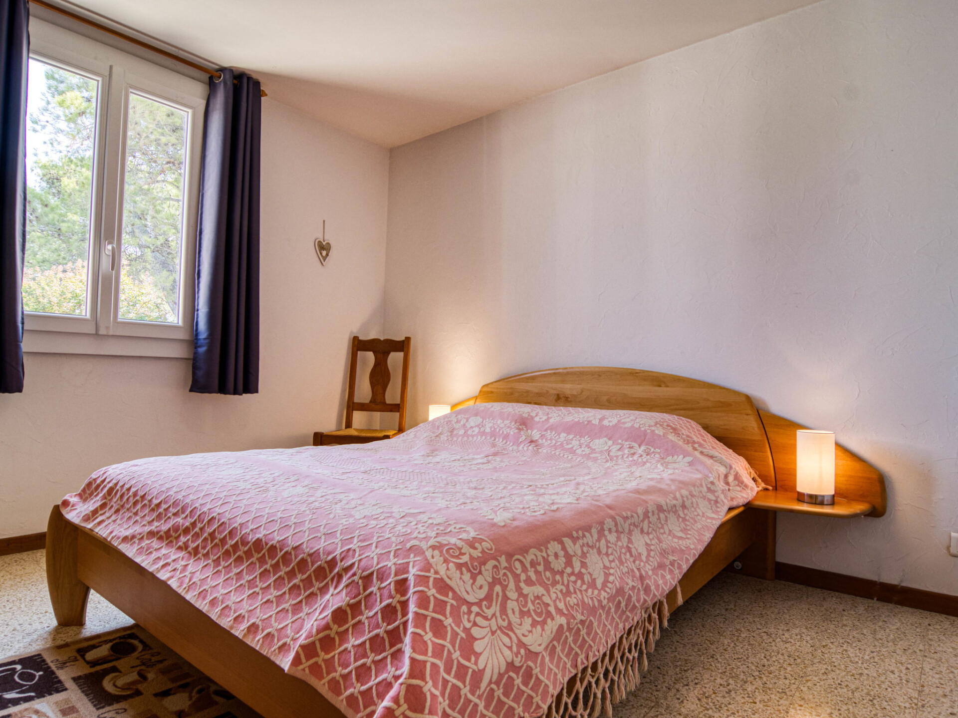 Huis in een rij 3-kamers 100 m2. Woon-/eetkamer. Uitgang naar het terras. 1 kamer met 1 2-pers bed (140 cm, lengte 190 cm). 1 kamer met 1 x 2 stapelbedden (80 cm, lengte 190 cm). Kookhoek (4 inductiekookplaten, broodrooster, waterkoker, diepvriezer, elektrische koffiemachine, pads voor de koffiemachine (Dolce Gusto) extra). Douche/WC. Elektrische verwarming. Terras, op het oosten gelegen. Uitzicht op het landschap. Ter beschikking: wasmachine. Internet (Internet (WiFi), gratis). Rookvrij huis. Rookmelders.