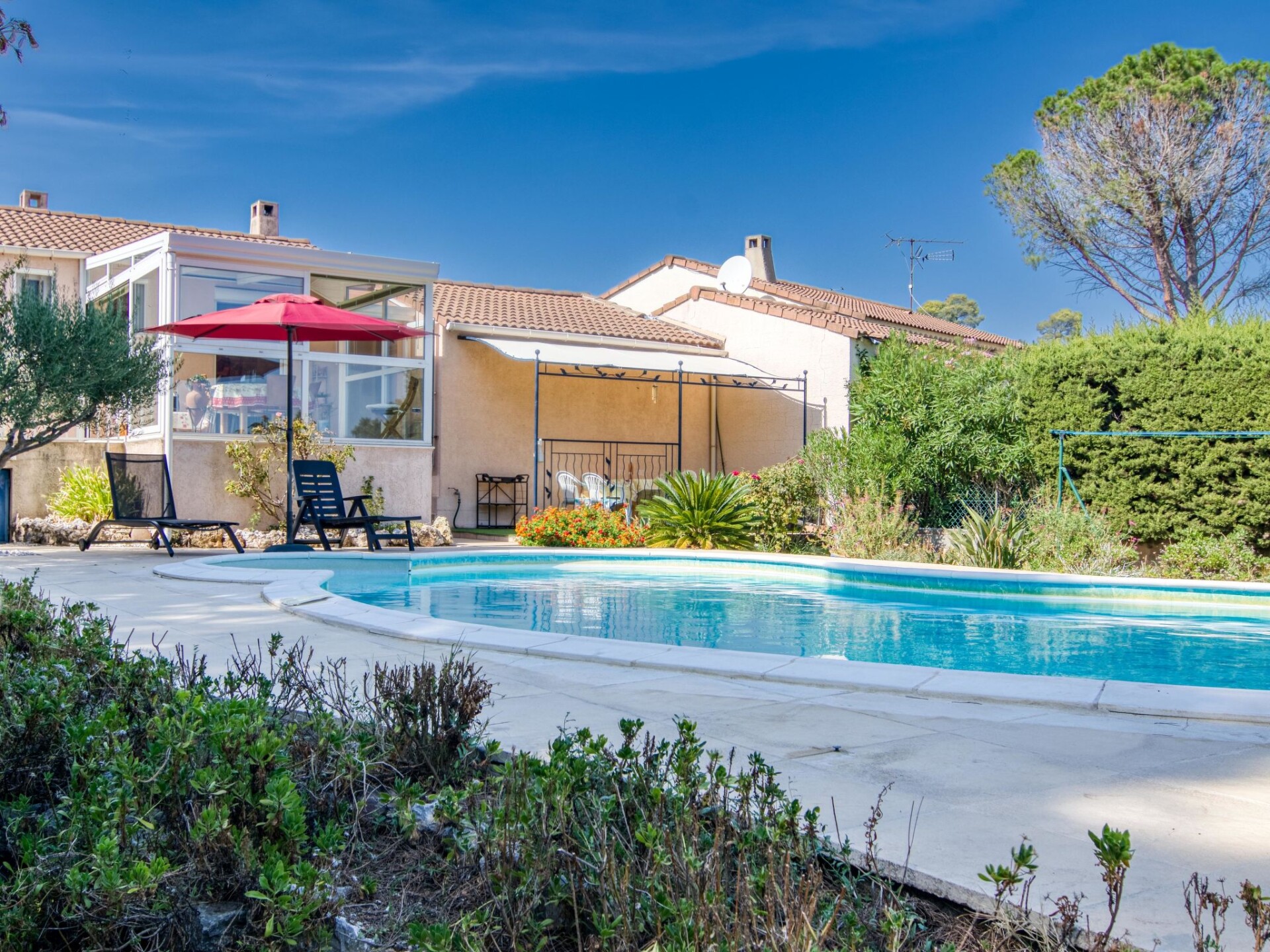 Rijtjeshuis "Les Hauts de Palayson". In de wijk Les Hauts de Palayson, aan de rand van de plaats, 2 km van het centrum van le Muy, rustige ligging, 17 km van zee, 17 km van het strand. Voor alleengebruik: terrein 500 m2, tuin, openluchtzwembad (10 x 5 m, 150 - 170 cm diepte, seizoensgebonden beschikbaarheid: 15.Mei. - 30.Sep.) met alarminstallatie. Buitendouche, parkeerplaats bij het huis. Winkel 1 km, supermarkt 1.5 km, bakkerij 1.5 km, bushalte 800 m, treinstation "Les Arcs Draguignan" 1100 km, zandstrand 17 km. Golfterrein (18 holes) 6.5 km. Attracties in de buurt: Navette Bateaux Verts St-Tropez 30min 24 km. Bekende meren kunnen gemakkelijk worden bereikt: Lac de Sainte Croix, Lac de Saint Cassien. Wandelgebied Gorges du Verdon, Les Adrets de l'Esterel, Gorges du Blavet. Auto noodzakelijk.