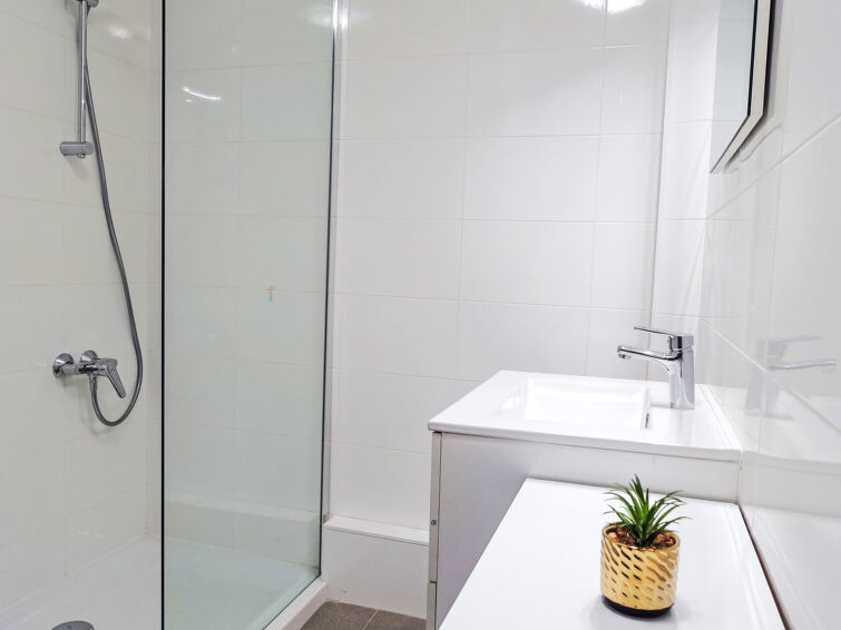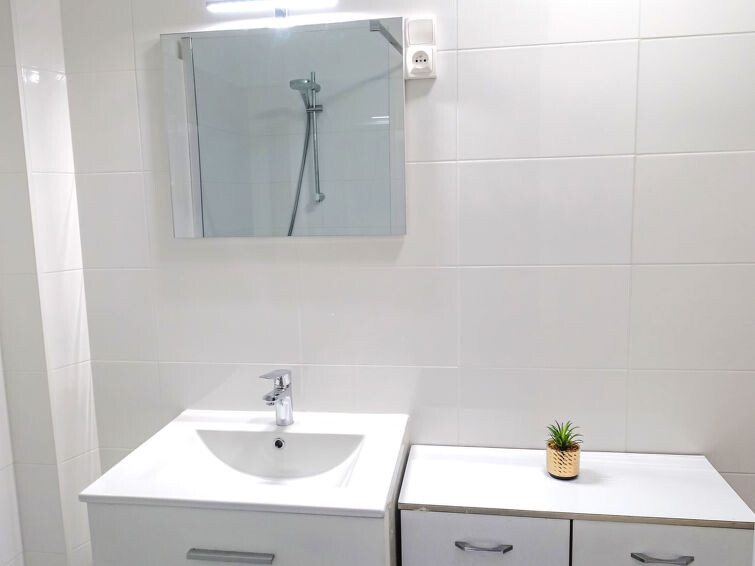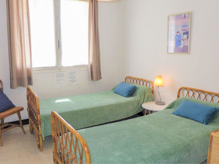 Appartement 4-kamers 90 m2, op de begane grond. Woon-/eetkamer. Uitgang naar het terras. 1 kamer met 2 bedden (80 cm). 1 kamer met 1 2-pers bed (140 cm). 1 kamer met 1 2-pers bed (140 cm), wastafel. Kleine keuken (4-pits kookplaat, oven, afwasmachine, magnetron, diepvriezer). Uitgang naar het terras. Douche, aparte WC. Elektrische verwarming. Groot terras 25 m2 gedeeltelijk overdekt, op het zuidwesten gelegen. Terrasmeubelen. Beperkt uitzicht op zee. Ter beschikking: wasmachine. Internet (Internet (WiFi), extra). Maximaal 1 huisdier/hond toegestaan. Rookmelders.