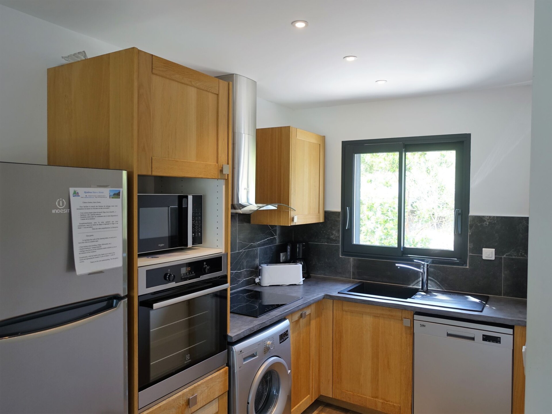"Les Jardins d'Ève, F3", maisonette 3-kamers 75 m2. Het objekt is geschikt voor 4 volwassenen + 2 kinderen. Comfortabel en modern ingericht: woon-/eetkamer met 1 2-pers divanbed (160 cm, lengte 190 cm), TV (Flatscreen TV). Uitgang naar het terras, naar het zwembad. Open keuken (oven, afwasmachine, 4 inductiekookplaten, broodrooster, waterkoker, magnetron, elektrische koffiemachine). Aparte WC. Elektrische verwarming. Bovenverdieping: 1 kamer met 1 2-pers bed (160 cm, lengte 200 cm). Uitgang naar het balkon. 1 kamer met 2 bedden (90 cm, lengte 200 cm). Uitgang naar het balkon. Bad/WC, douche/WC. Elektrische verwarming. Terras. Terrasmeubelen, ligstoelen (4). Mooi uitzicht op zee en het bos. Ter beschikking: wasmachine, kluis, strijkijzer, haardroger. Internet (WiFi, extra). Parkeerplaats bij het huis. Maximaal 1 huisdier/hond toegestaan. Rookmelders. Aanbod door een commerciële eigenaar volgens art. 155, IV, CGI