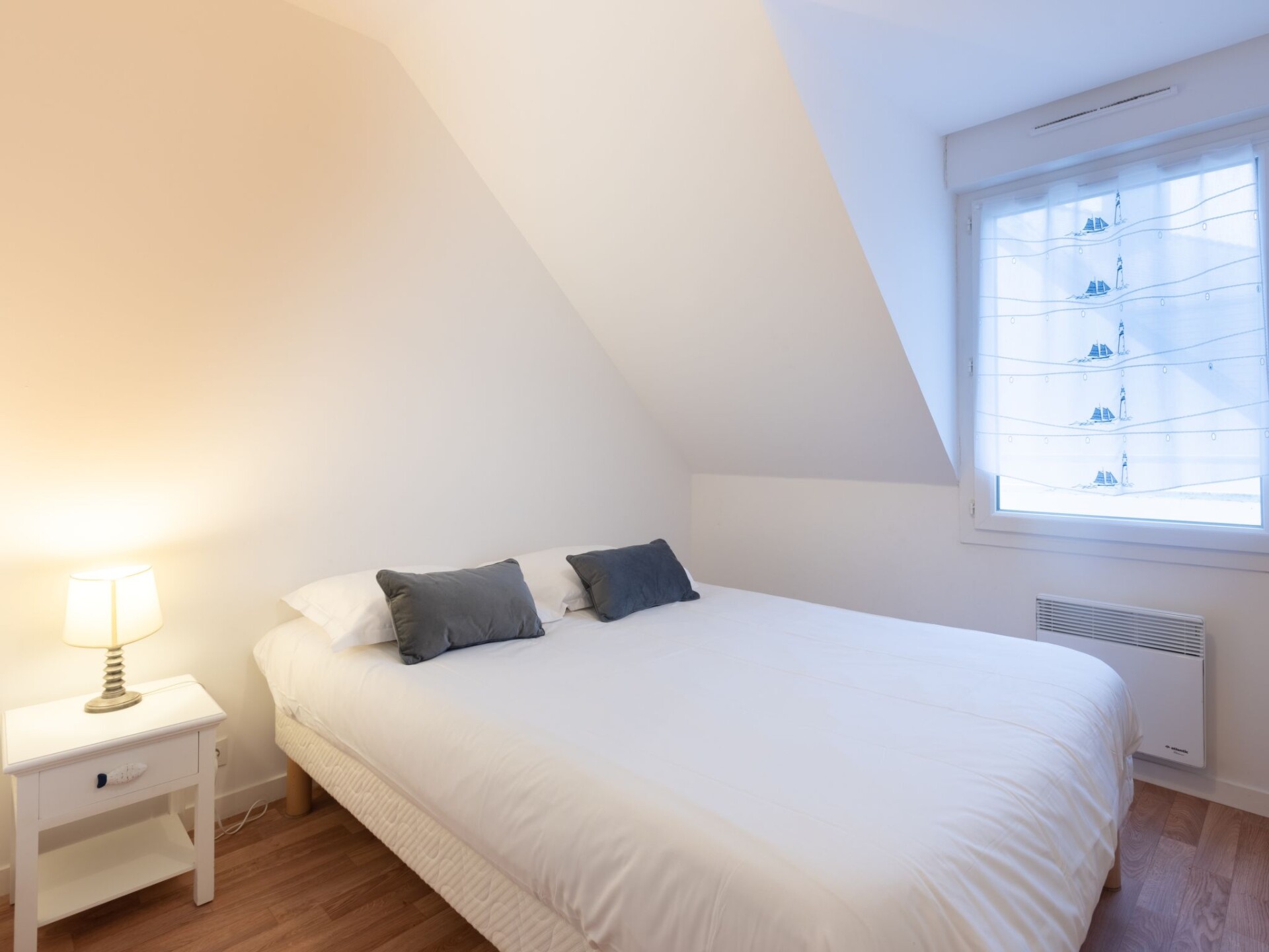Twee onder één kap woning "Les Jardins du Levant", van 2 verdiepingen. In de plaats, 1 km van het centrum van Quiberon, in een woonwijk, 1.2 km van zee, 1.2 km van het strand. Voor alleengebruik: tuin (omheind), parkeerplaats. Winkel 1 km, restaurant 1 km, bushalte 300 m, zandstrand "Grande Plage" 1.2 km. Golfterrein (9 holes) 3 km. Attracties in de buurt: Alignements de Carnac 19 km, Thalasso Quiberon 5 km, Vannes 46 km, Lorient 50 km. De sleuteloverdracht vindt plaats bij het agentschap Interhome in Quiberon, 2 km.