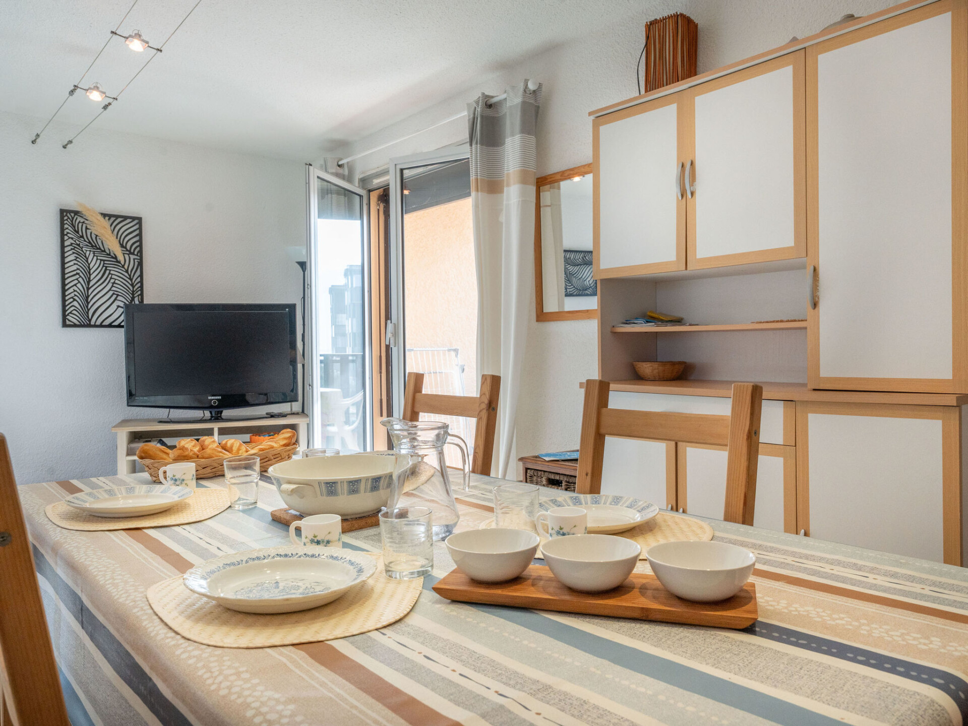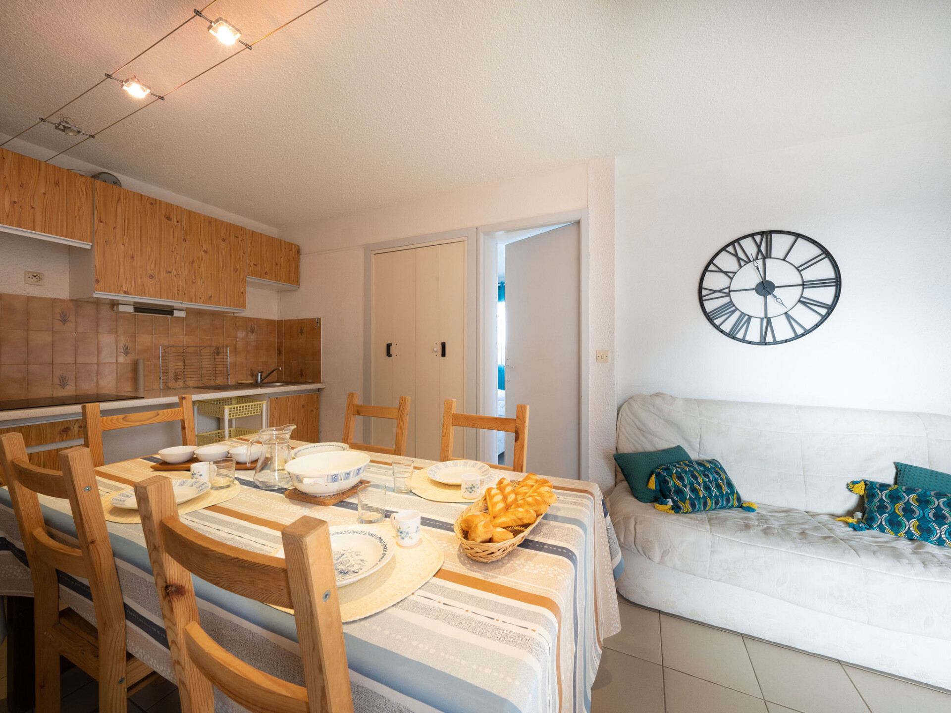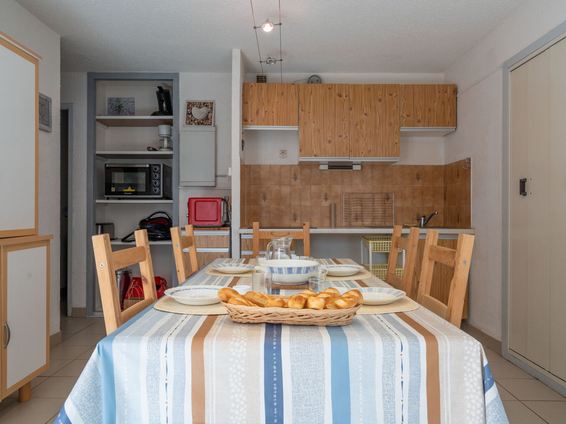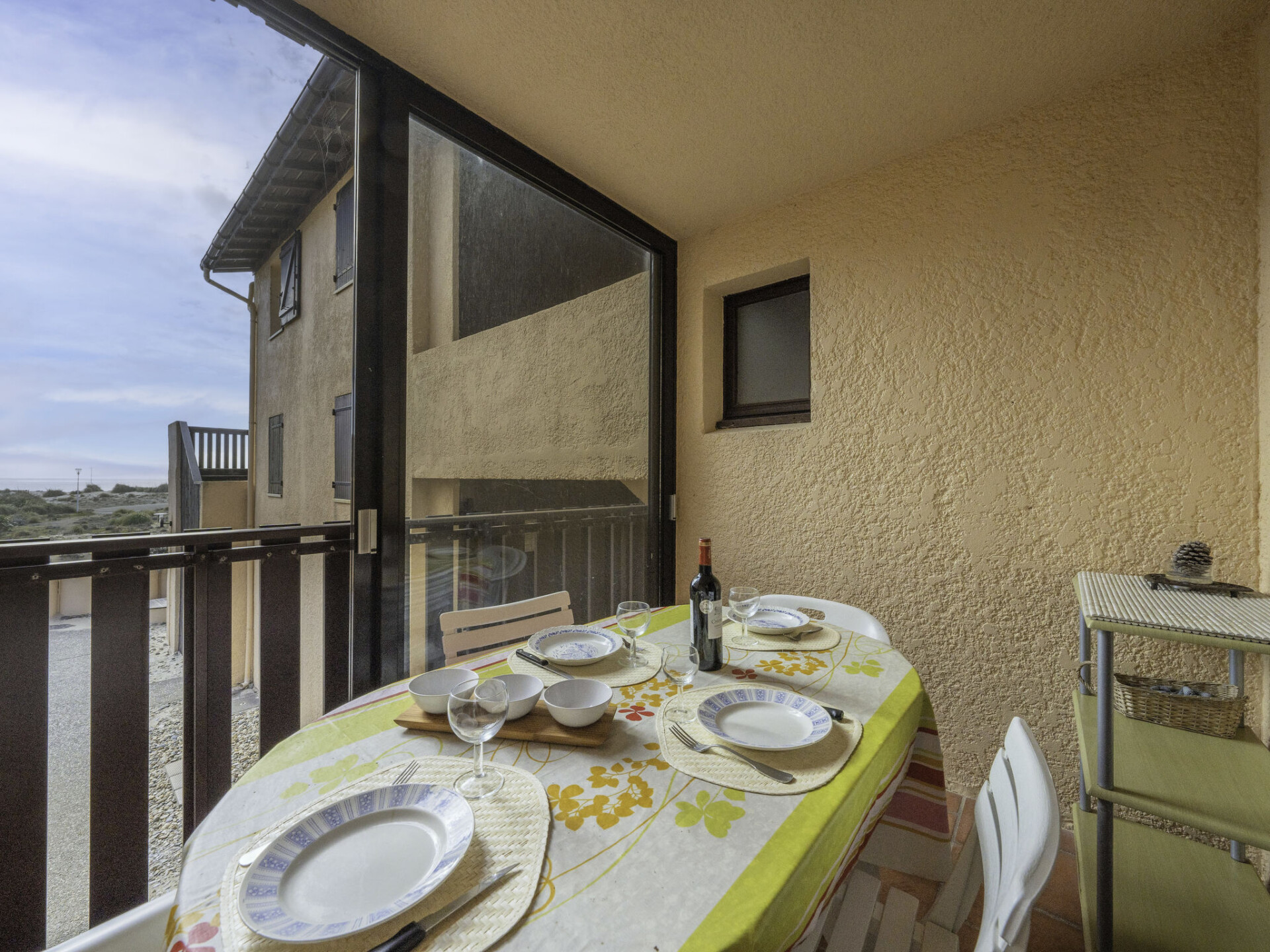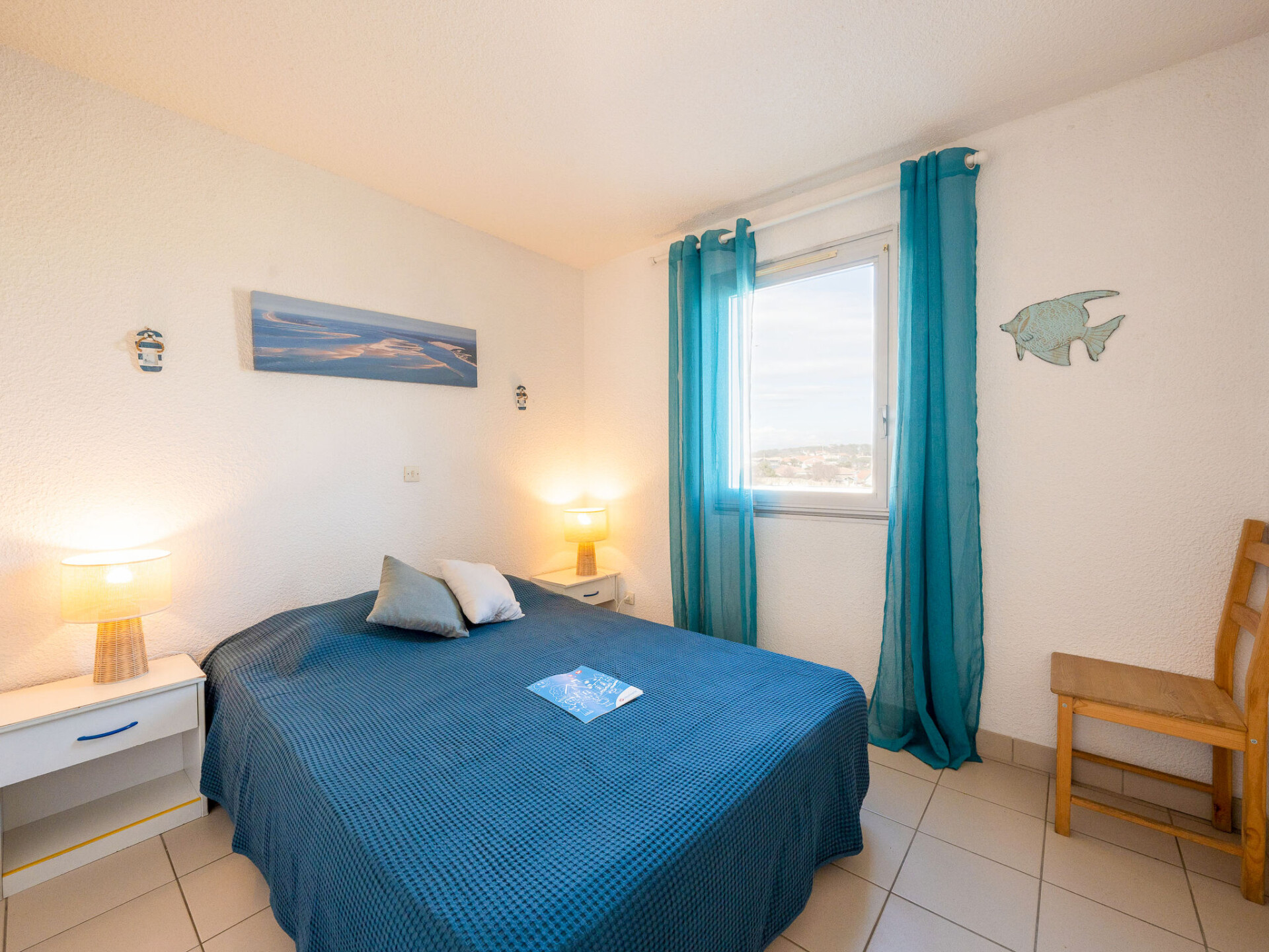 Appartement 3-kamers 38 m2 op de 1e verdieping. Woon-/eetkamer met 1 2-pers divanbed en TV. 1 kamer met 1 2-pers bed (1 x 140 cm, lengte 190 cm). 1 kamer met schuifdeur met 1 2-pers bed (1 x 140 cm, lengte 190 cm). Kookhoek (mini-oven, 4 inductiekookplaten, magnetron, elektrische koffiemachine, pads voor de koffiemachine (Senseo) extra). Douche, aparte WC. Verwarming. Balkon. Terrasmeubelen. Beperkt uitzicht op zee. Ter beschikking: Internet (Internet (WiFi), extra). Niet rokers woning. Maximaal 1 huisdier/hond toegestaan. Rookmelders.