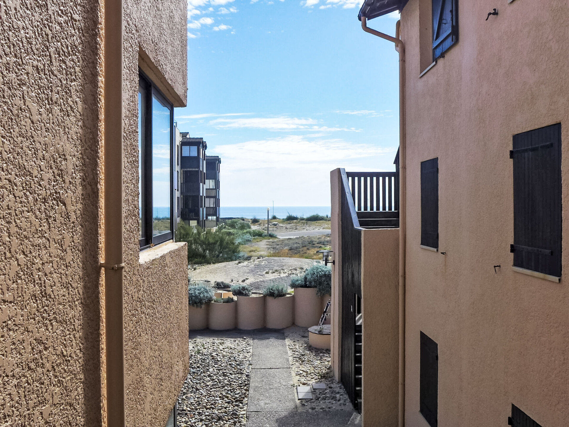 Flatgebouw "Les Maisons de l'Océan", van 3 verdiepingen. 500 m van het centrum, 45 m van zee, 45 m van het strand. Parkeerplaats of garage alleen voor een kleine/middelgrote auto. Winkel 500 m, supermarkt 600 m, restaurant, bakkerij, fietsverhuur 500 m, bushalte "Salle l'Escoure Océan" 900 m. Golfterrein (18 holes) 4 km, surfschool 100 m, tennis 2 km, manege 15 km. Vergelijkbare accommodaties kunnen worden geboekt.