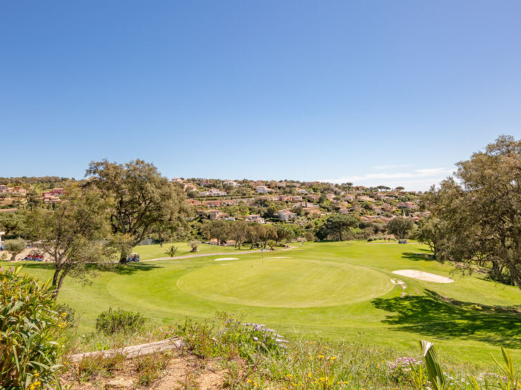 Klein landgoed "Les Maisons du Golf". In de wijk du Golf de Sainte-Maxime, aan de rand van de plaats, 4 km van het centrum, rustige ligging op een heuvel, in een woonwijk, 3 km van zee, 3 km van het strand, aan een doodlopende weg, aan de golfbaan, op het zuiden. Voor medegebruik: openluchtzwembad omheind (110 - 175 cm diepte, seizoensgebonden beschikbaarheid: 01.Jun. - 30.Sep.). Tennisbaan, jeu de boules, openbare parkeerplaatsen 350 m in de straat. Levensmiddelenwinkel 2 km, supermarkt 4 km, restaurant 3 km, bushalte 3 km, treinstation "TGV Saint-Raphael" 23 km, zandstrand "La Nartelle" 3 km, thermaalbad "Thalasso les Issambres" 7 km. Jachthaven 4 km, golfterrein (18 holes) 100 m, tennis 50 m. Attracties in de buurt: Golf de Sainte Maxime 100 m, Saint-Tropez Ramatuelle 18 km, Port-Grimaud 15 km, Gorges du Verdon 75 km, Navette / shuttle boat St-Tropez 15min 4 km. Wandelgebied Massif des Maures 5 km, Massif de l'Esterel 23 km. Auto noodzakelijk. Gesloten residentie met een elektrische deur. De sleuteloverdracht vindt plaats bij het agentschap Interhome in Sainte-Maxime. Vliegveld 80 km van het huis. Object referentie: FR8480.678.1 is gelegen op hetzelfde terrein.