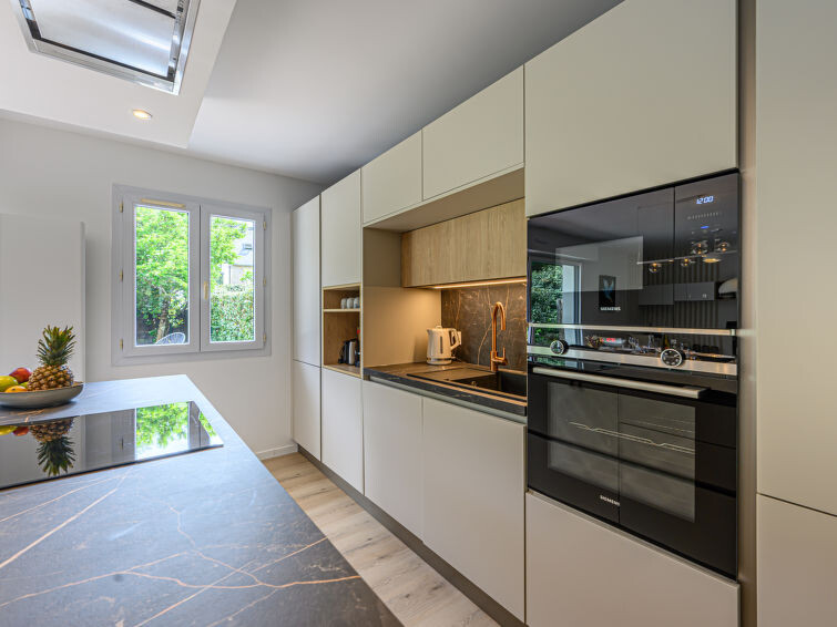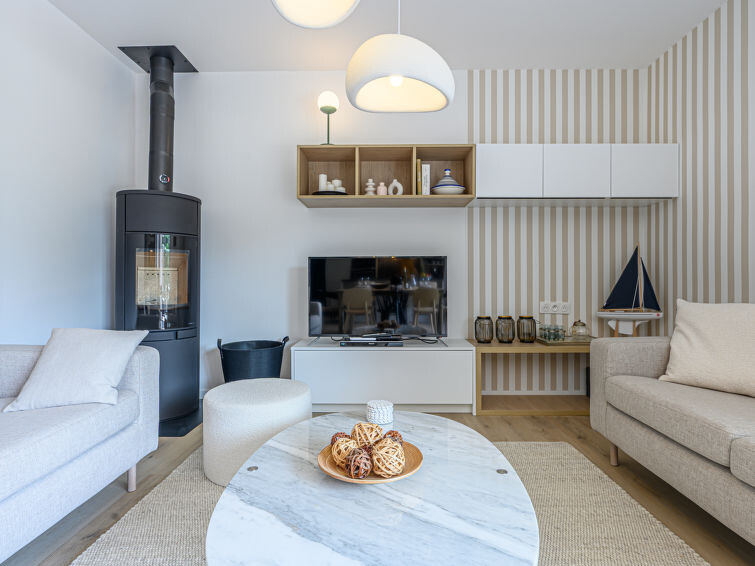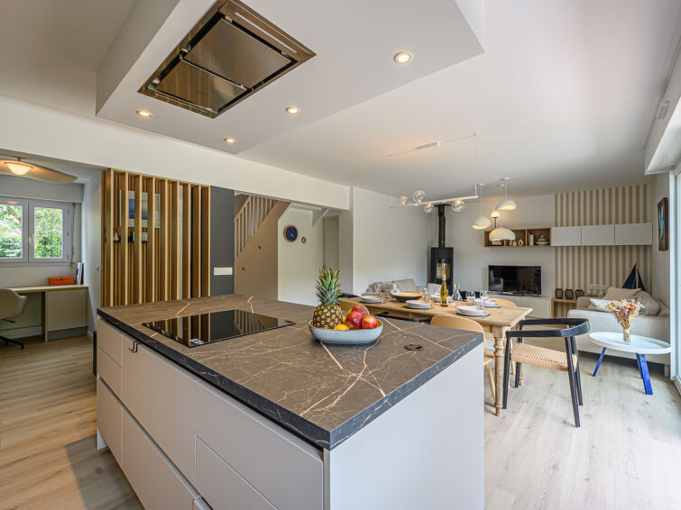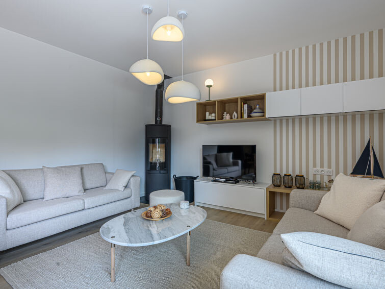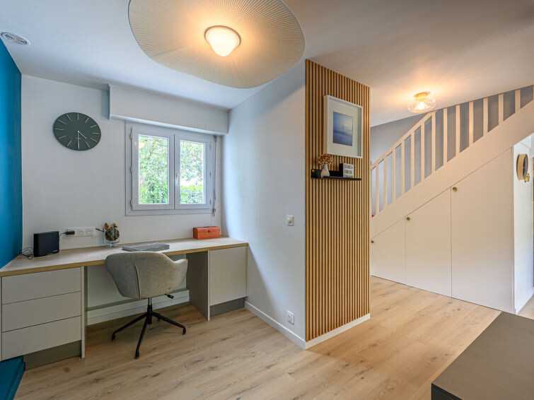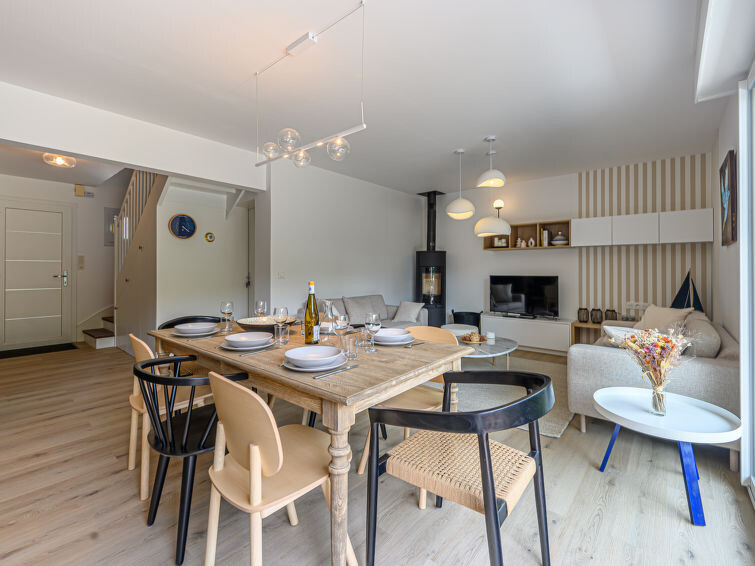 Huis in een rij 4-kamers 90 m2. Mooi ingericht: woon-/eetkamer met TV. Uitgang naar de tuin. Keuken (oven, afwasmachine, 3 inductiekookplaten, magnetron, diepvriezer, elektrische koffiemachine). Aparte WC. Bovenverdieping: 1 kamer met 1 bed (160 cm, lengte 200 cm), bad. 1 kamer met 1 bed (90 cm, lengte 190 cm), 1 x 2 stapelbedden (90 cm, lengte 190 cm). 1 kamer met 2 bedden (80 cm, lengte 200 cm). Douche/WC. Elektrische verwarming. Terras 10 m2. Terrasmeubelen. Ter beschikking: wasmachine, droger, kinderstoel. Internet (WiFi, gratis). Parkeerplaats. Geschikt voor families. Rookmelders. 560340007245E