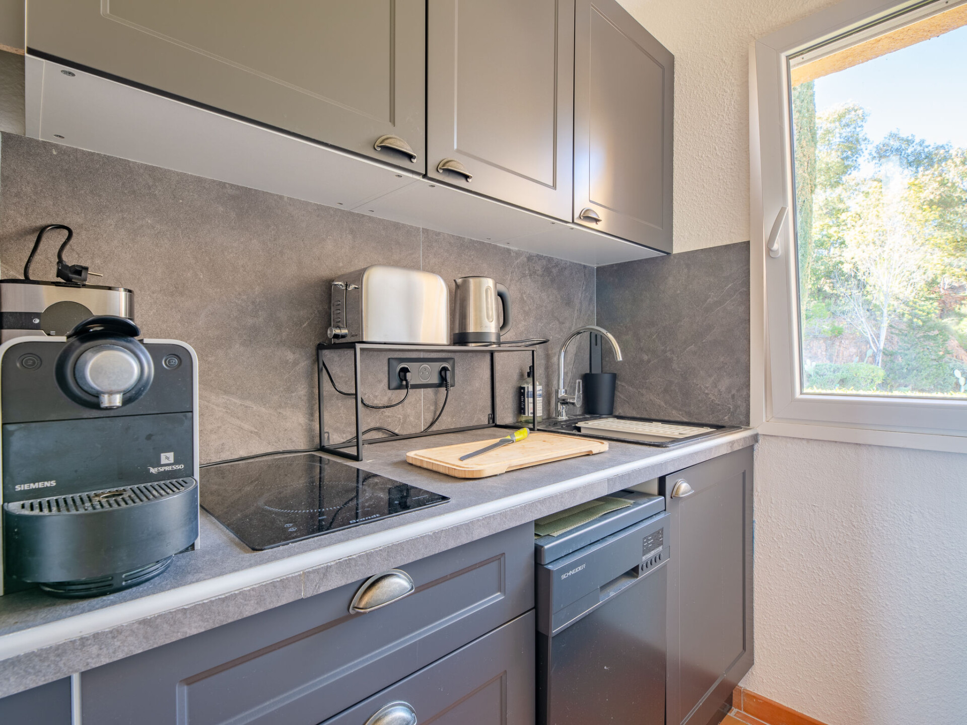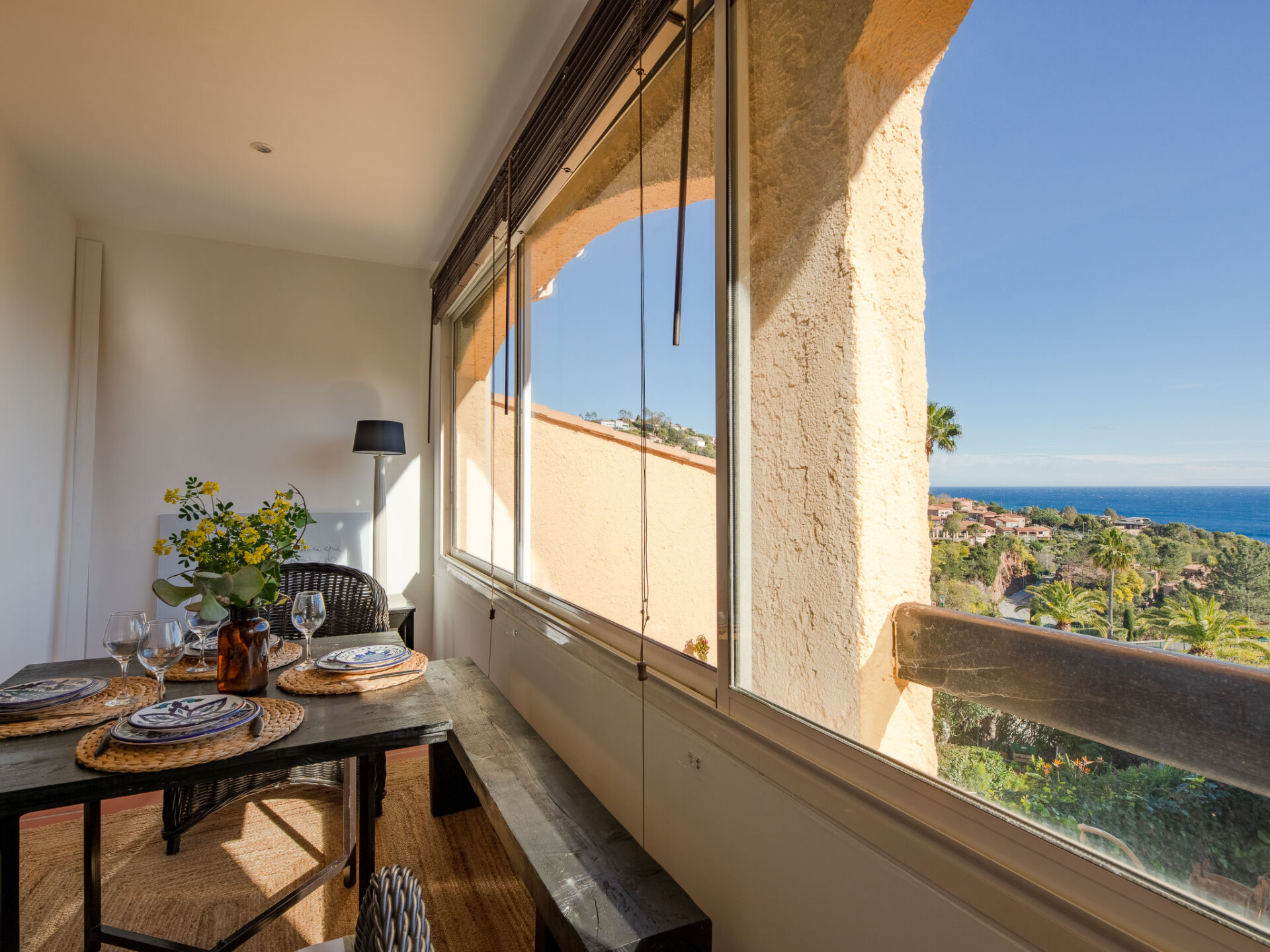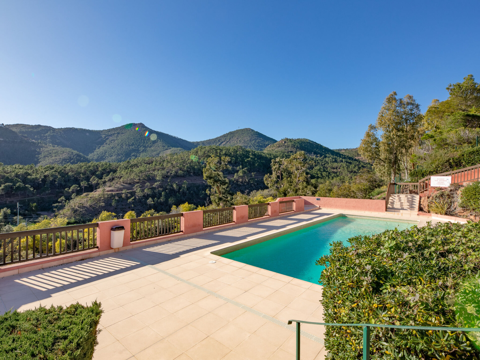 Mooi flatgebouw "Les Mas de la Mer". Op een heuvel, villa wijk. Voor medegebruik: openluchtzwembad (14 x 7 m, seizoensgebonden beschikbaarheid: 15.Apr. - 15.Okt.). Parkeerplaats bij het huis. Winkel 7 km, bushalte 1.2 km, zandstrand "La Figueirette" 1 km. Jachthaven 800 m, golfterrein (18 holes) 11 km. Attracties in de buurt: Cannes 16 km, Nice 45 km, Ste. Maxime 50 km. Wandelgebied Esterel 100 m.