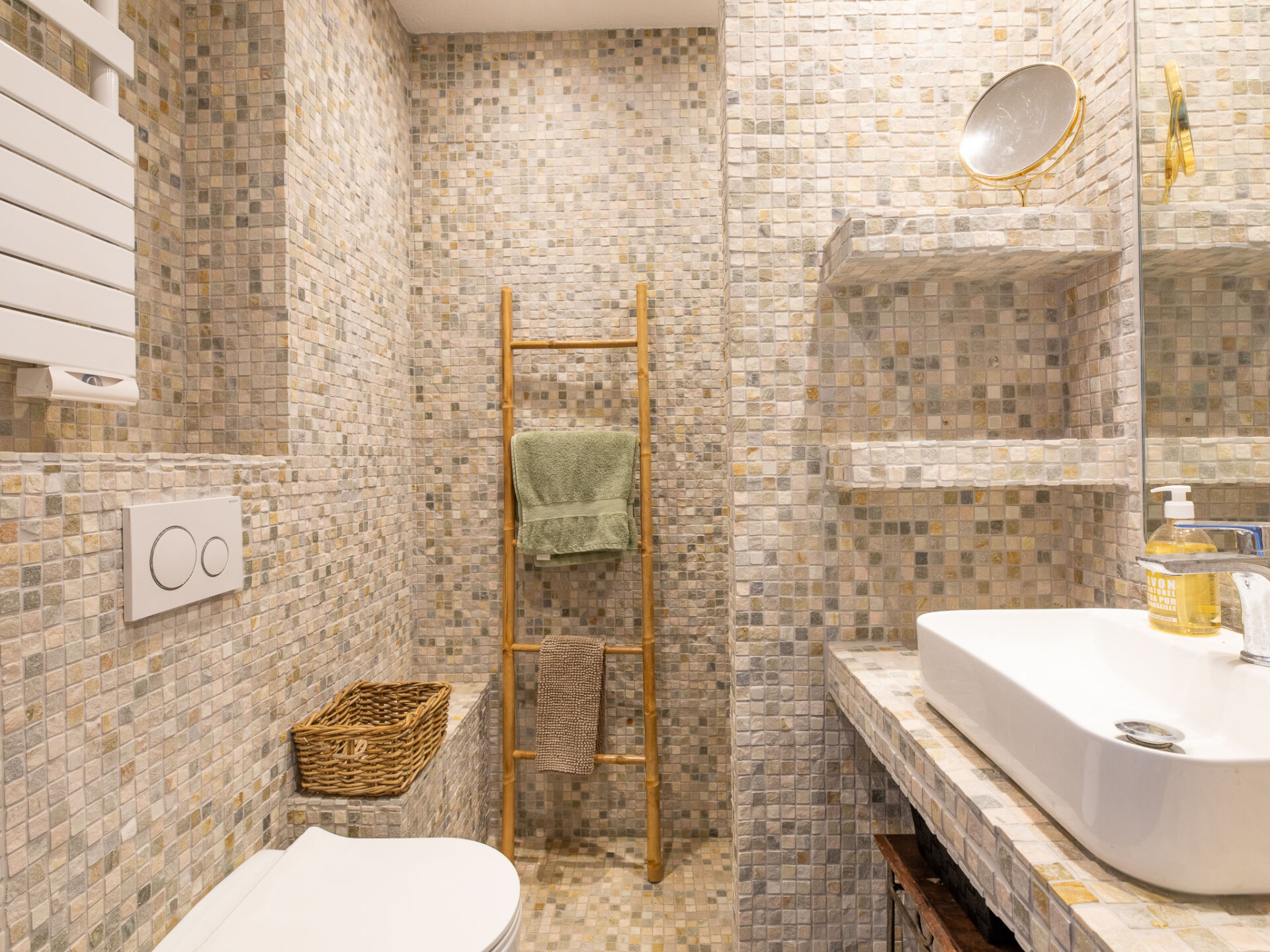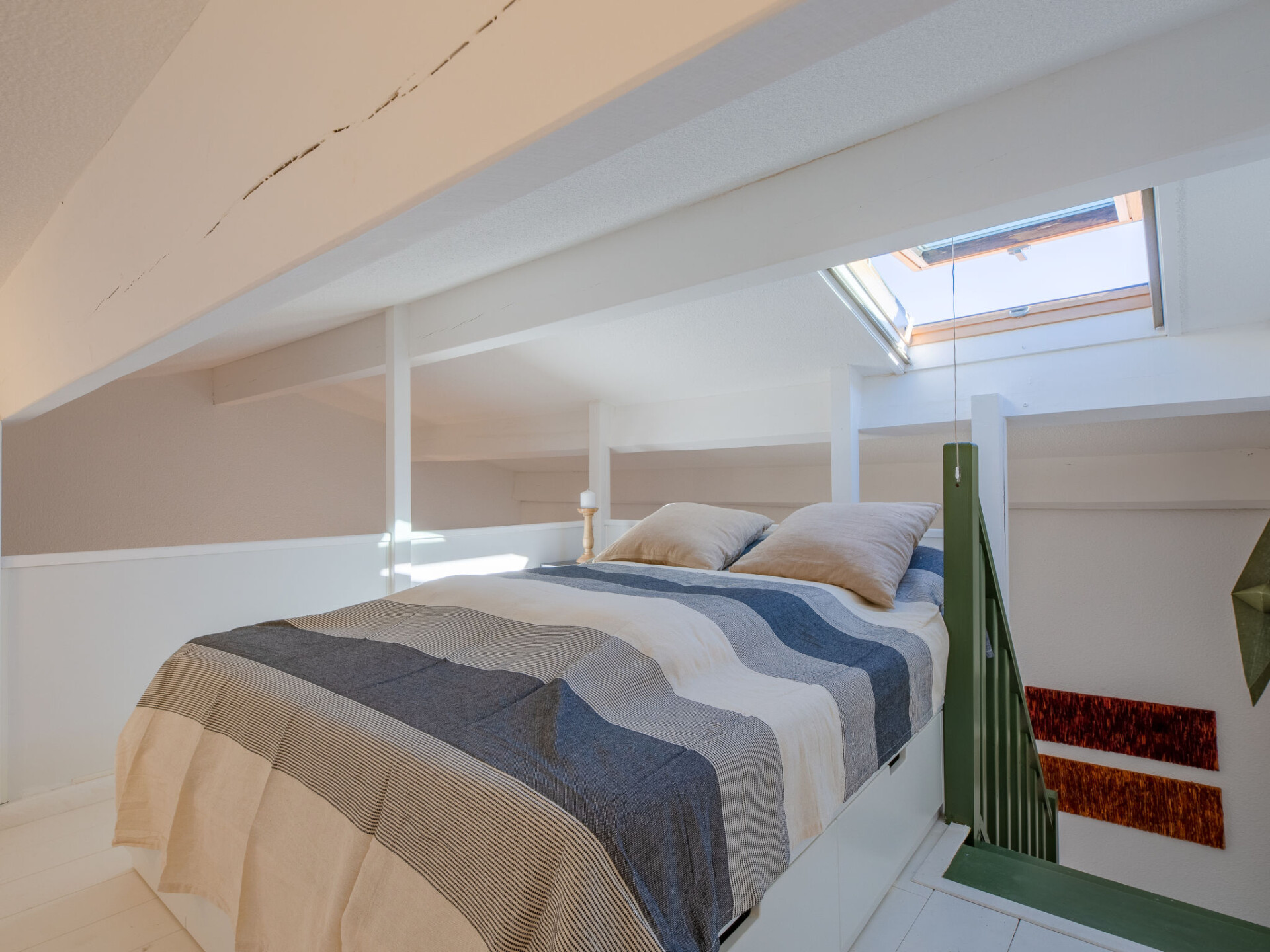 "Les Mimosas", studio 1-kamer 35 m2, op de bovenverdieping, op het zuidoosten gelegen. Het objekt is geschikt voor 2 volwassenen + 2 kinderen. Gerenoveerd in 2024, mooi en smaakvol ingericht: woon-/eetkamer met 1 2-pers divanbed (160 cm, lengte 180 cm), TV en air-conditioning. Uitgang naar de veranda. Galerij, hoogte van het plafond 100 - 135 cm met dakraam met 1 2-pers bed (140 cm, lengte 190 cm). Open keuken (mini-oven, afwasmachine, 2 inductiekookplaten, broodrooster, waterkoker, elektrische koffiemachine). Douche/WC. Elektrische verwarming, air-conditioning. Mooi panoramazicht op zee. Ter beschikking: wasmachine. Internet (Internet (WiFi), gratis). Geschikt voor families. Niet rokers woning. Rookmelders. Aanbod door een commerciële eigenaar volgens art. 155, IV, CGI 06138000337RD
