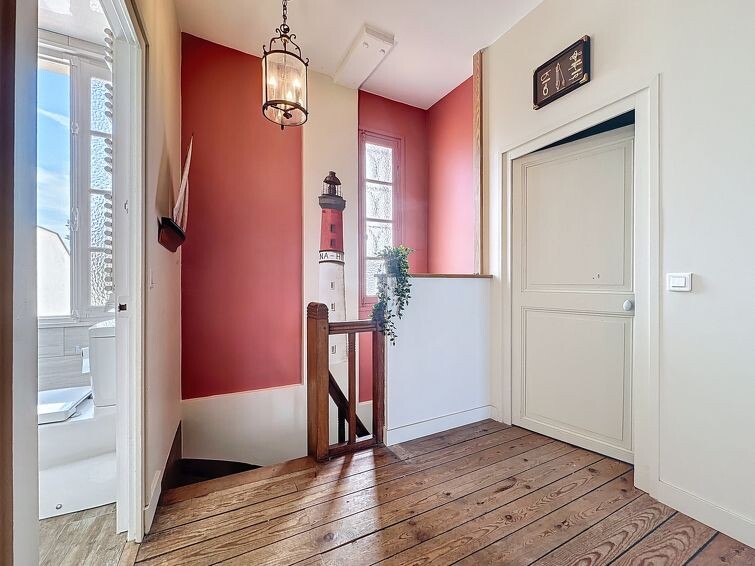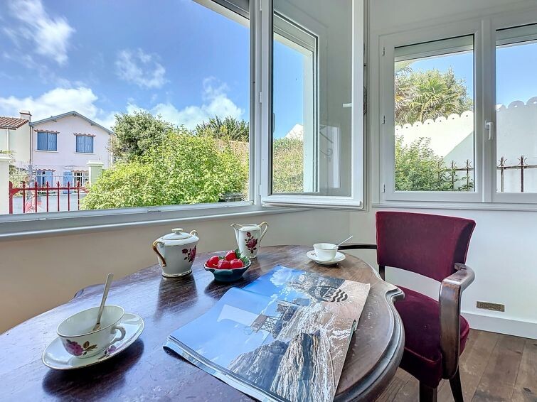 Groot rijtjeshuis "Les Mouettes", van 2 verdiepingen. In het centrum van La Bernerie en Retz, perfecte locatie: in het centrum en toch rustig gelegen, 100 m van zee, 100 m van het strand, op het zuiden. Voor alleengebruik: terrein (omheind), binnenplaats. Tuinmeubelen, openbare parkeerplaatsen in de straat. Levensmiddelenwinkel, supermarkt, restaurant, bar 600 m, bakkerij 650 m, café 600 m, centrum te voet bereikbaar in 5 minuten, bushalte "Bourg (Navette Estivale)" 500 m, treinstation "La Bernerie en Retz" 950 m, zandstrand "Plage des Carrés" 100 m, thermaalbad "Alliance Pornic Thalasso & Spa" 8 km. Jachthaven 12 km, golfterrein (18 holes) 11 km, tennis 900 m, midgetgolf 11 km. Attracties in de buurt: Marché de la Bernerie en Retz 600 m, Pornic 8 km, Port du Collet 9 km, Les Machines de l'Ile de Nantes 49 km, La Baule 52 km, Ile de Noirmoutier 61 km. Bekende meren kunnen gemakkelijk worden bereikt: Lac de Saint Viaud 22 km.